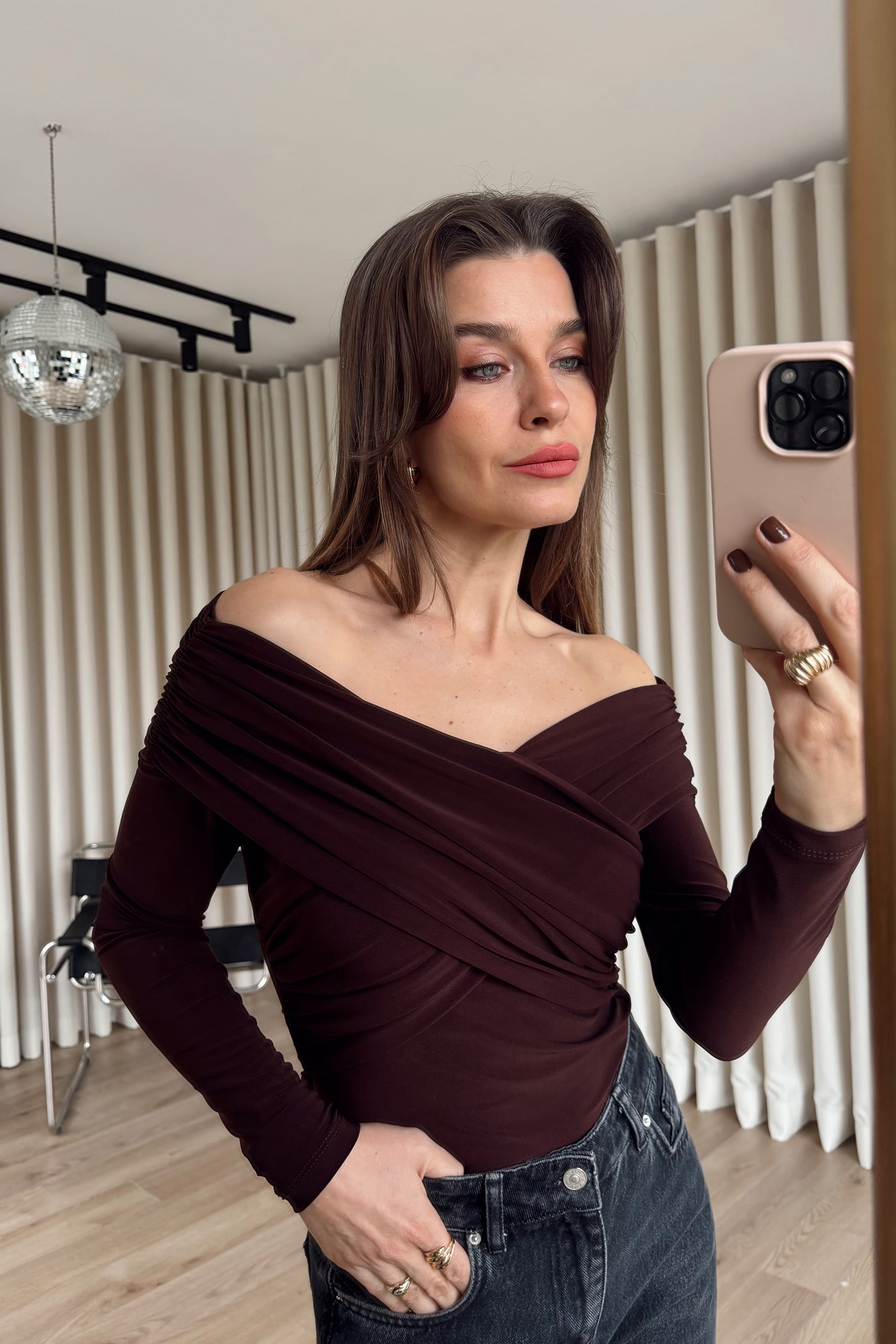 Acı Kahve Omuzdan Çapraz Drapeli Bluz Model Ölçüleri: Boy: 166 cm, Kilo:54 kg Modelin Üzerindeki Beden: S/36 Ürünün Uzunluğu: 47 cm (1-2 cm arası değişiklik gösterebilir.) Kumaş Türü:%95 Polyester, %5 Elestan Yıkama Talimatı : Ürünün iç kısmında bulunan etiketten yıkama talimatına ulaşabilirsiniz.