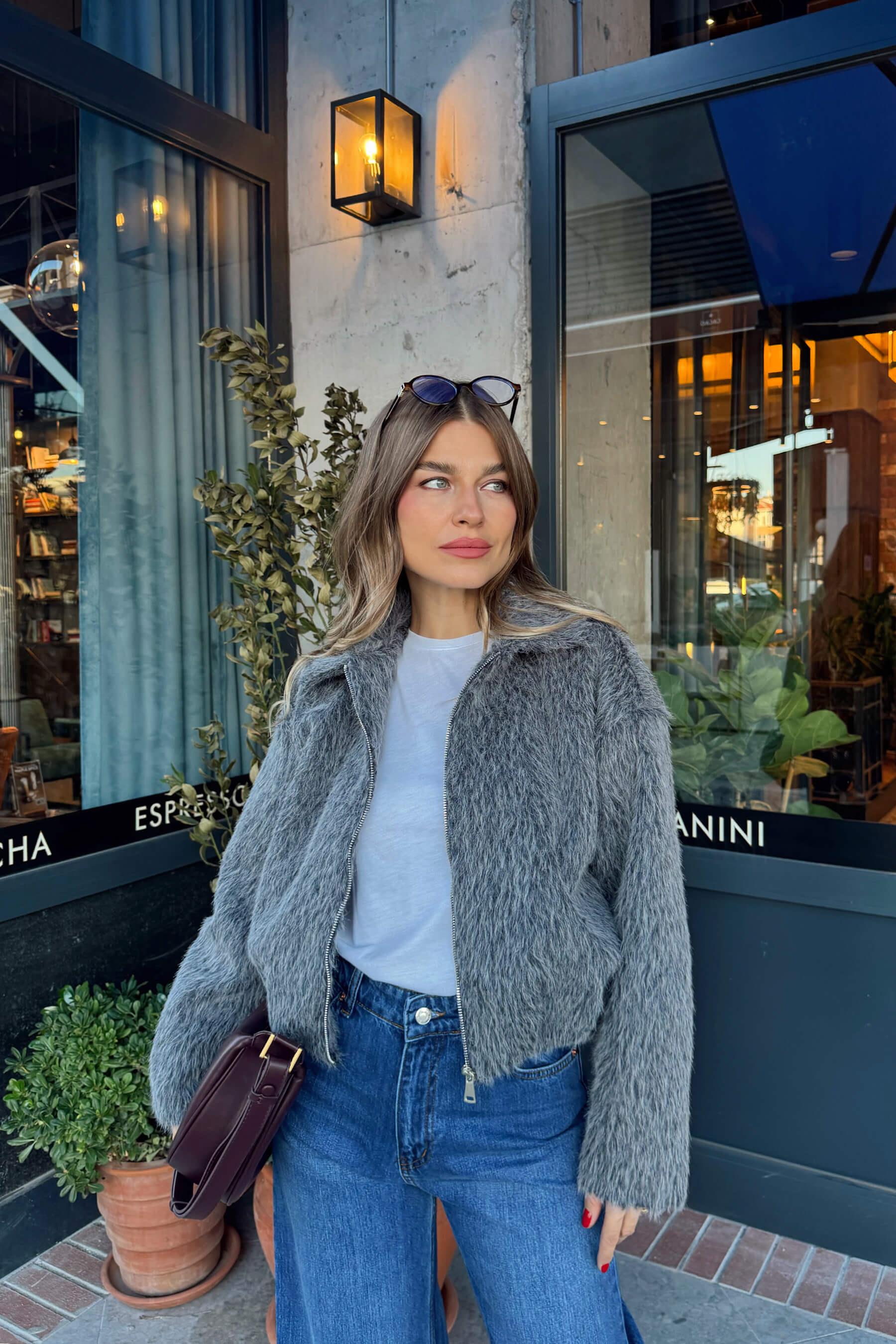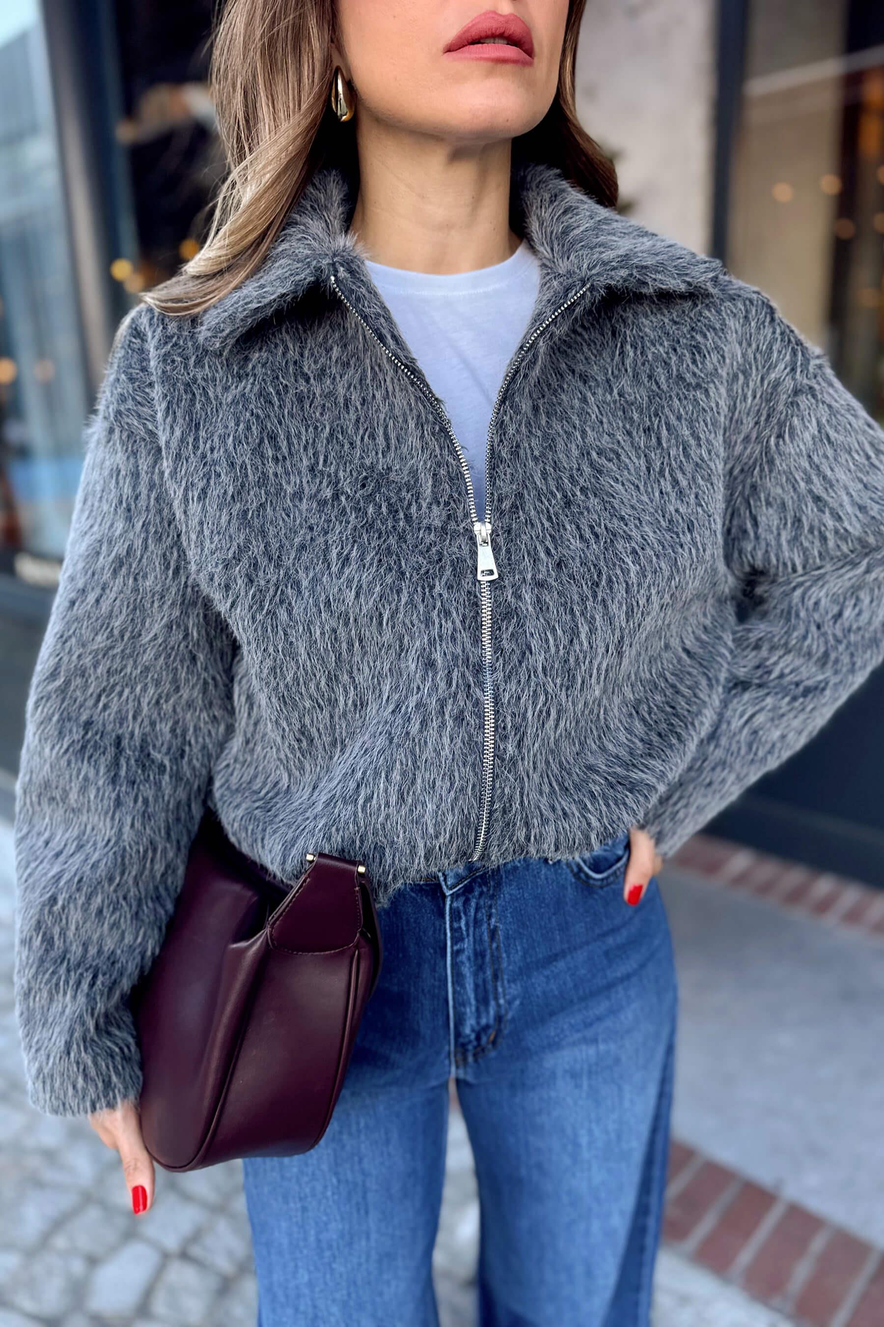 Antrasit Gömlek Yaka Kürk Dokulu Astarlı Bomber Ceket Model Ölçüleri: Boy: 166 cm, Kilo:54 kg Modelin Üzerindeki Beden: S/36 Ürünün Uzunluğu: 47 cm (1-2 cm arası değişiklik gösterebilir.) Kumaş Türü: Poliviskon Yıkama Talimatı : Ürünün iç kısmında bulunan etiketten yıkama talimatına ulaşabilirsiniz.