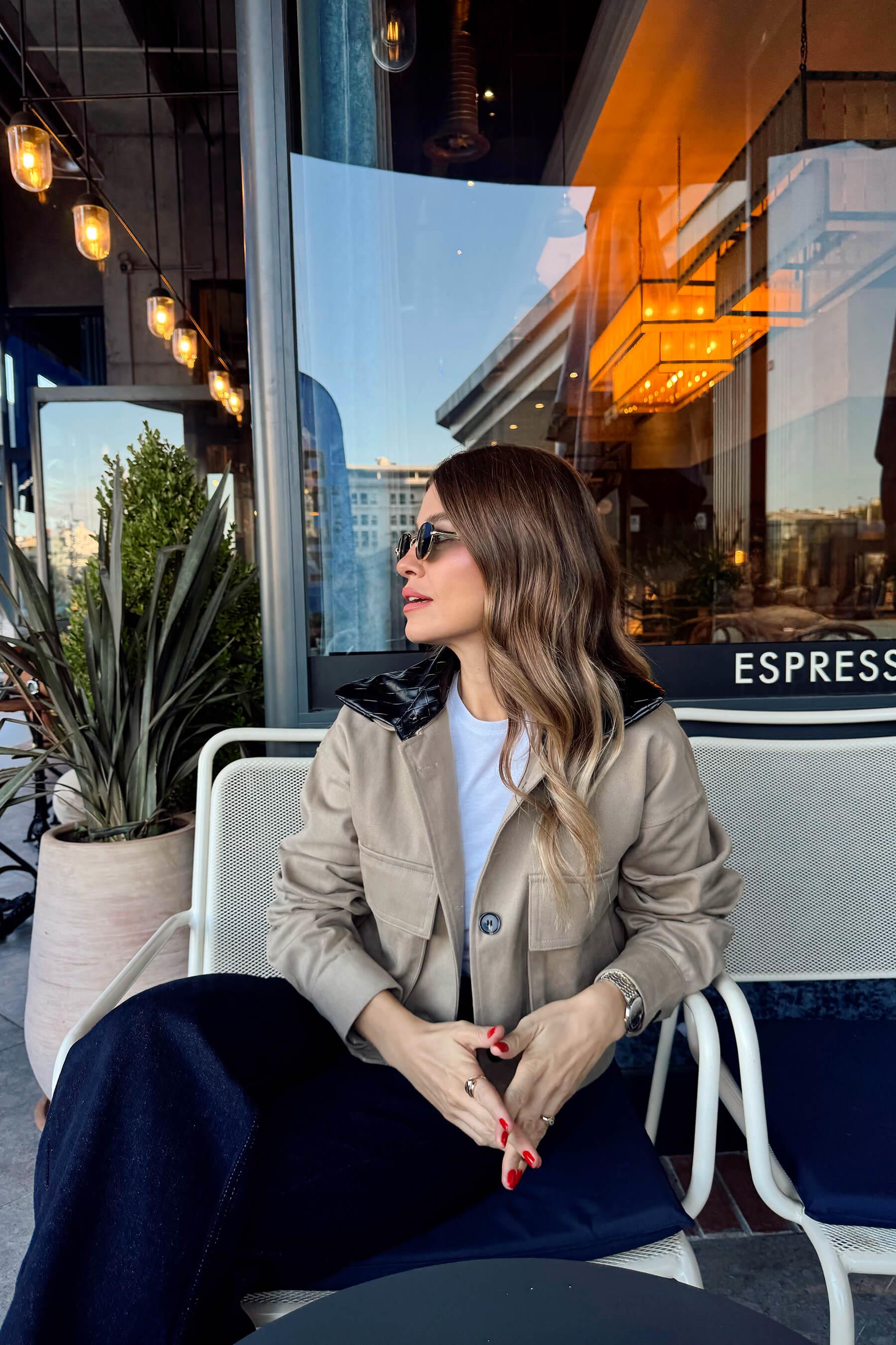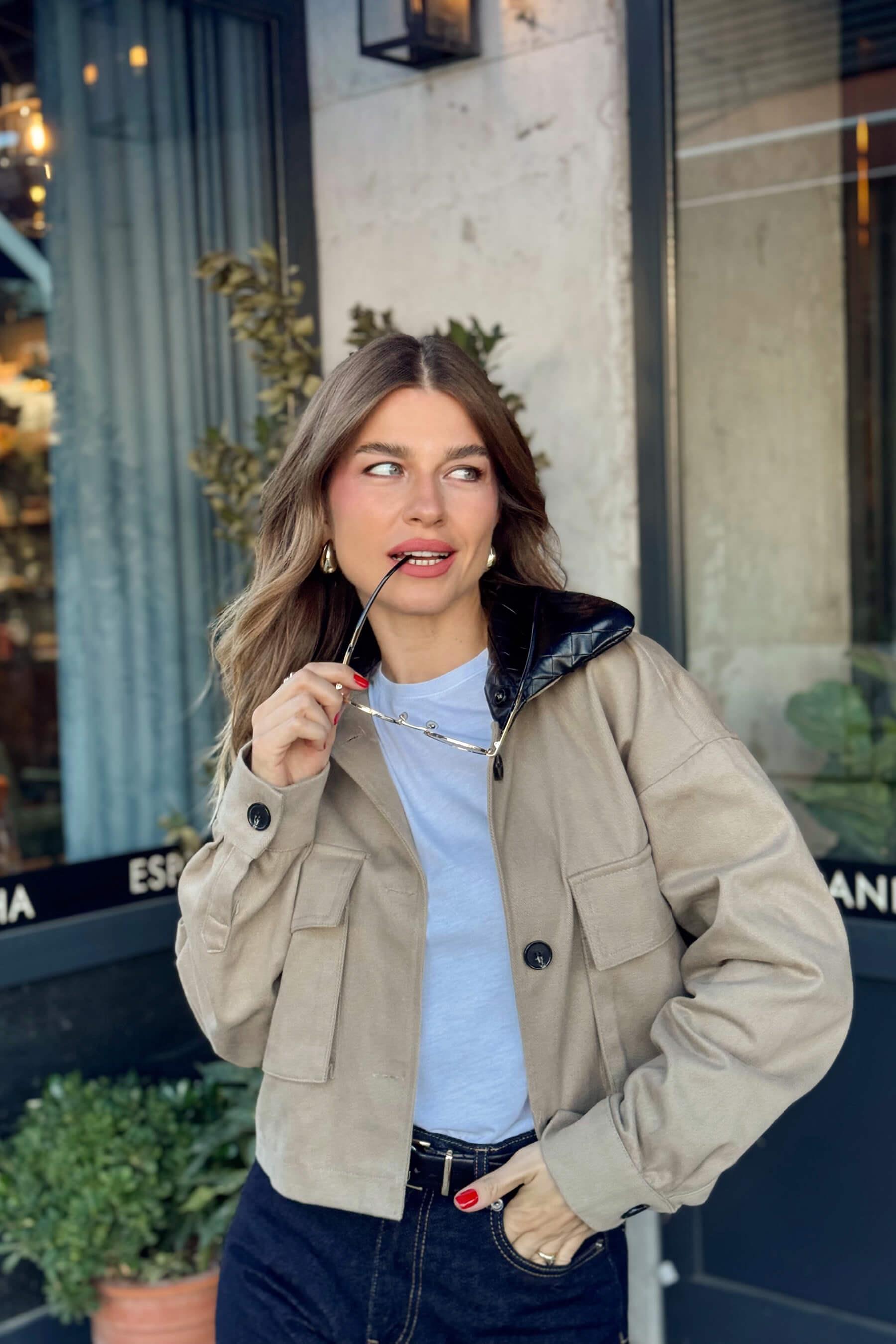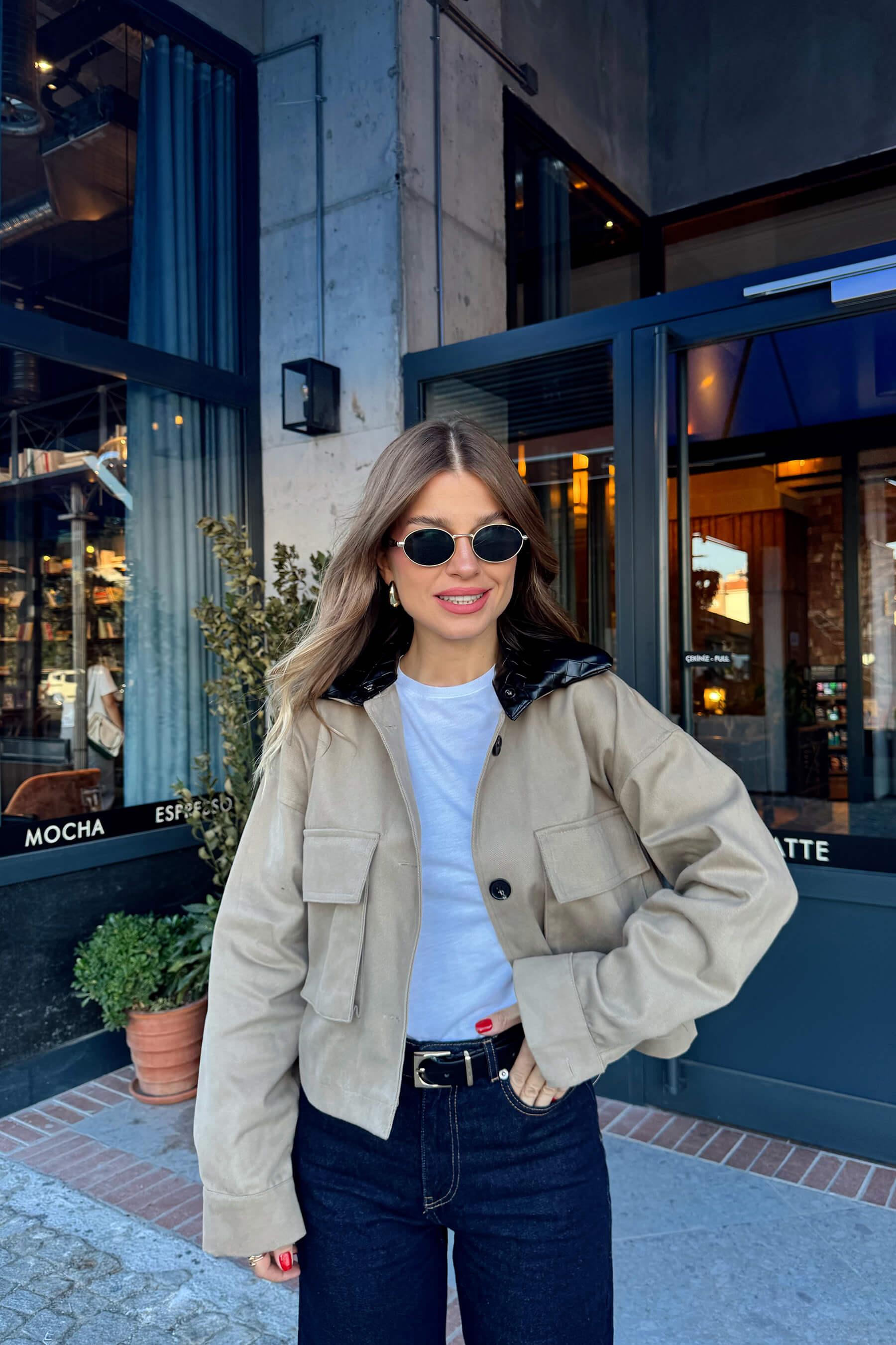 Bej Deri Yakalı Astarlı Gabardin Ceket Model Ölçüleri: Boy: 166 cm, Kilo:54 kg Modelin Üzerindeki Beden: S/36 Ürünün Uzunluğu: 47 cm (1-2 cm arası değişiklik gösterebilir.) Kumaş Türü: %100 Pamuk Yıkama Talimatı : Ürünün iç kısmında bulunan etiketten yıkama talimatına ulaşabilirsiniz.