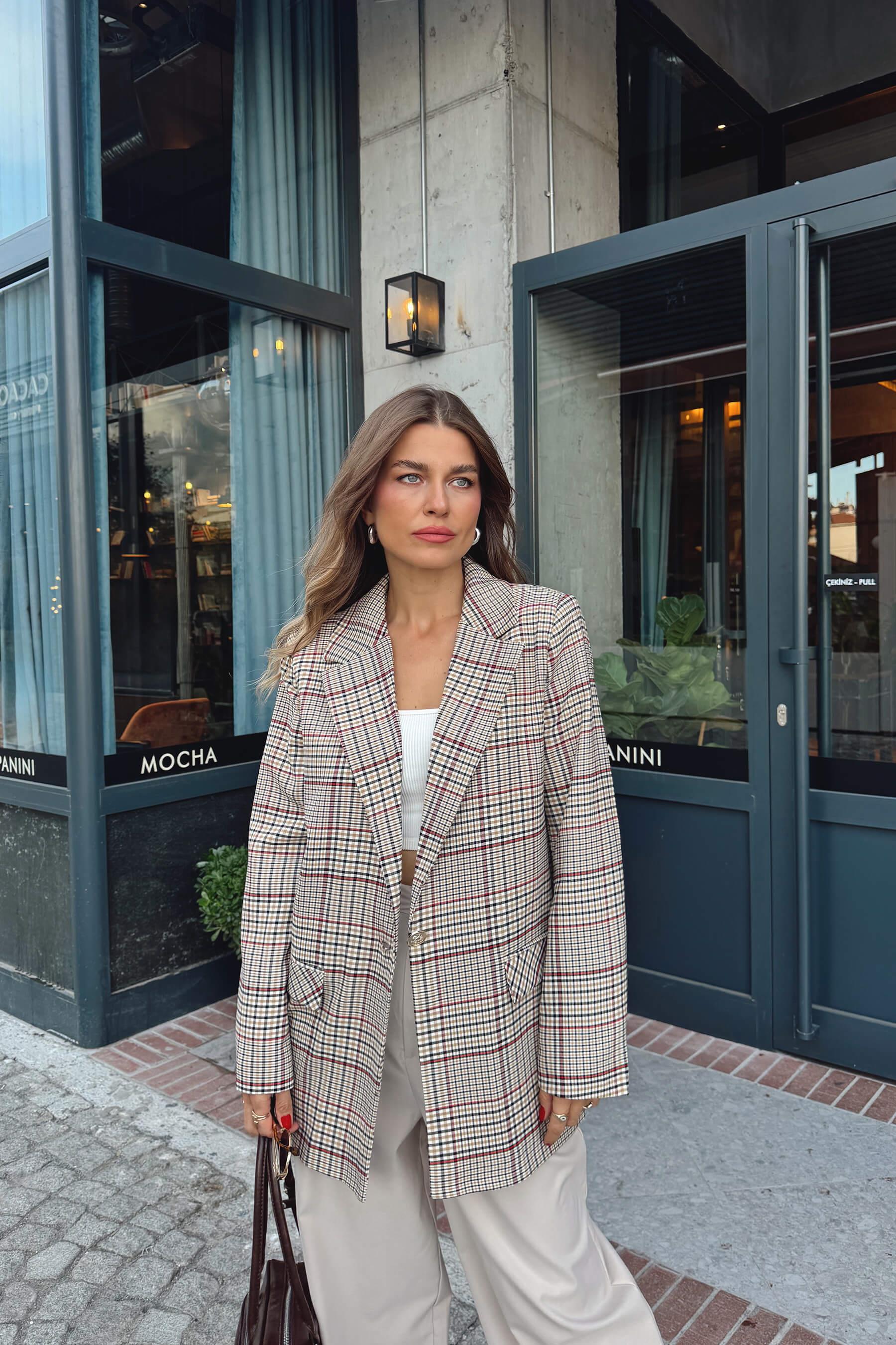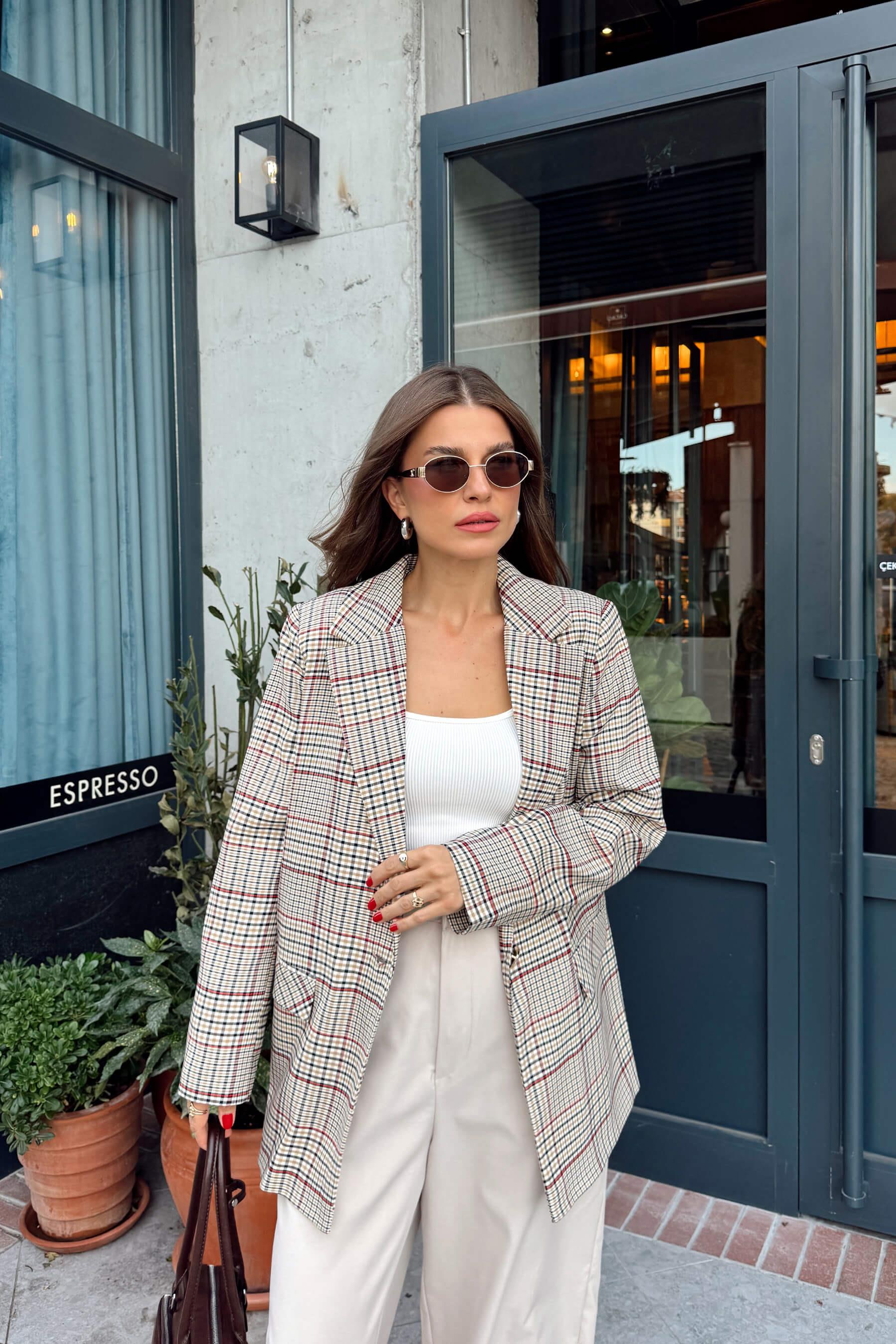 Bej Kırmızı Ekoseli Astarlı Ceket Model Ölçüleri: Boy: 166 cm, Kilo:54 kg Modelin Üzerindeki Beden: S/36 Ürünün Uzunluğu: 74 cm (1-2 cm arası değişiklik gösterebilir.) Kumaş Türü: %50 Polyester, %50 Viskon Yıkama Talimatı : Ürünün iç kısmında bulunan etiketten yıkama talimatına ulaşabilirsiniz.