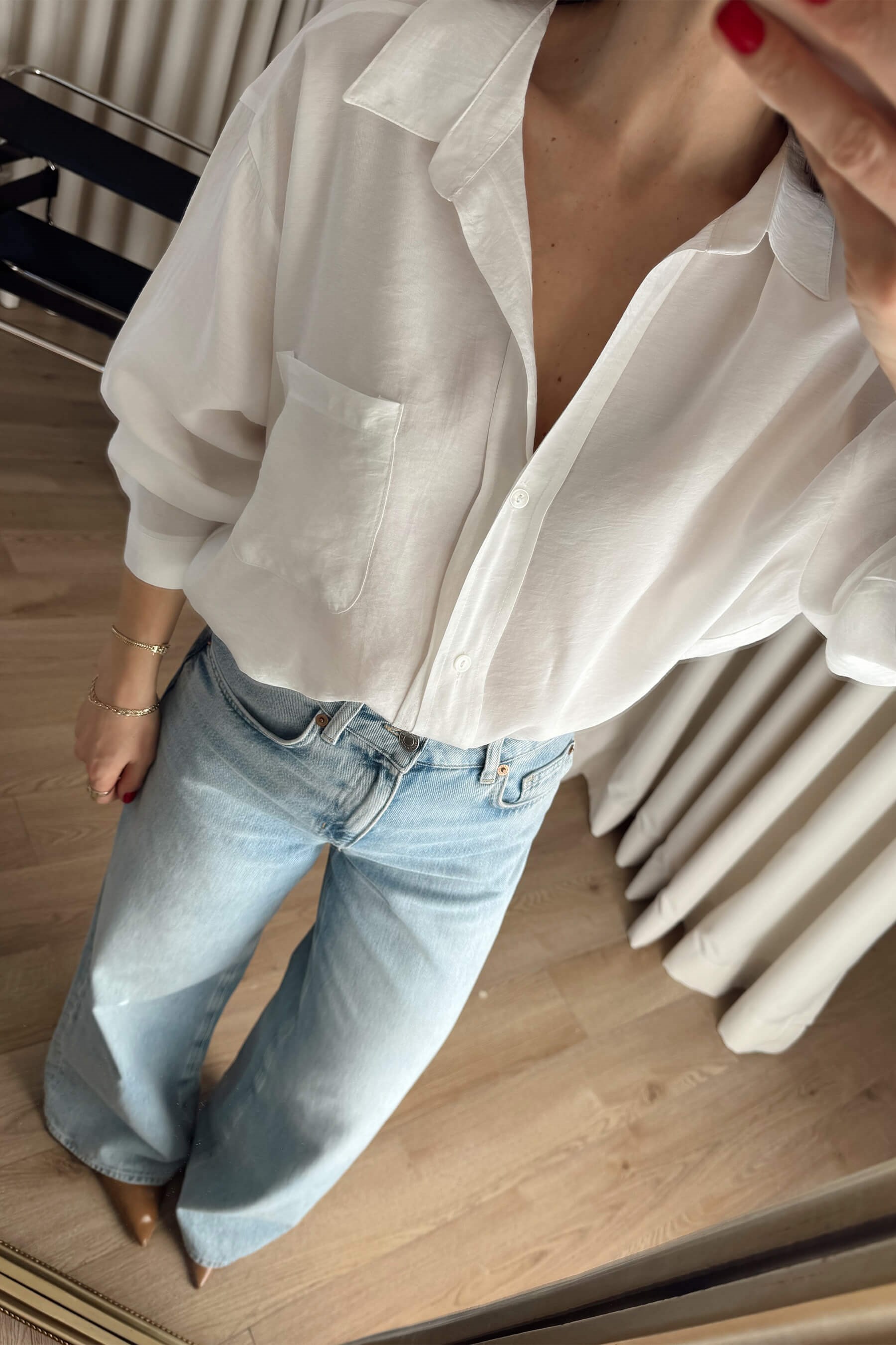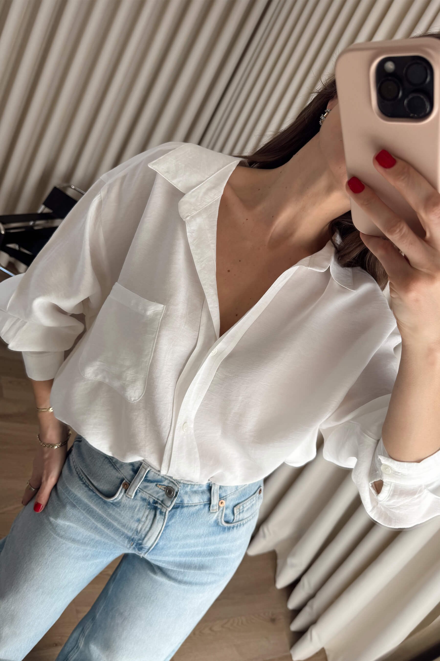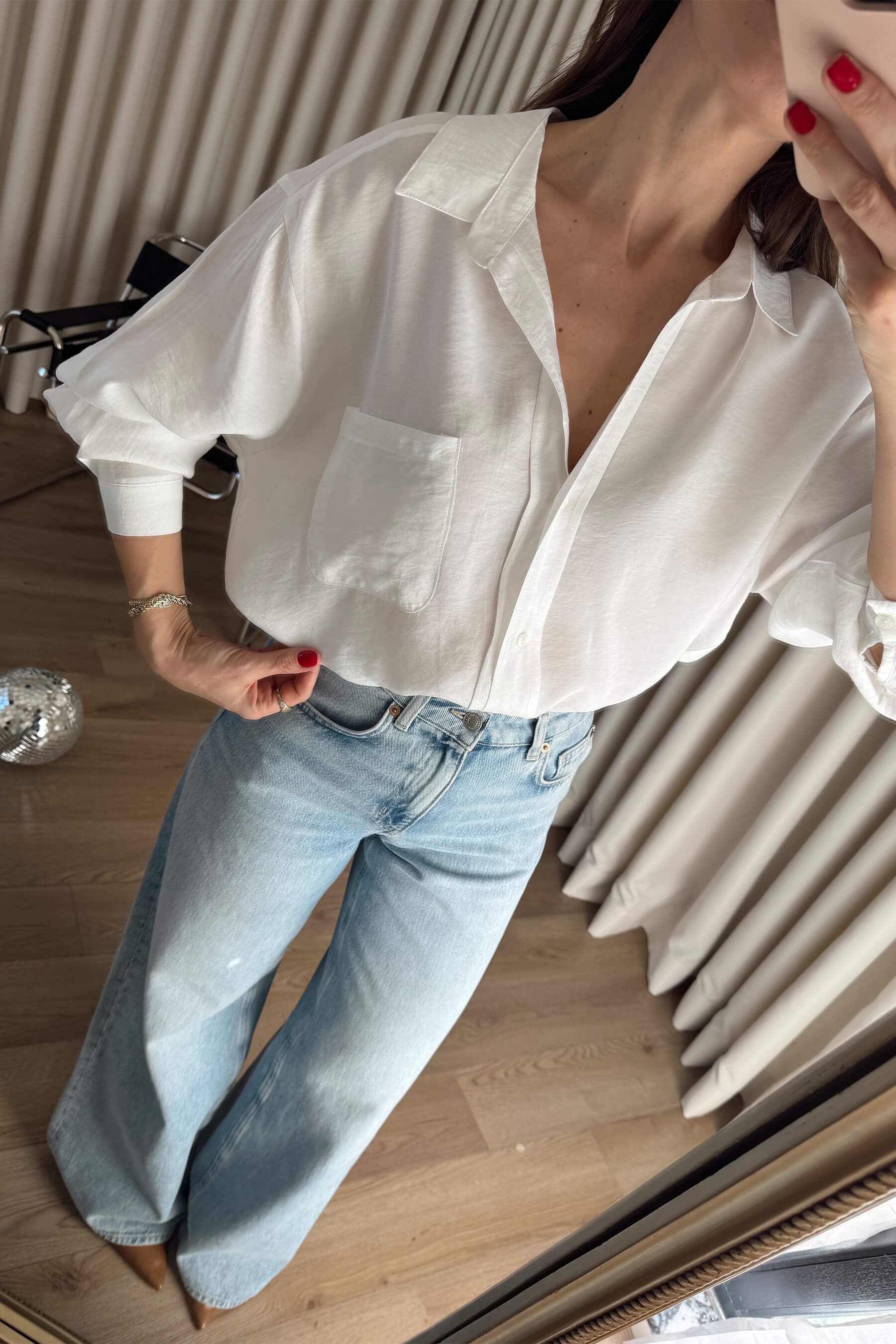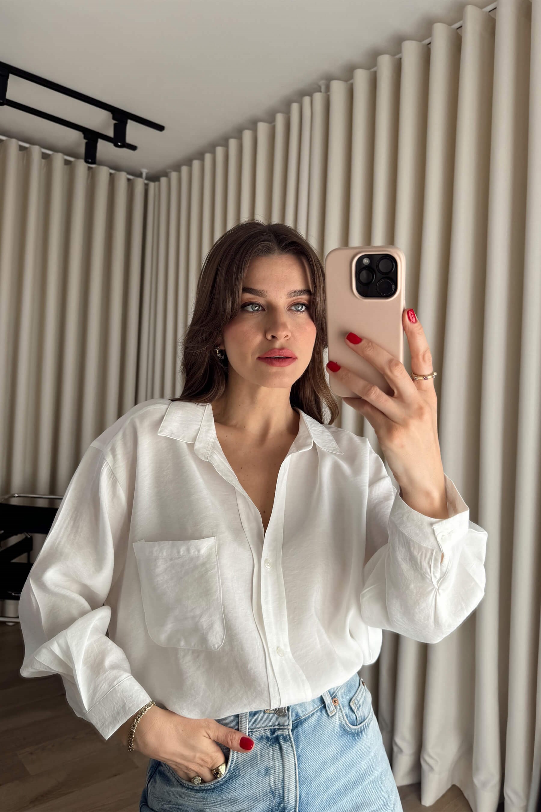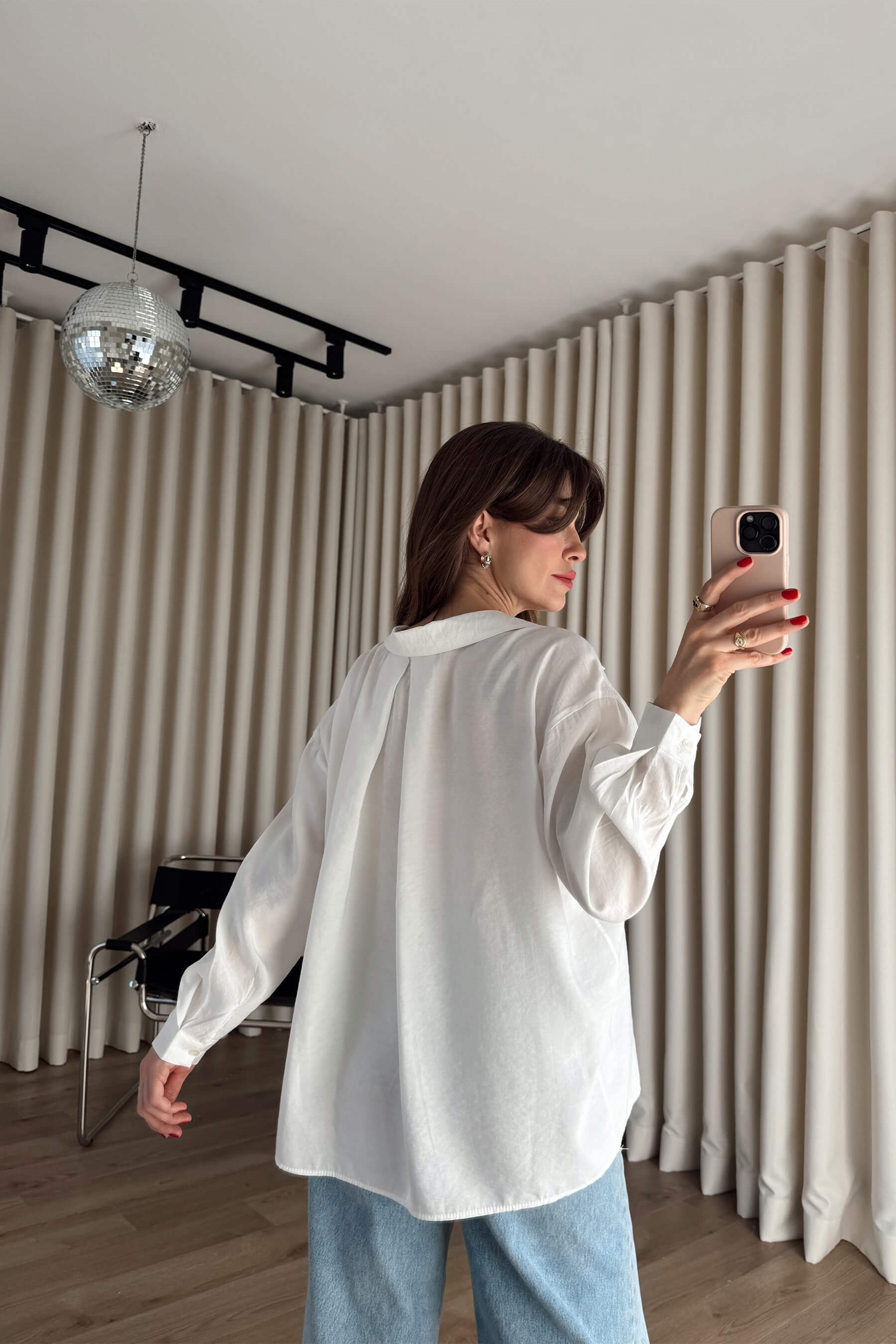 Beyaz Oversize Modal Kumaş Gömlek Model Ölçüleri: Boy: 166 cm, Kilo:54 kg Modelin Üzerindeki Beden: Standart Ürünün Uzunluğu: 65 cm (1-2 cm arası değişiklik gösterebilir.) Kumaş Türü: %80 Modal, %20 Polyester Yıkama Talimatı : Ürünün iç kısmında bulunan etiketten yıkama talimatına ulaşabilirsiniz.