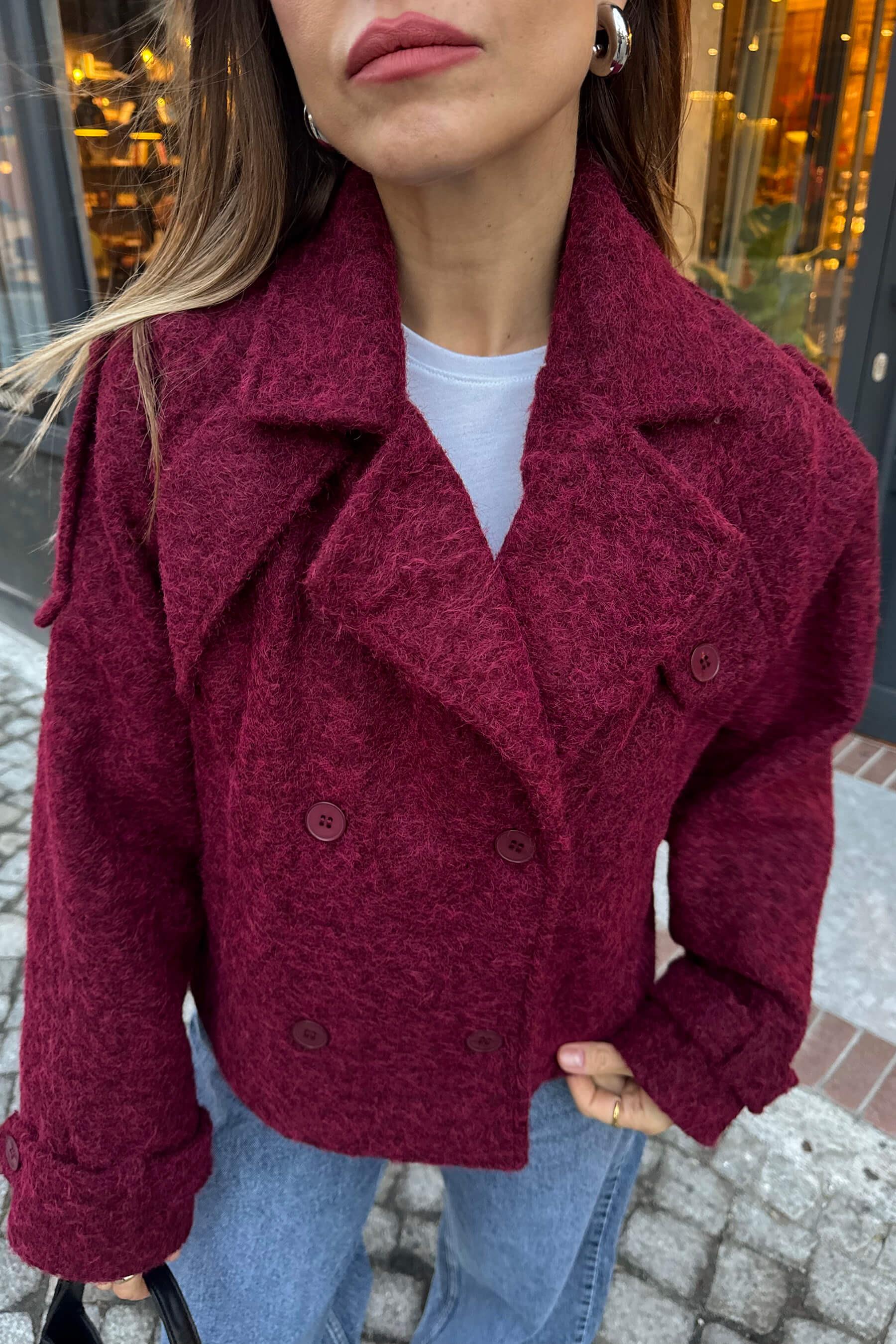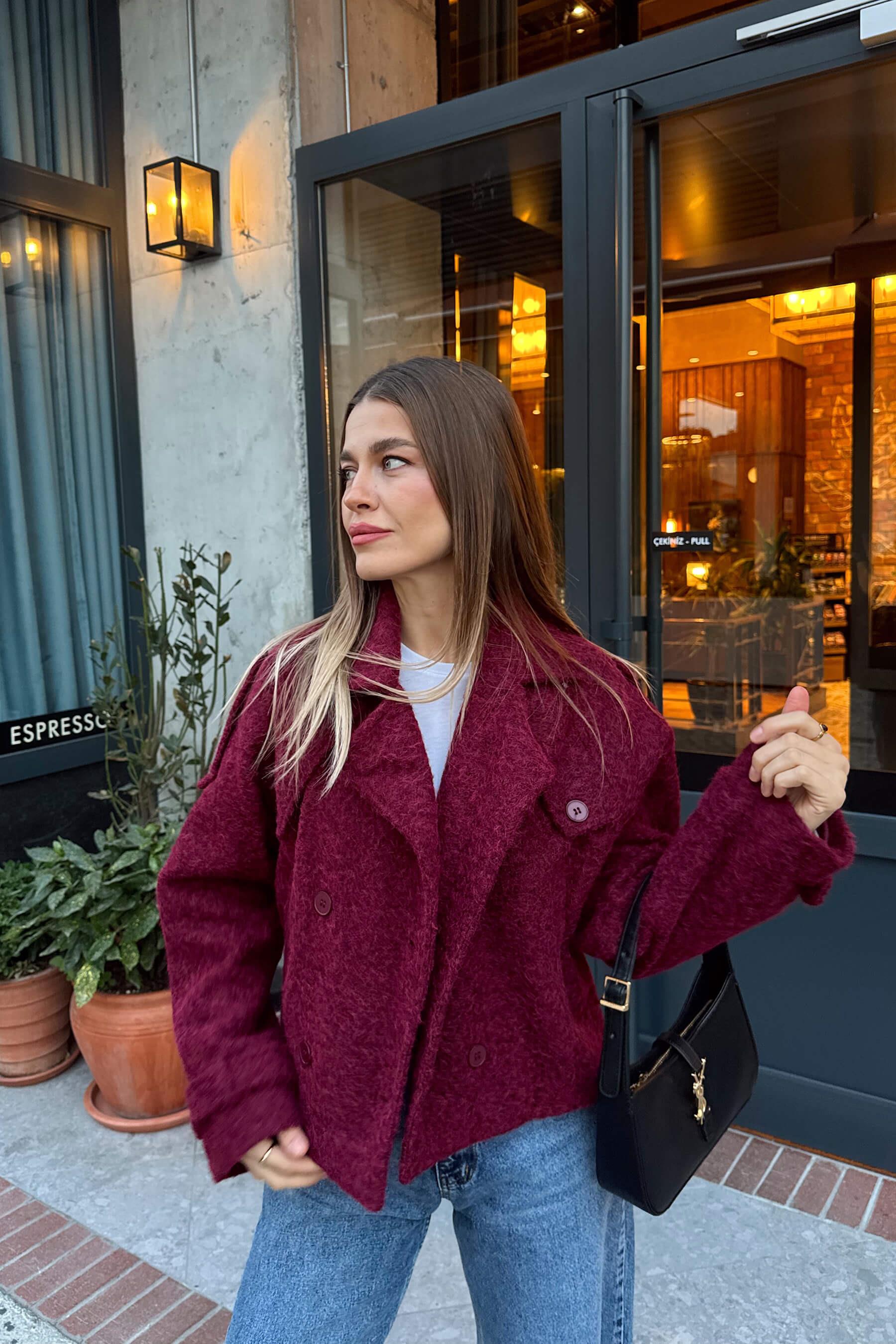 Bordo Apoletli Cep Detay Astarlı Yünlü Mont Model Ölçüleri: Boy: 166 cm, Kilo:54 kg Modelin Üzerindeki Beden: S/36 Ürünün Uzunluğu: 55 cm (1-2 cm arası değişiklik gösterebilir.) Kumaş Türü: %40 Polyester, %30 Pamuk, %30 Yün Yıkama Talimatı : Ürünün iç kısmında bulunan etiketten yıkama talimatına ulaşabilirsiniz.