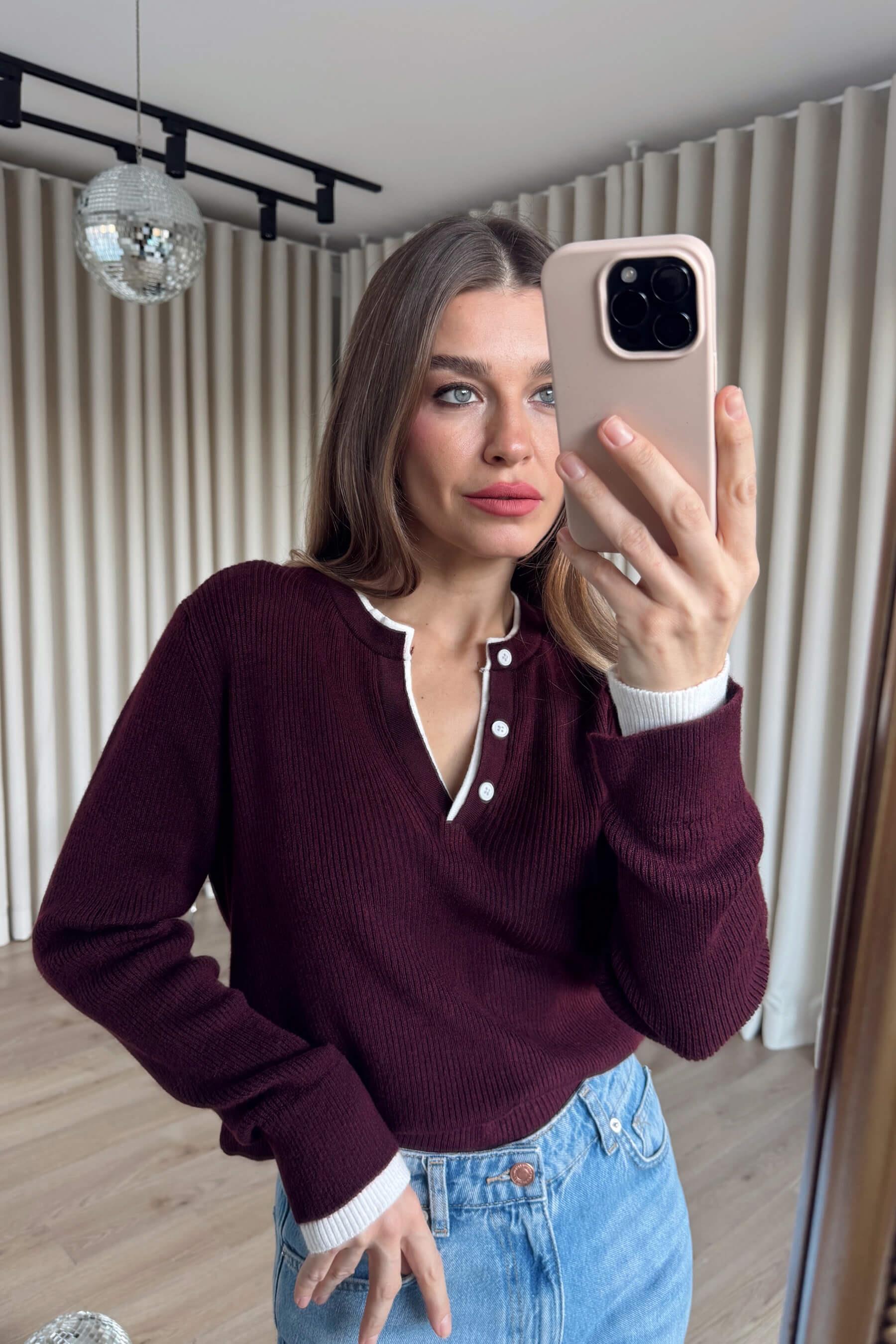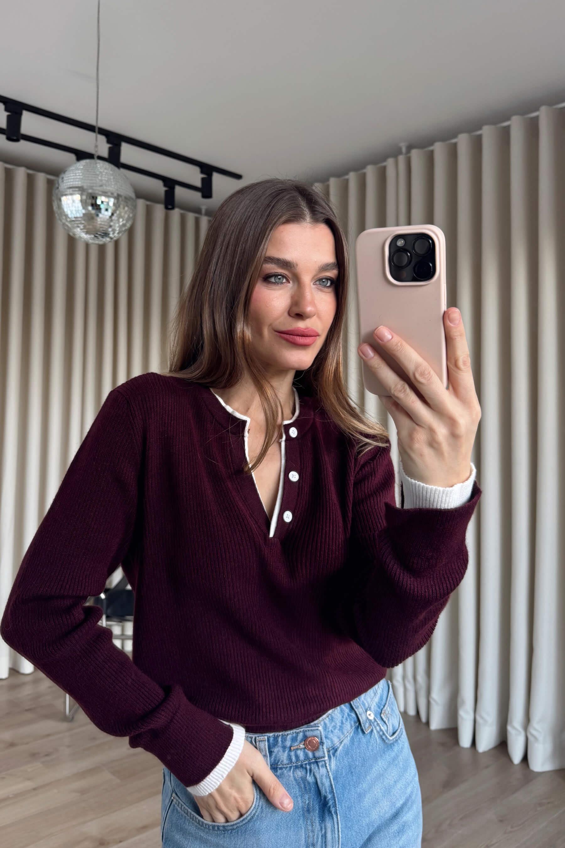 Bordo Beyaz Önü Düğmeli Kazak Model Ölçüleri: Boy: 166 cm, Kilo:54 kg Modelin Üzerindeki Beden: Standart Ürünün Uzunluğu: 60 cm (1-2 cm arası değişiklik gösterebilir.) Kumaş Türü: %52 Akrilik, %30 Viskon, %10 Pbt Yıkama Talimatı : Ürünün iç kısmında bulunan etiketten yıkama talimatına ulaşabilirsiniz.