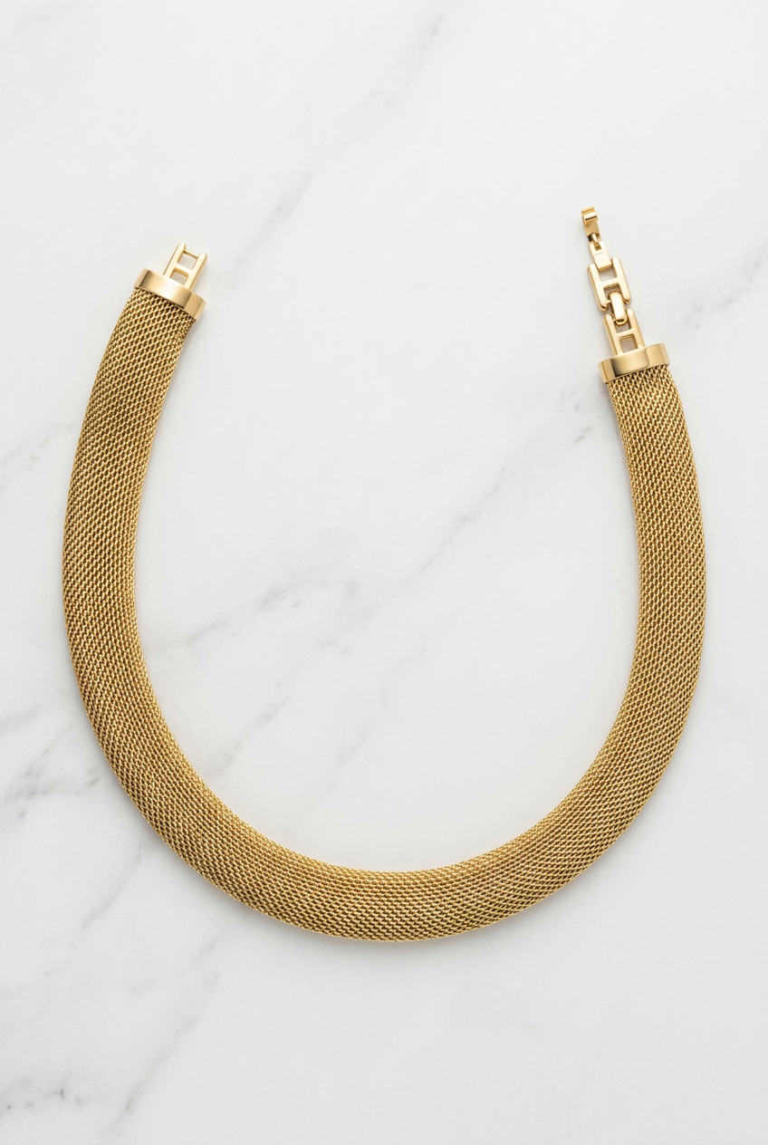 Gold Kalın Hasırlı Tel Örgü Kolye (90257)
