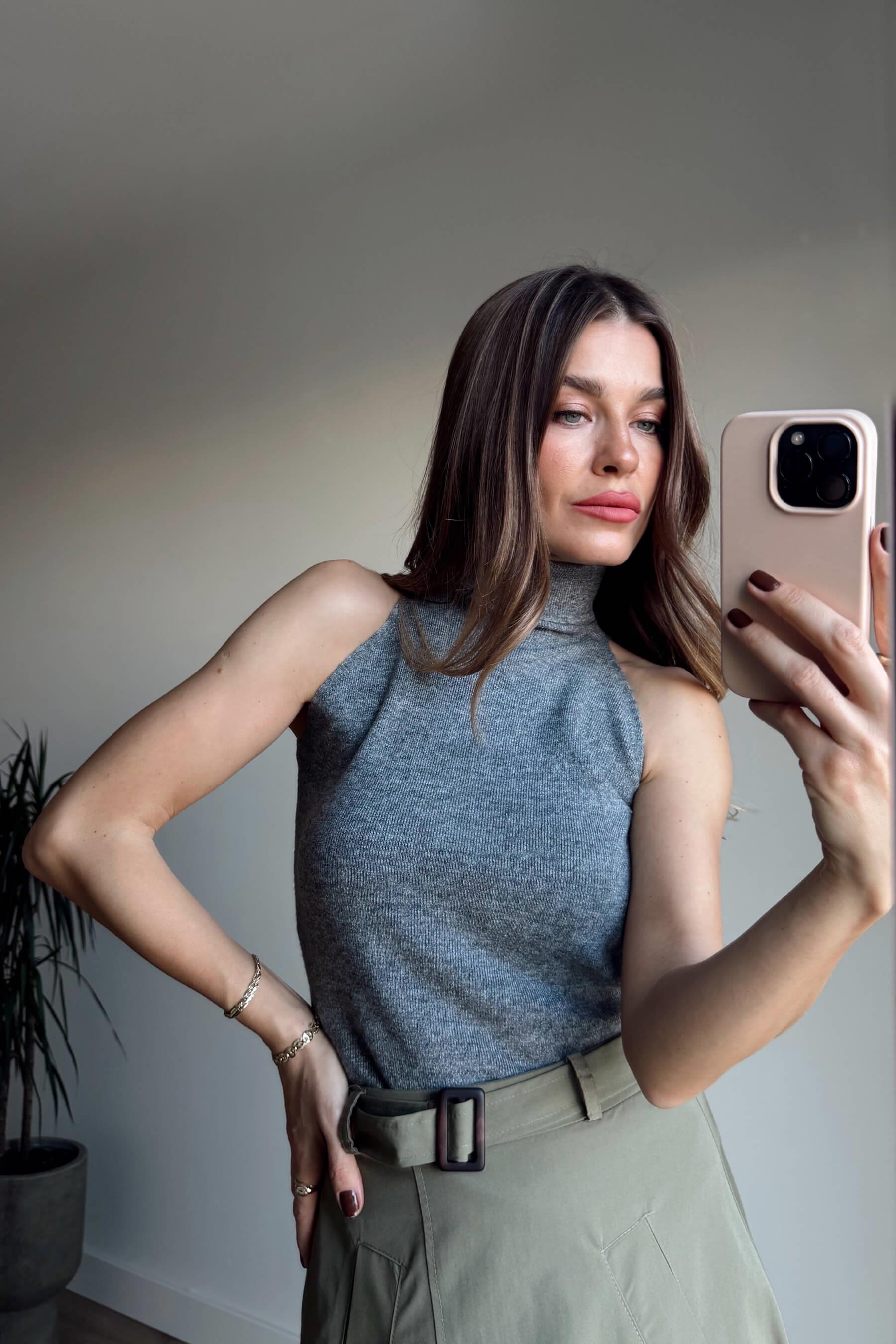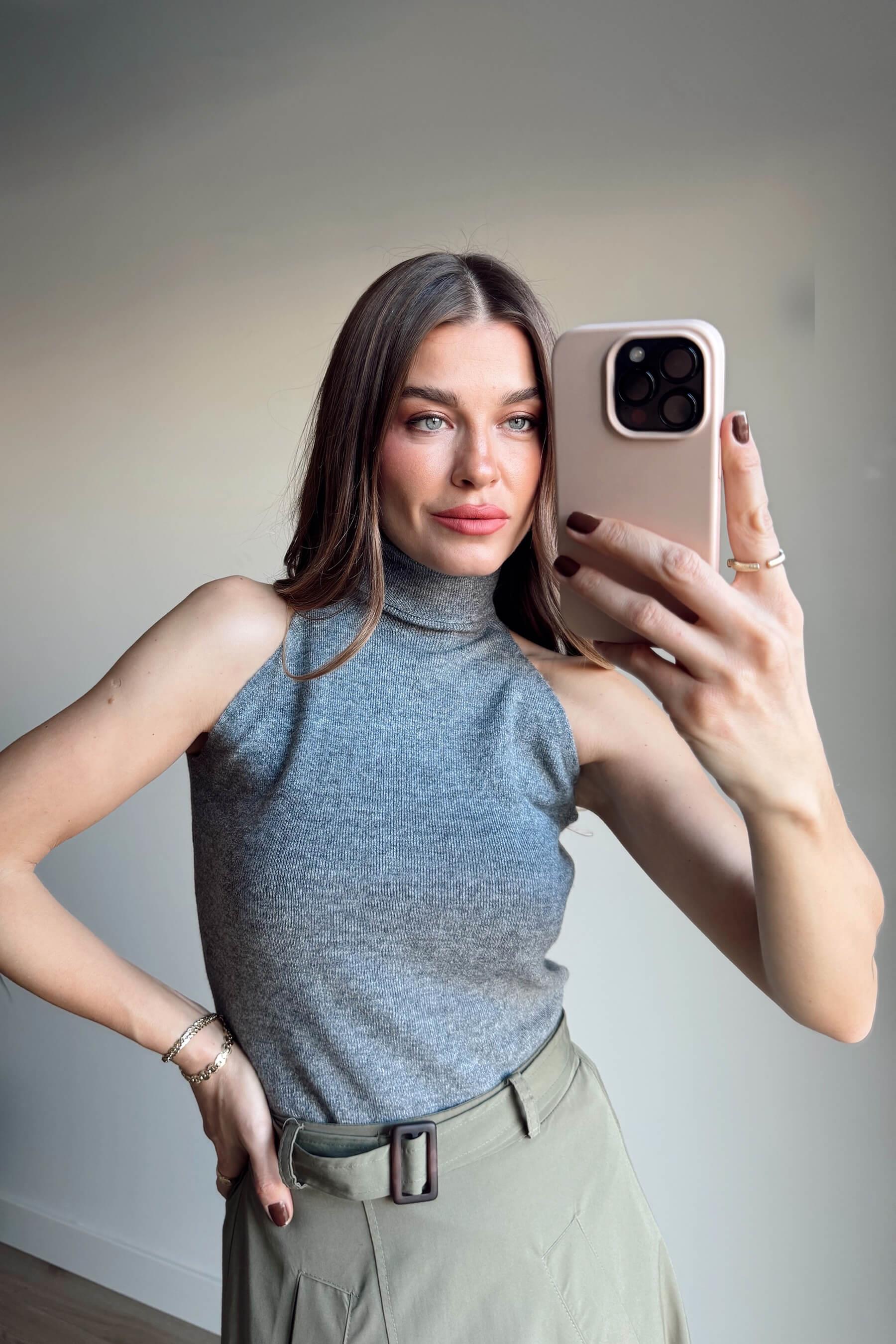 Gri Boğazlı Sıfır Kol Bluz Model Ölçüleri: Boy: 166 cm, Kilo:54 kg Modelin Üzerindeki Beden: Standart Ürünün Uzunluğu: 50 cm (1-2 cm arası değişiklik gösterebilir.) Kumaş Türü:%52 Akrilik, %38 Viskon, %10 Pbt Yıkama Talimatı : Ürünün iç kısmında bulunan etiketten yıkama talimatına ulaşabilirsiniz.