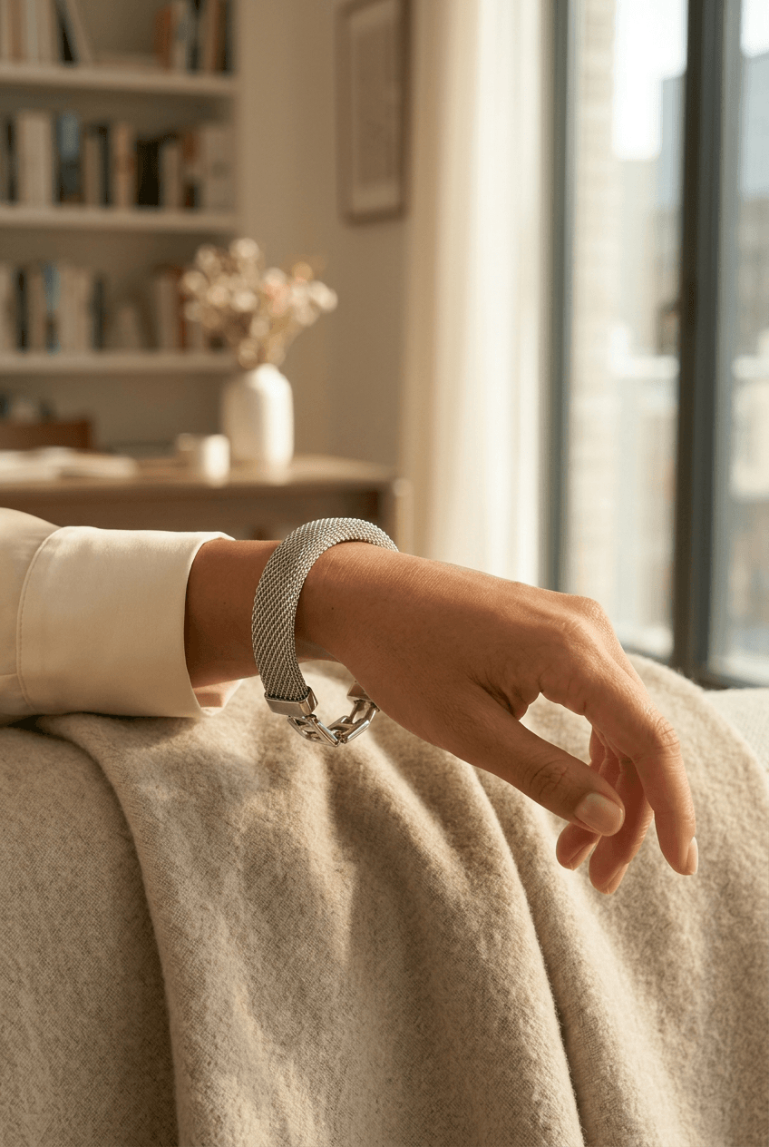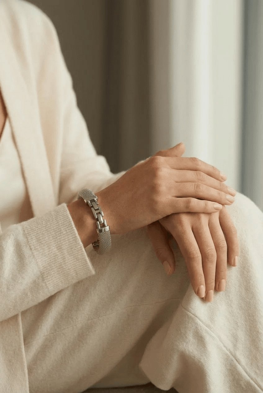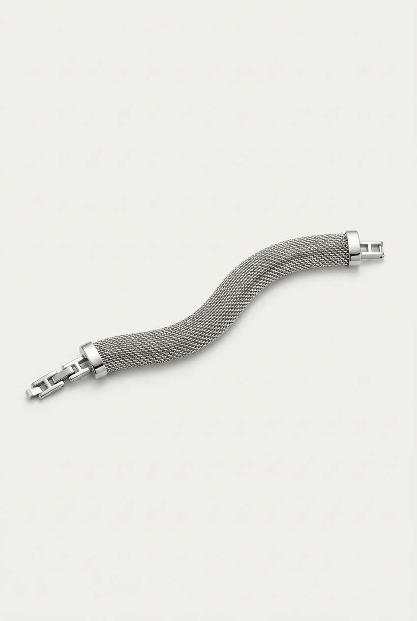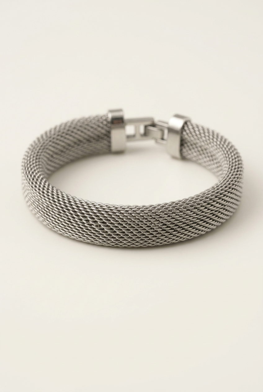 Gümüş Kalın Hasır Tel Örgü Bileklik (90262)