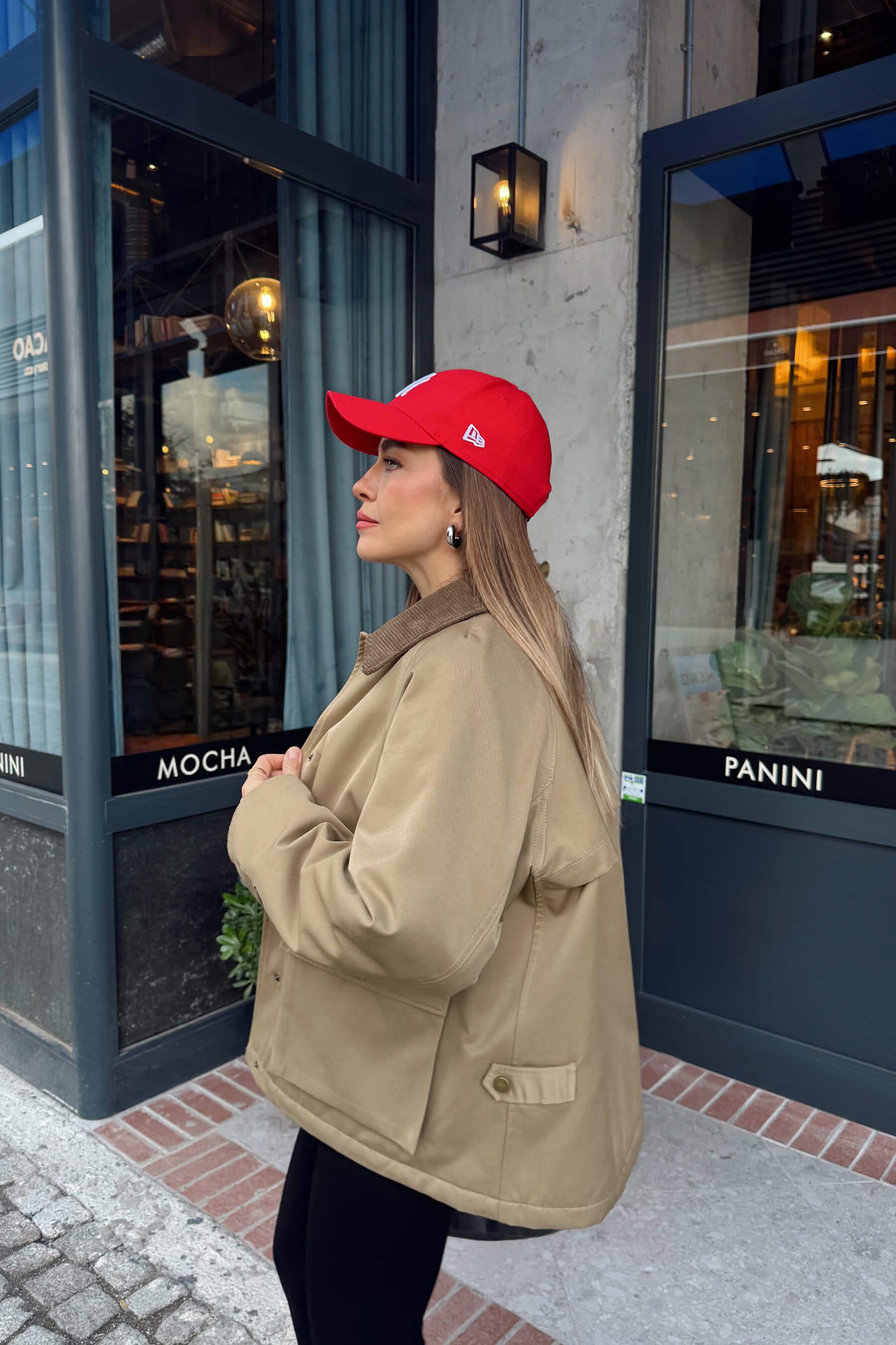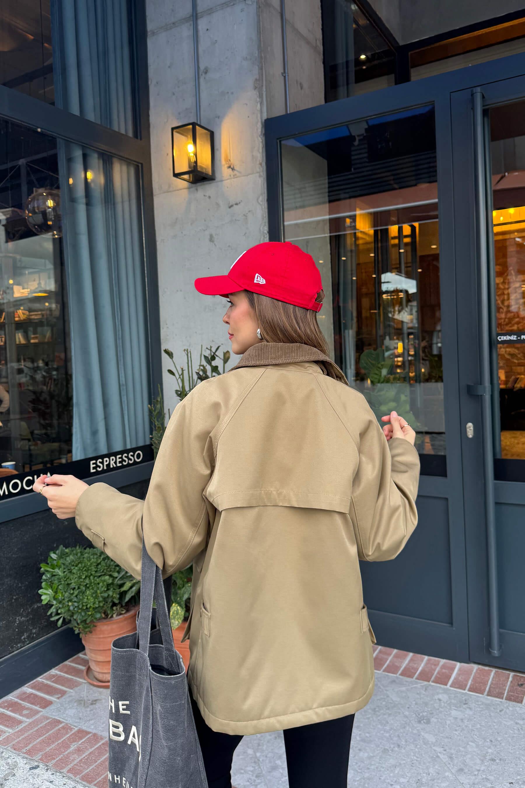 Haki Kadife Yakalı Fermuarlı Oversize Kapitone Gabardin Ceket Model Ölçüleri: Boy: 166 cm, Kilo:54 kg Modelin Üzerindeki Beden: S/36 Ürünün Uzunluğu: 67 cm (1-2 cm arası değişiklik gösterebilir.) Kumaş Türü: %50 Pamuk, %50 Naylon Yıkama Talimatı : Ürünün iç kısmında bulunan etiketten yıkama talimatına ulaşabilirsiniz.