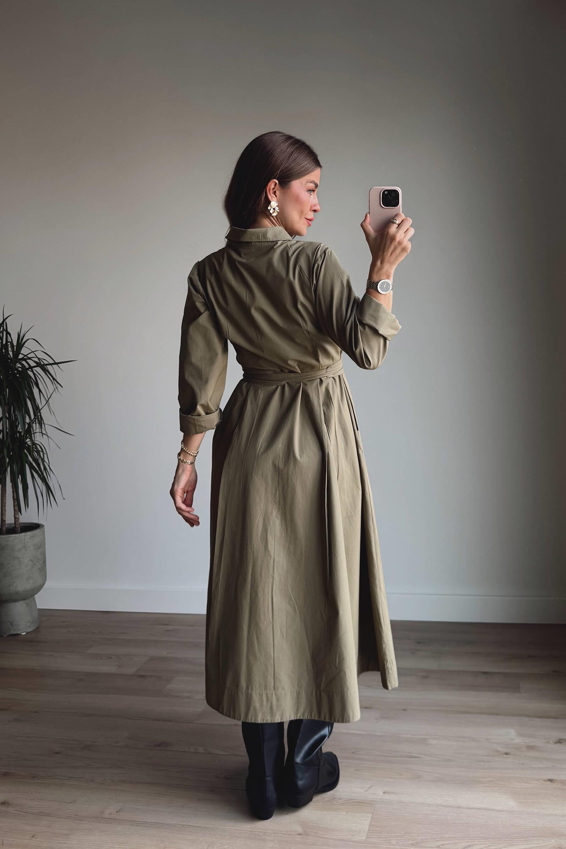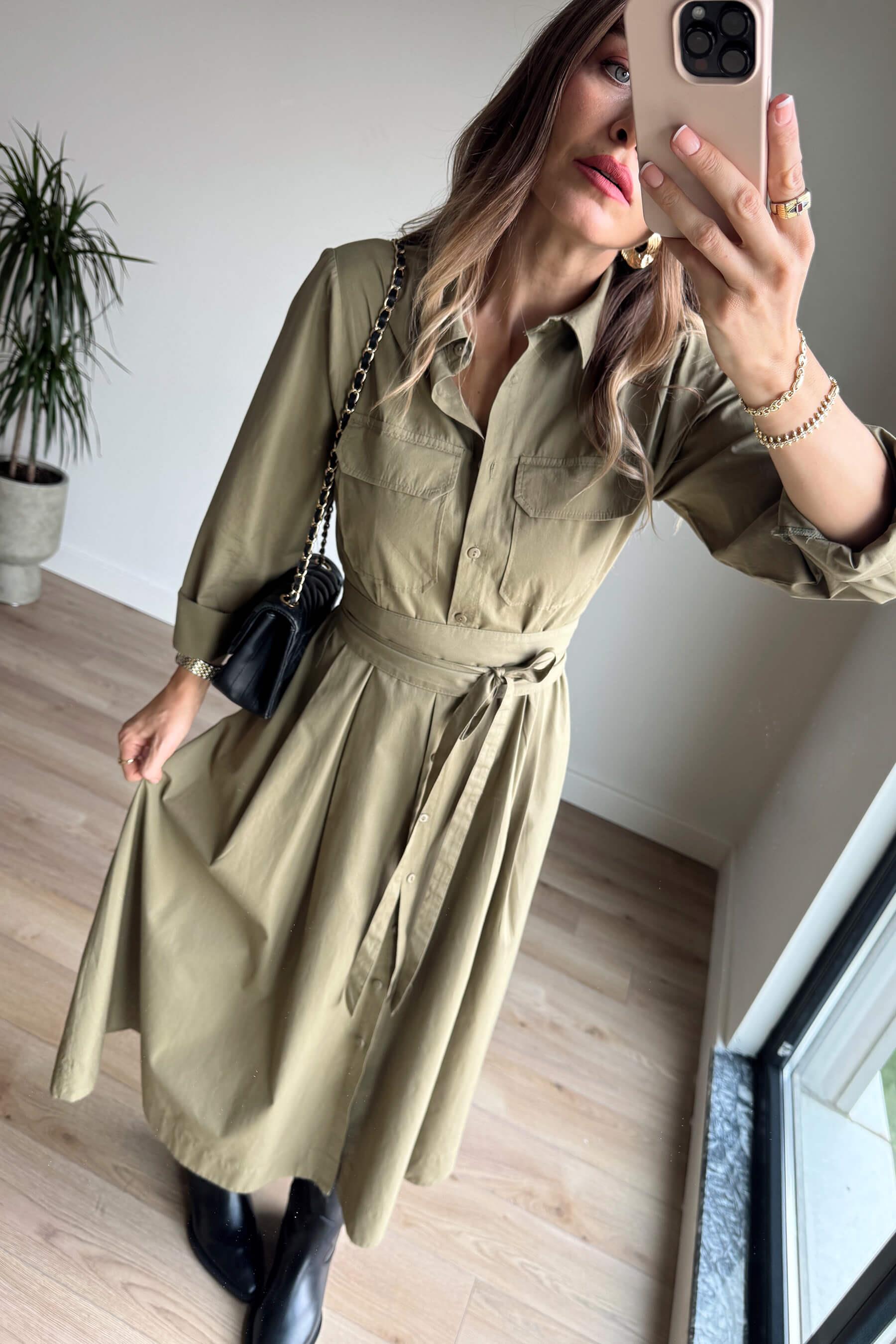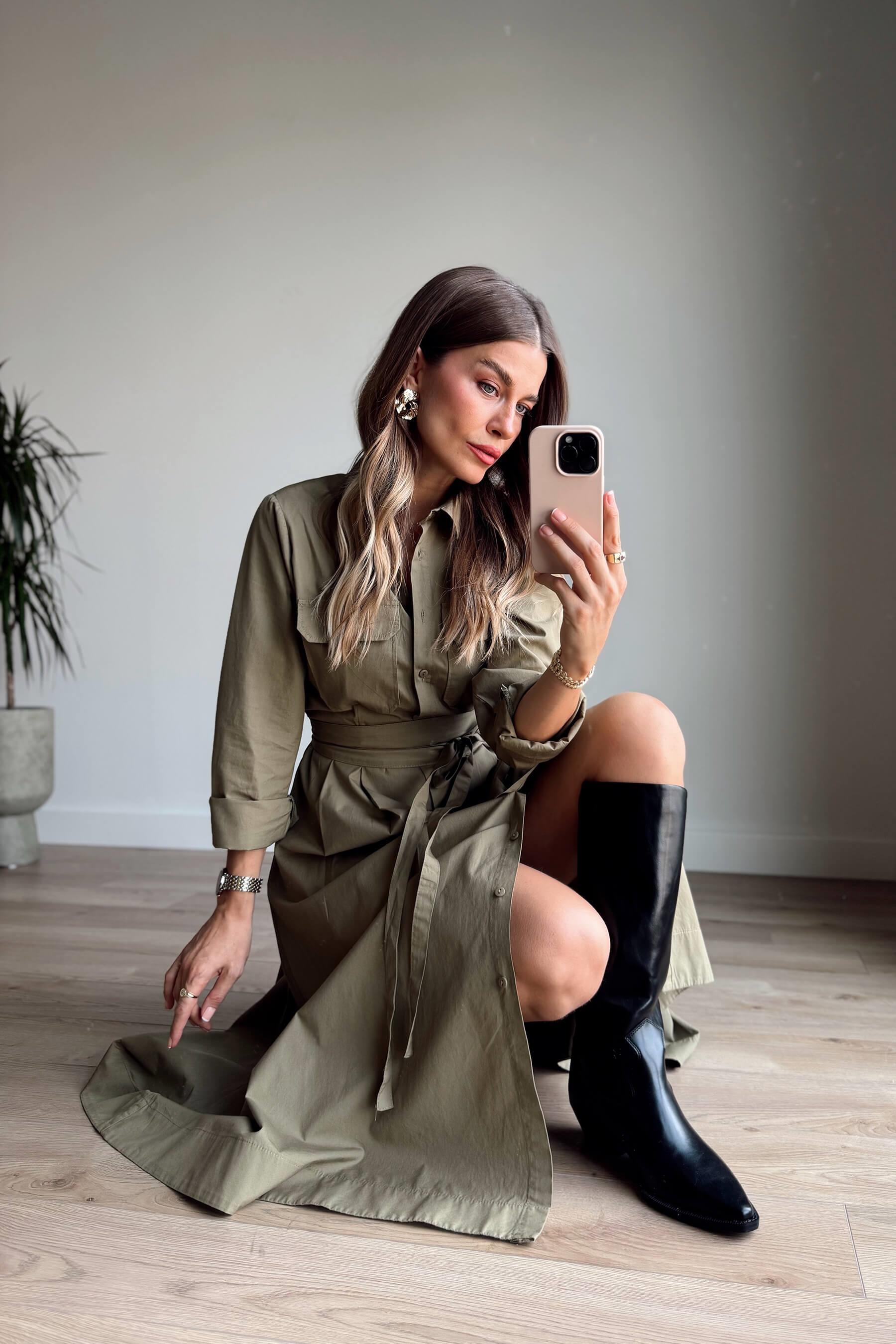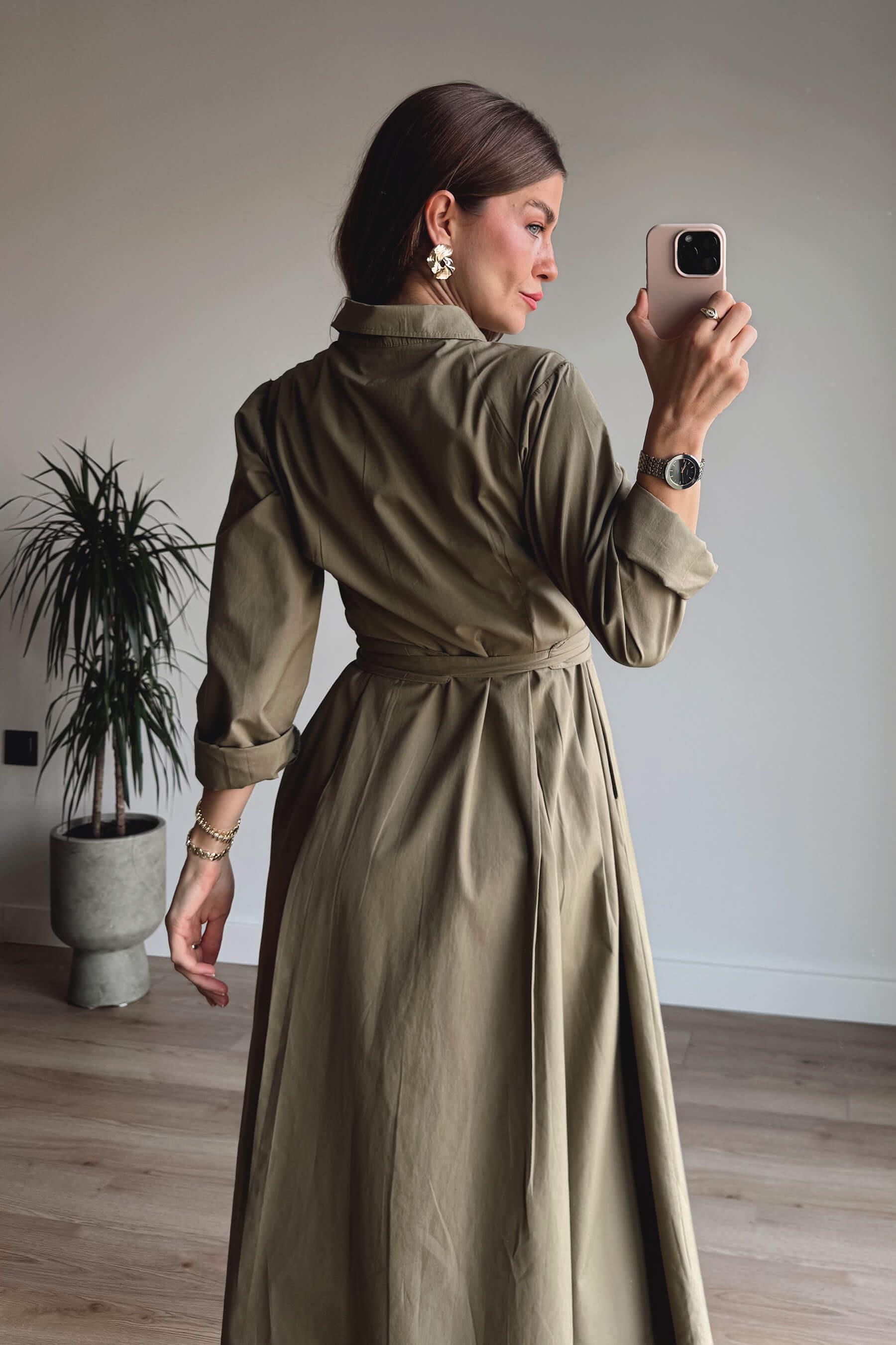 Haki Korseli Cep Detaylı Maxi Gömlek Elbise Model Ölçüleri: Boy: 166 cm, Kilo:54 kg Modelin Üzerindeki Beden: S/36 Ürünün Uzunluğu: 120 cm (1-2 cm arası değişiklik gösterebilir.) Kumaş Türü: Pamuk Yıkama Talimatı : Ürünün iç kısmında bulunan etiketten yıkama talimatına ulaşabilirsiniz.