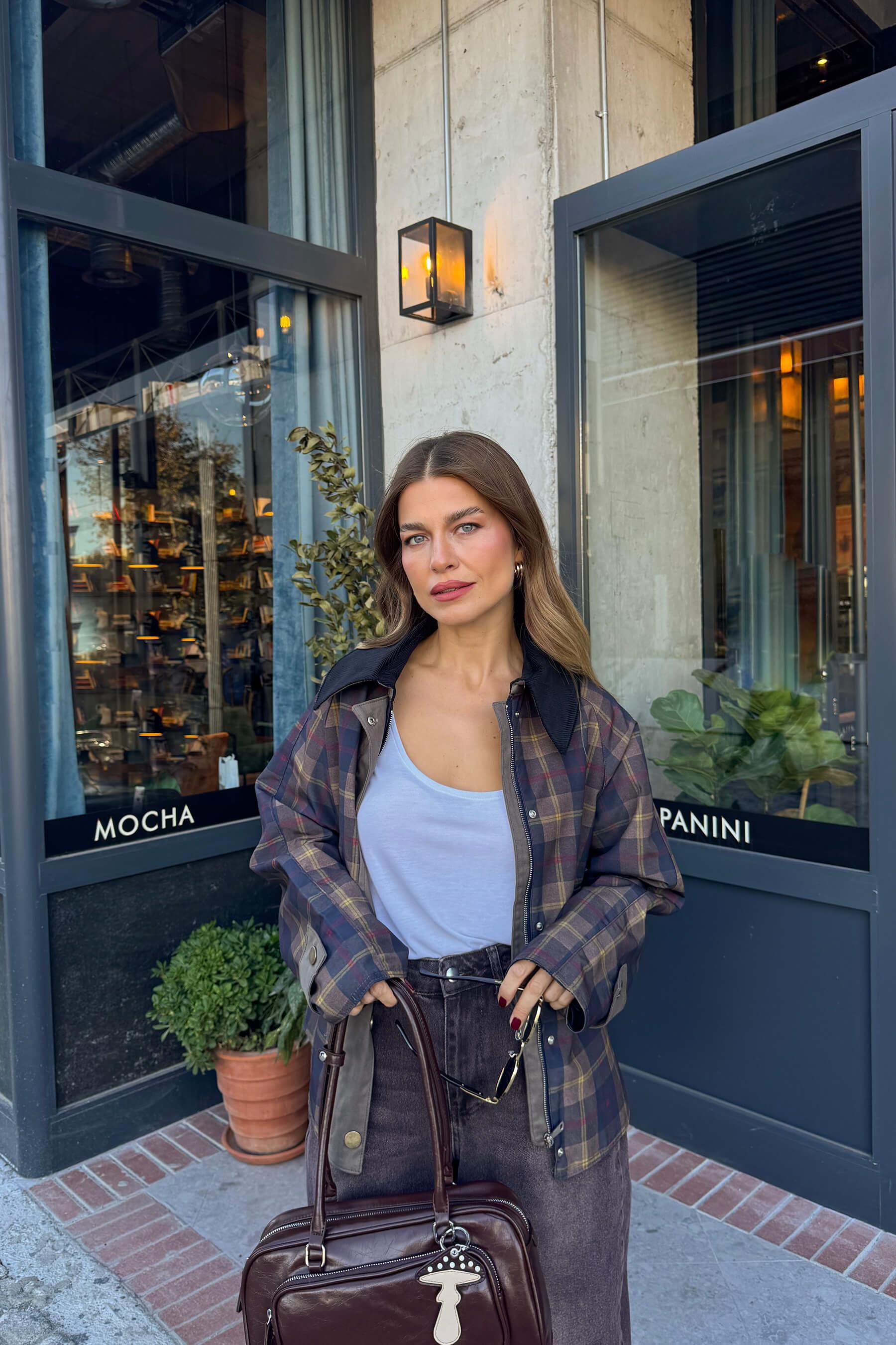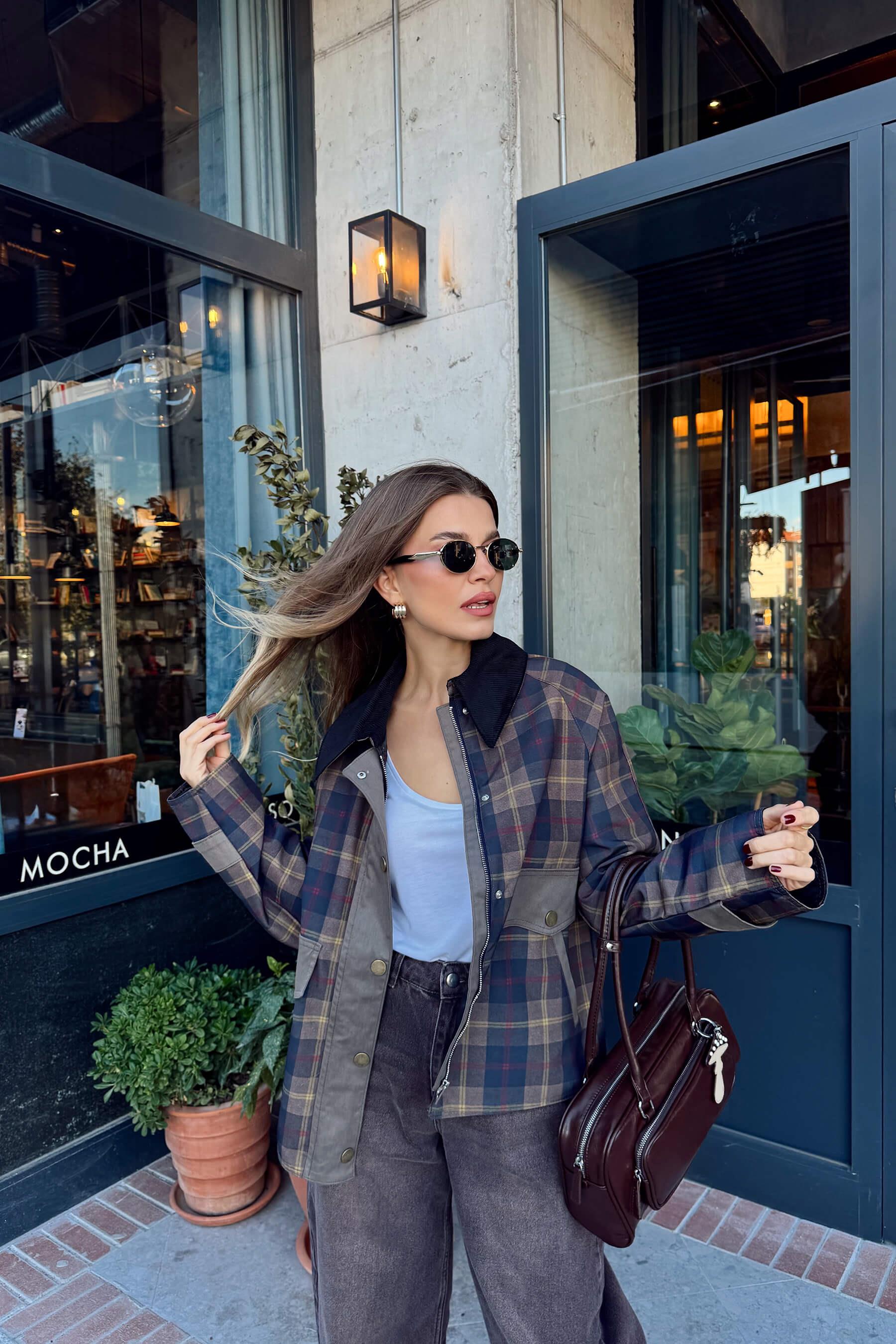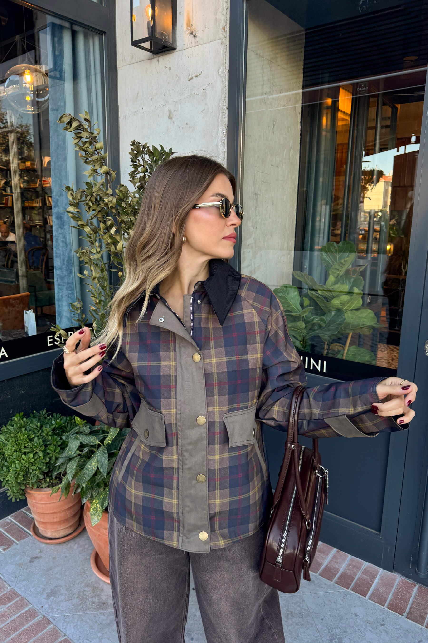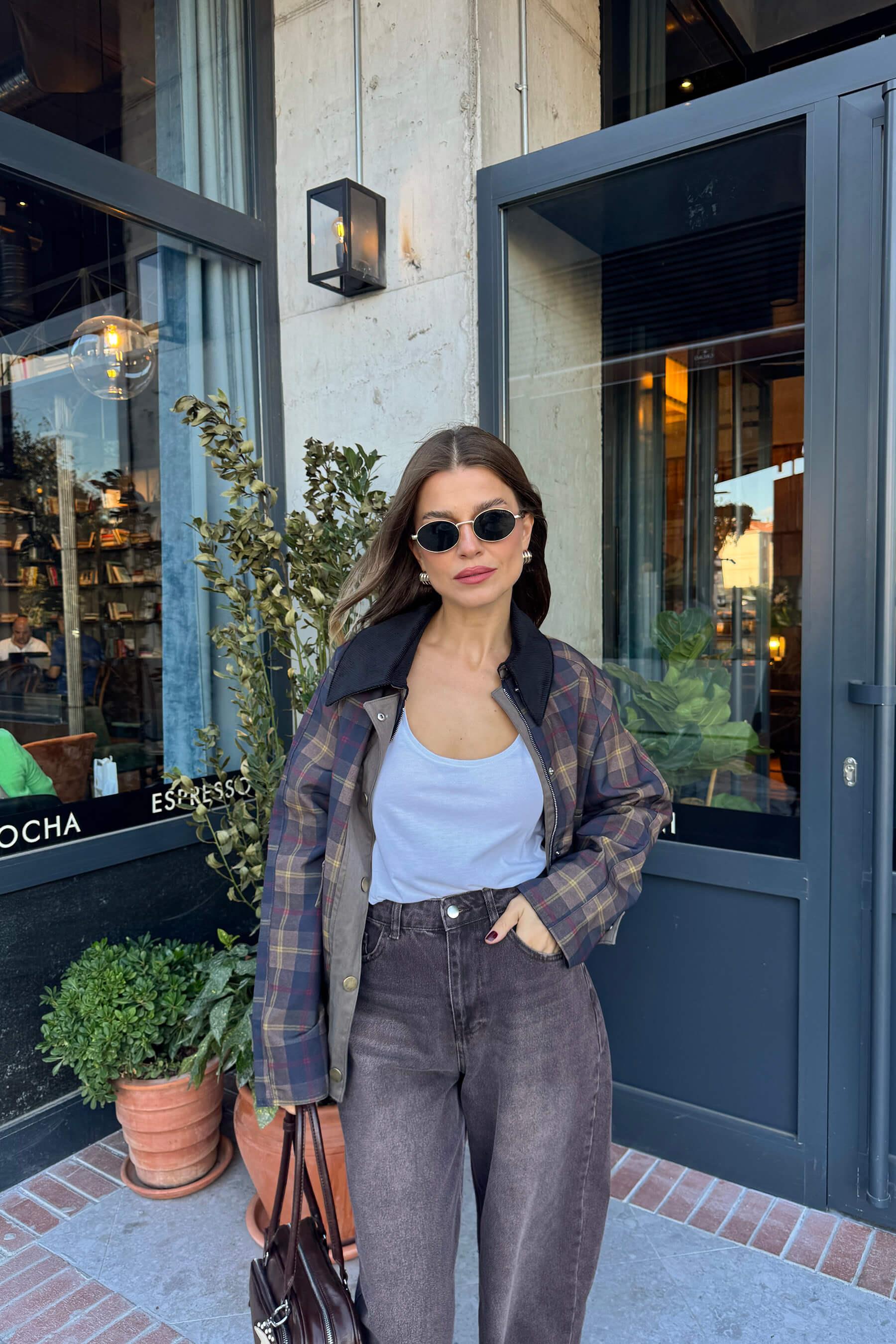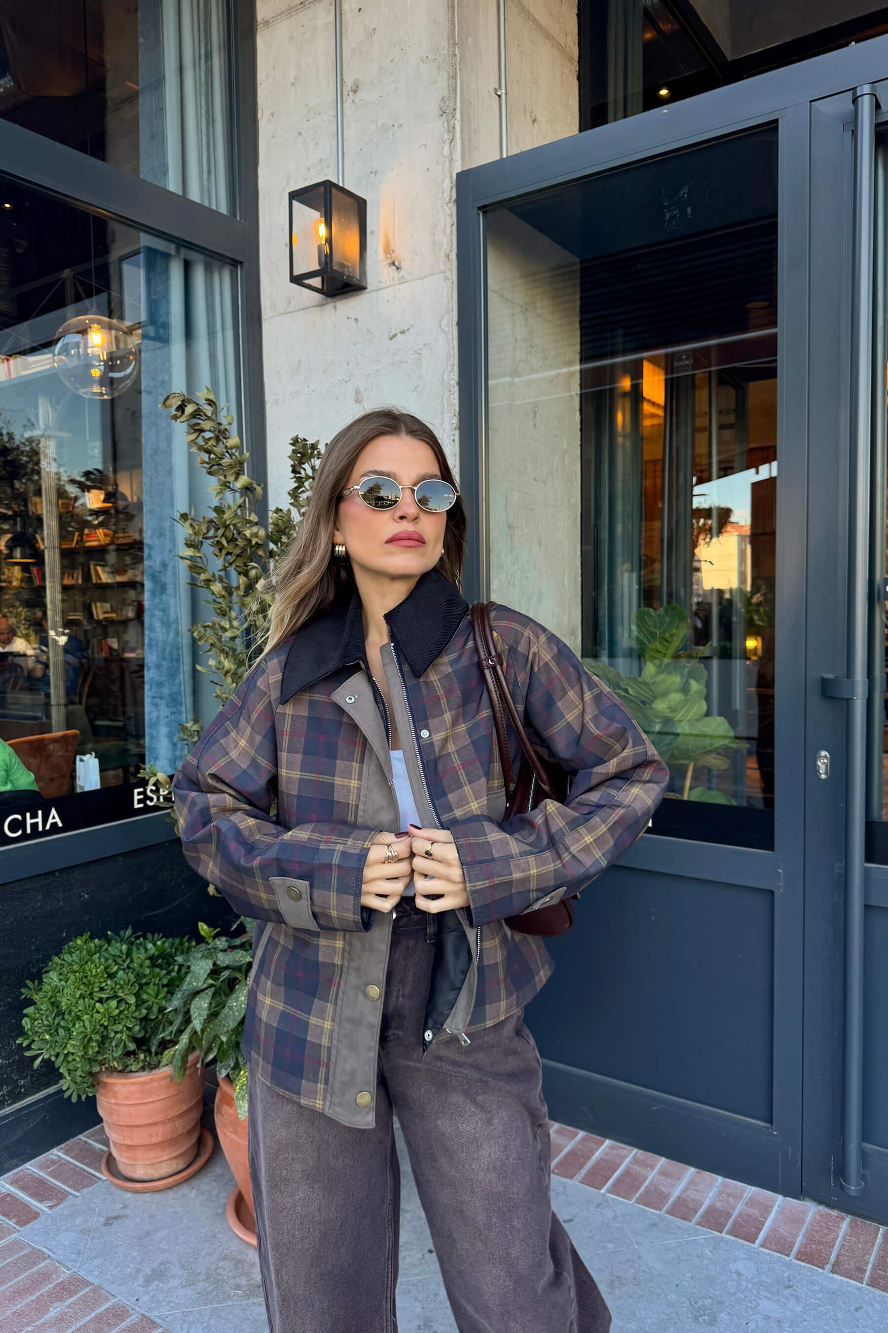 Haki Lacivert Ekoseli Astarlı Kadife Yaka Ceket Model Ölçüleri: Boy: 166 cm, Kilo:54 kg Modelin Üzerindeki Beden: S/36 Ürünün Uzunluğu: 65 cm (1-2 cm arası değişiklik gösterebilir.) Kumaş Türü: Pamuk Yıkama Talimatı : Ürünün iç kısmında bulunan etiketten yıkama talimatına ulaşabilirsiniz.
