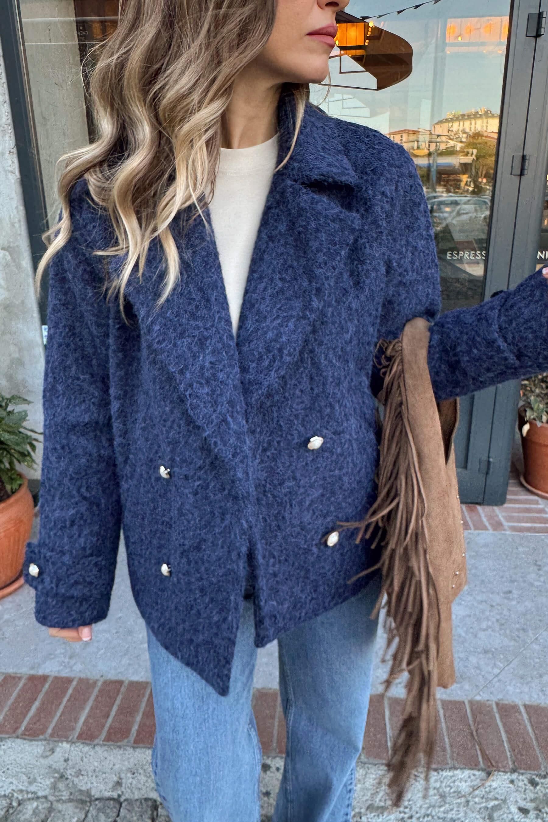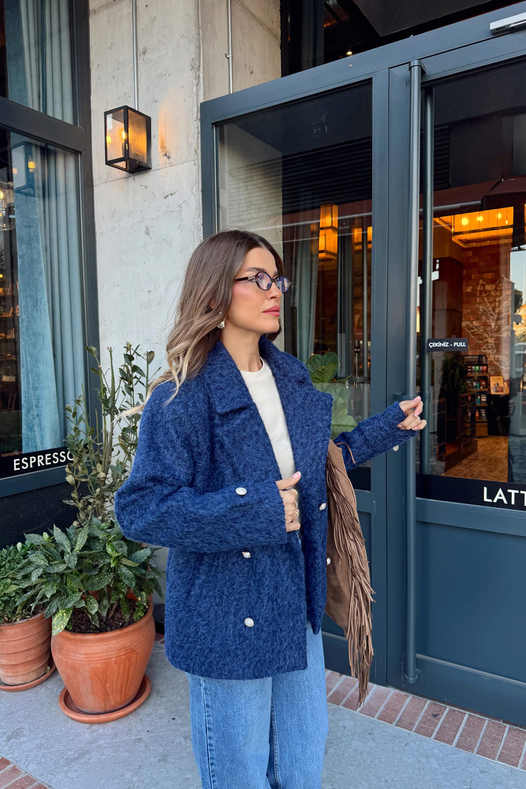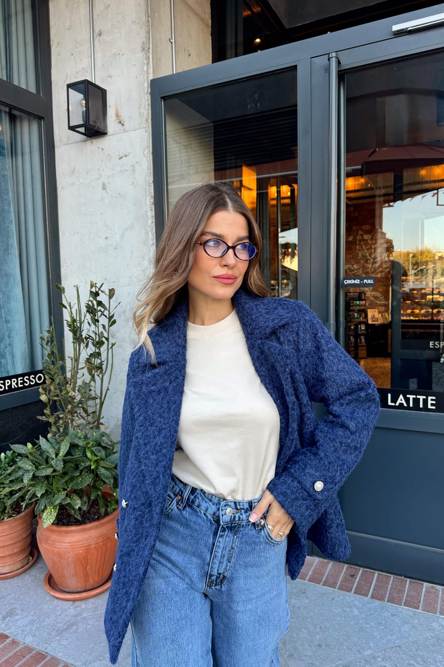 İndigo İnci Düğmeli Astarlı Yün Karışımlı Oversize Ceket Model Ölçüleri: Boy: 166 cm, Kilo:54 kg Modelin Üzerindeki Beden: S/36 Ürünün Uzunluğu: 72 cm (1-2 cm arası değişiklik gösterebilir.) Kumaş Türü: %40 Polyester, %30 Pamuk, %30 Yün Yıkama Talimatı : Ürünün iç kısmında bulunan etiketten yıkama talimatına ulaşabilirsiniz.