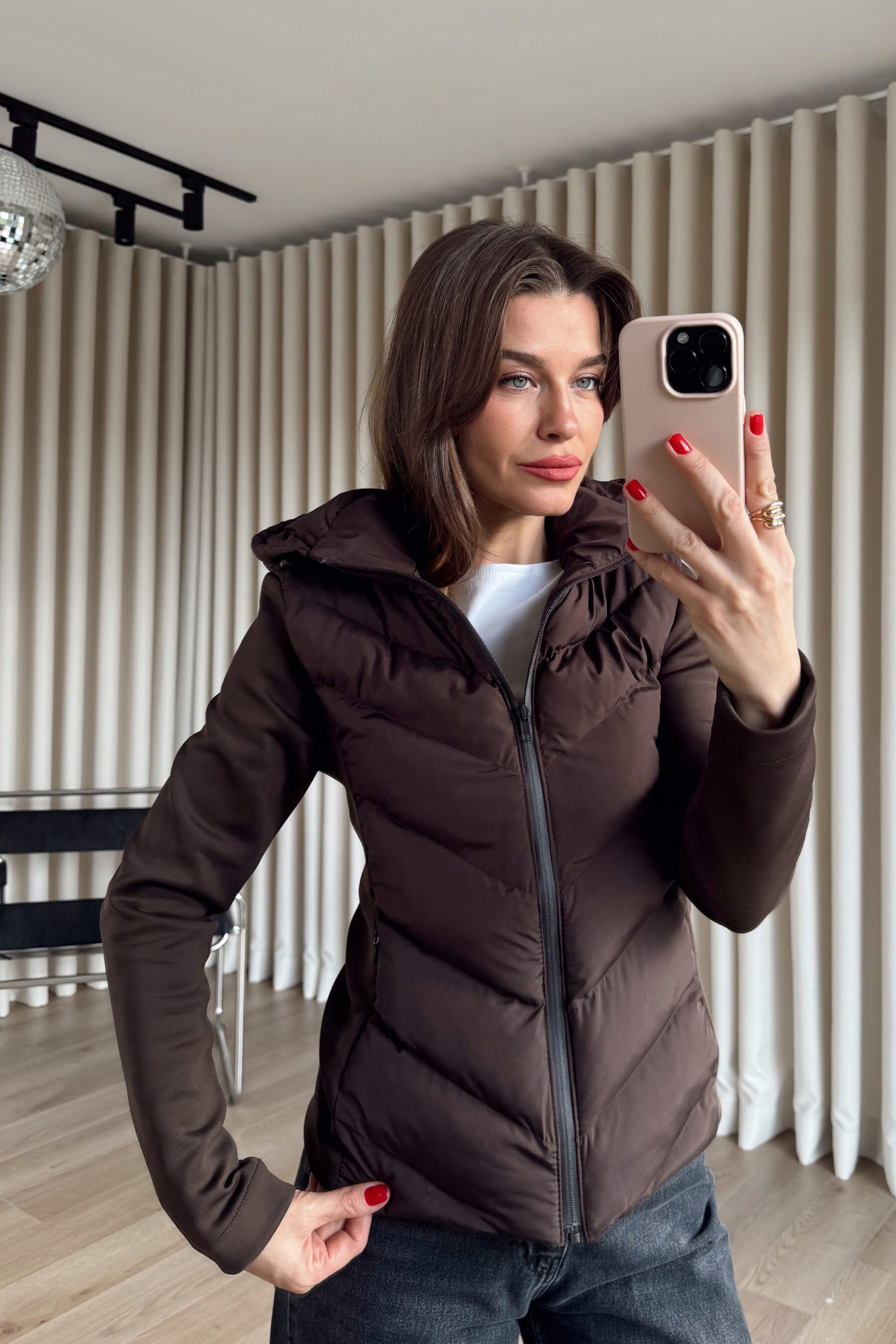 Kahverengi Dalgıç Kumaş Şişme Kapşonlu Mont Model Ölçüleri: Boy: 166 cm, Kilo:54 kg Modelin Üzerindeki Beden: S/36 Ürünün Uzunluğu: 60 cm (1-2 cm arası değişiklik gösterebilir.) Kumaş Türü: Polyester Yıkama Talimatı : Ürünün iç kısmında bulunan etiketten yıkama talimatına ulaşabilirsiniz.