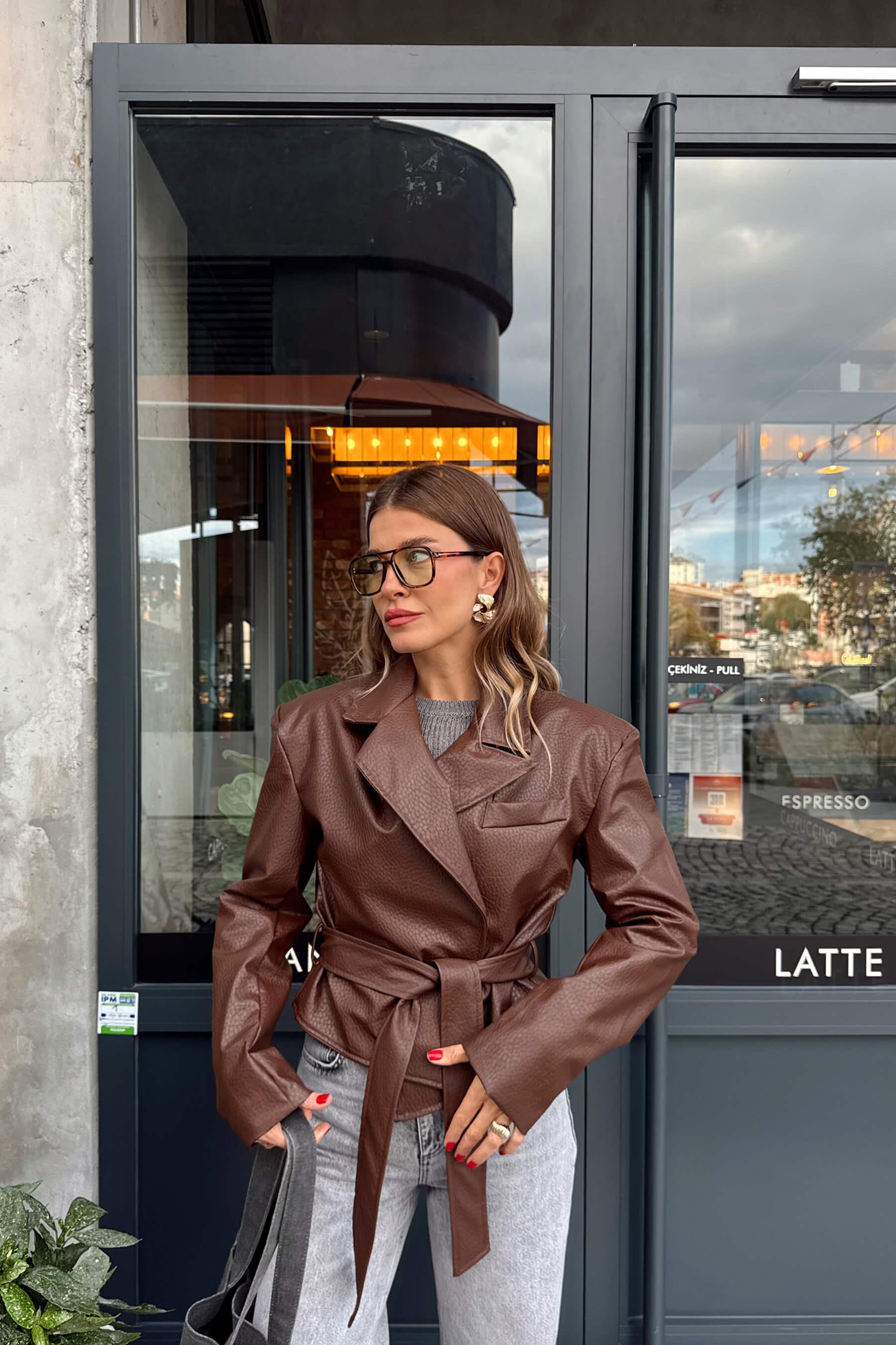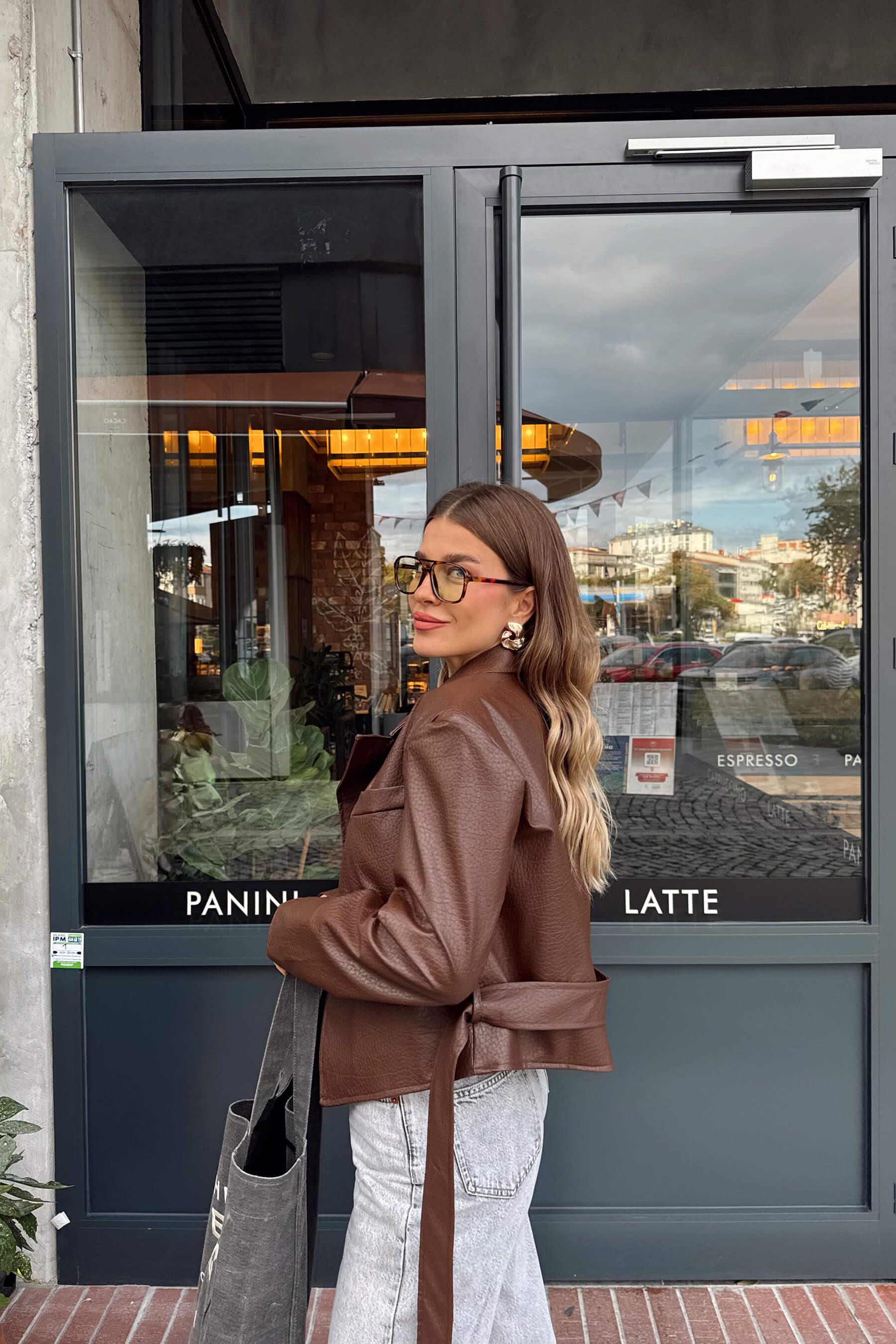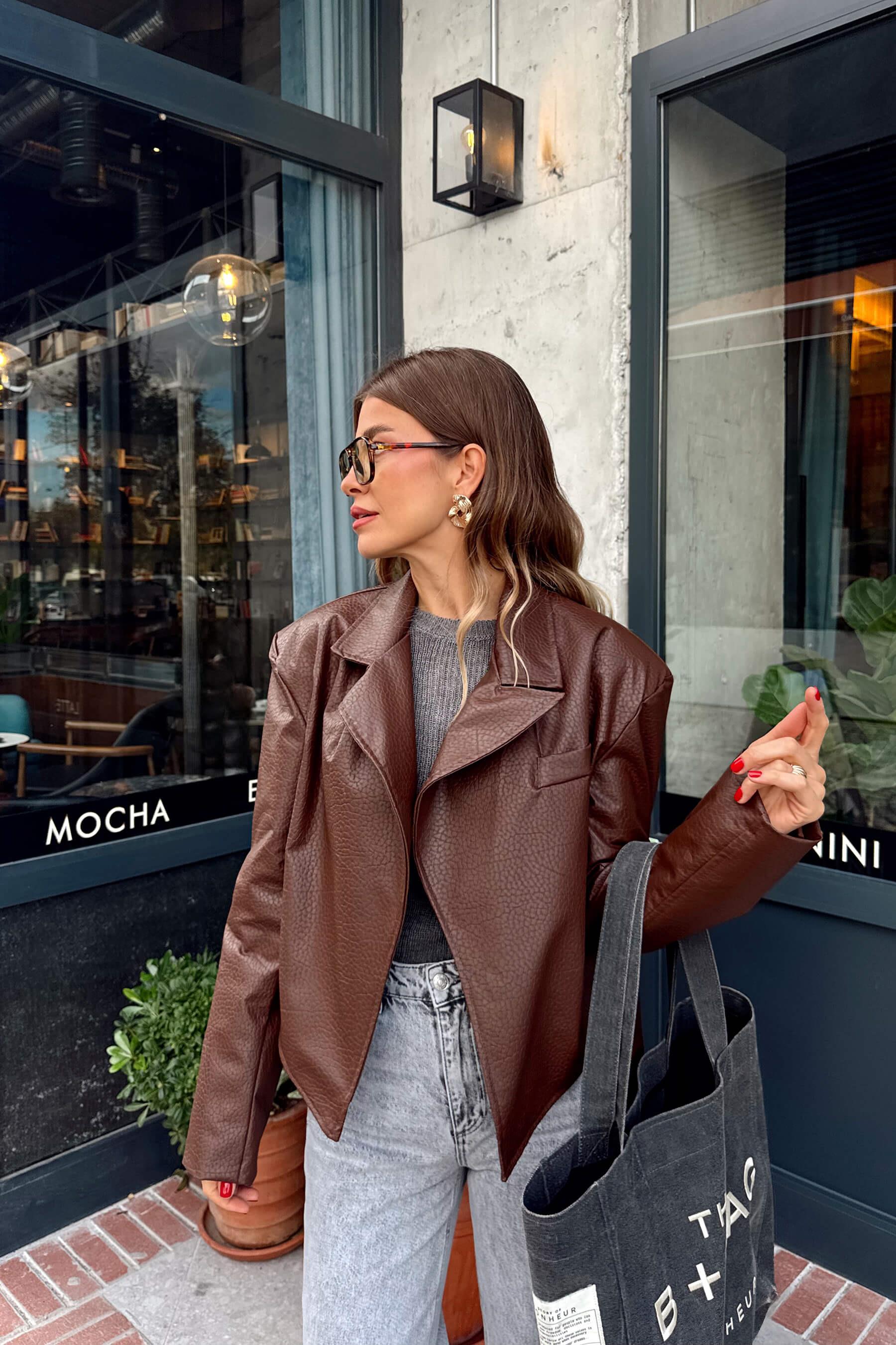 Kahverengi Vatkalı Astarlı Deri Ceket Model Ölçüleri: Boy: 166 cm, Kilo:54 kg Modelin Üzerindeki Beden: S/36 Ürünün Uzunluğu: 52 cm (1-2 cm arası değişiklik gösterebilir.) Kumaş Türü: Suni Deri Yıkama Talimatı : Ürünün iç kısmında bulunan etiketten yıkama talimatına ulaşabilirsiniz.