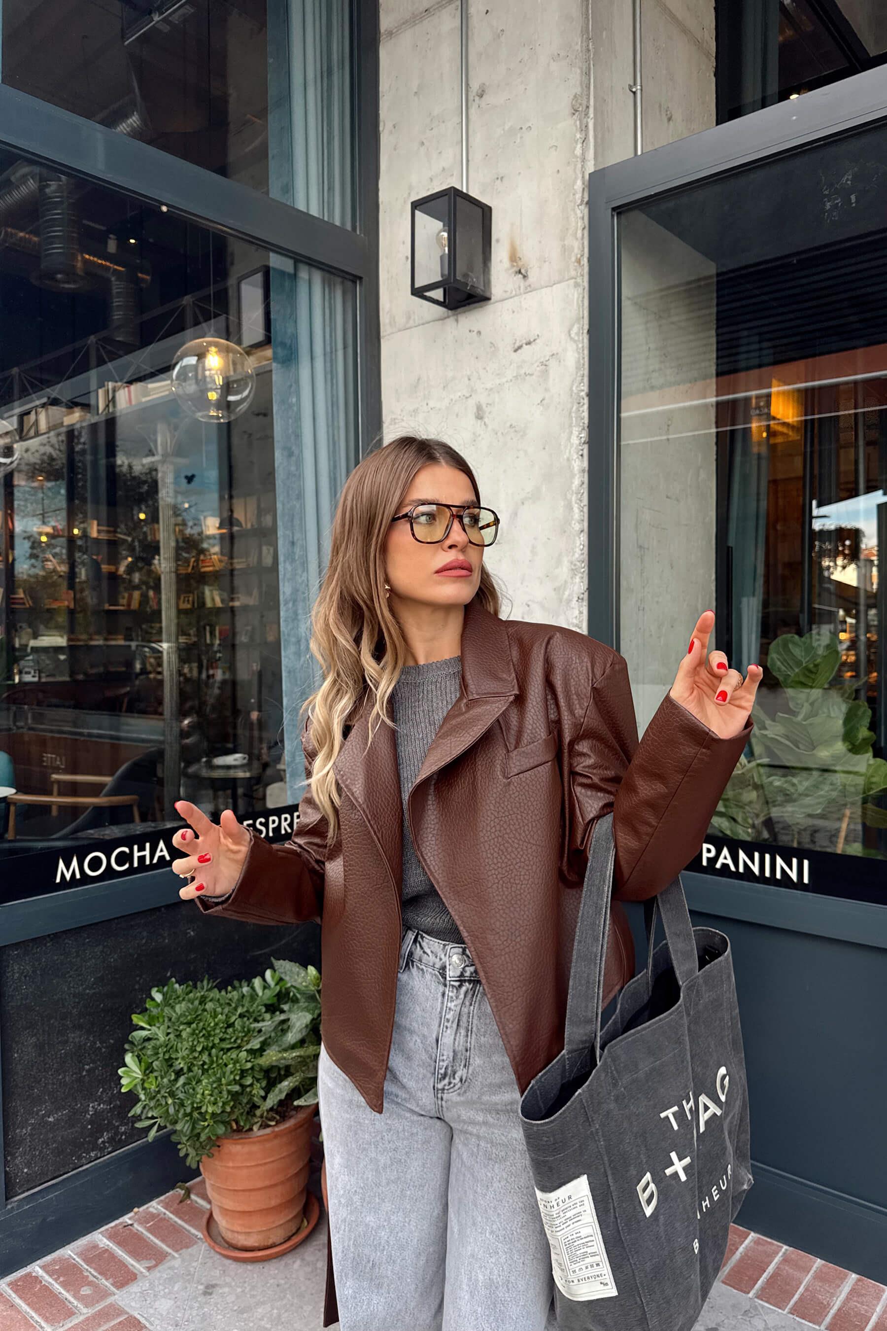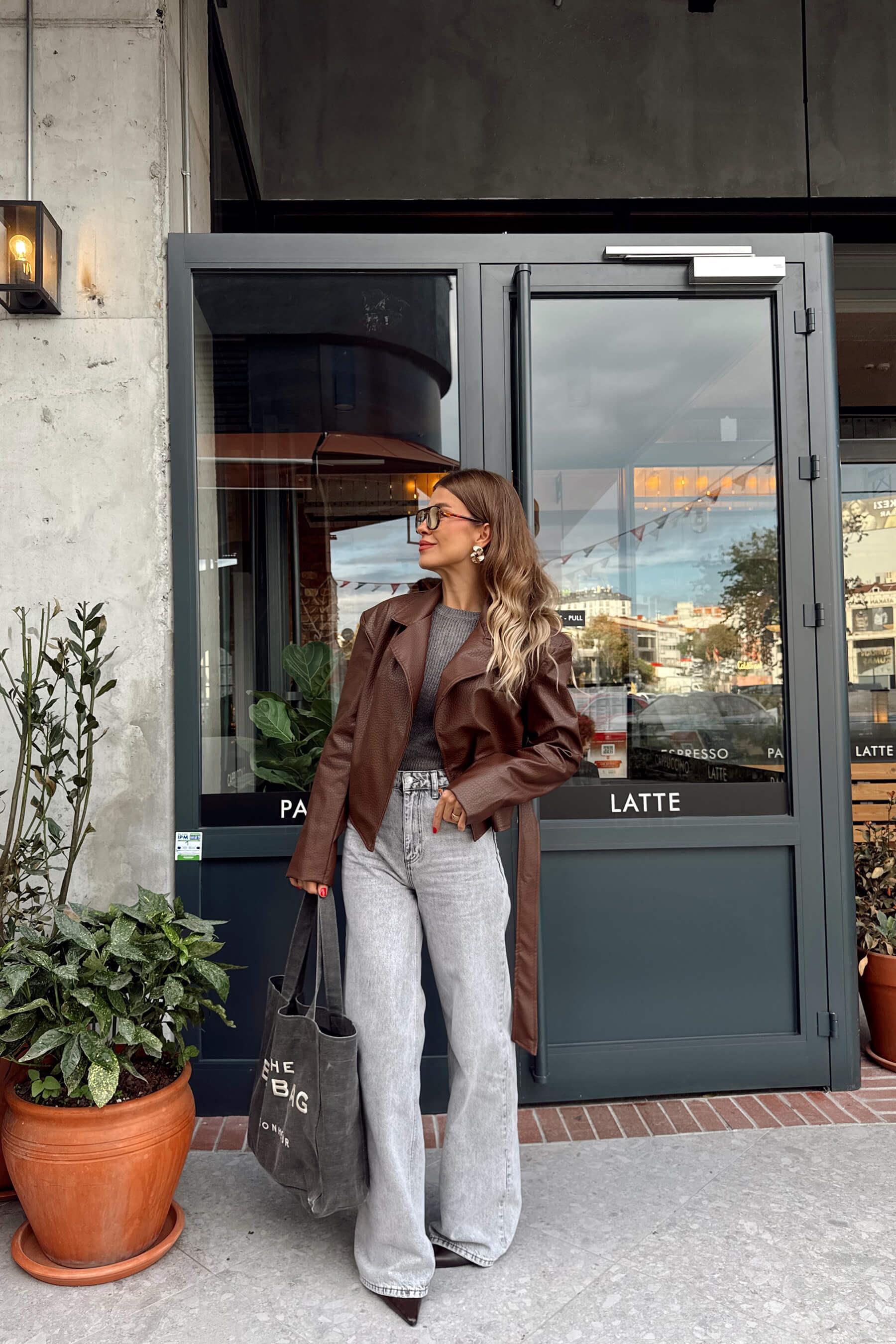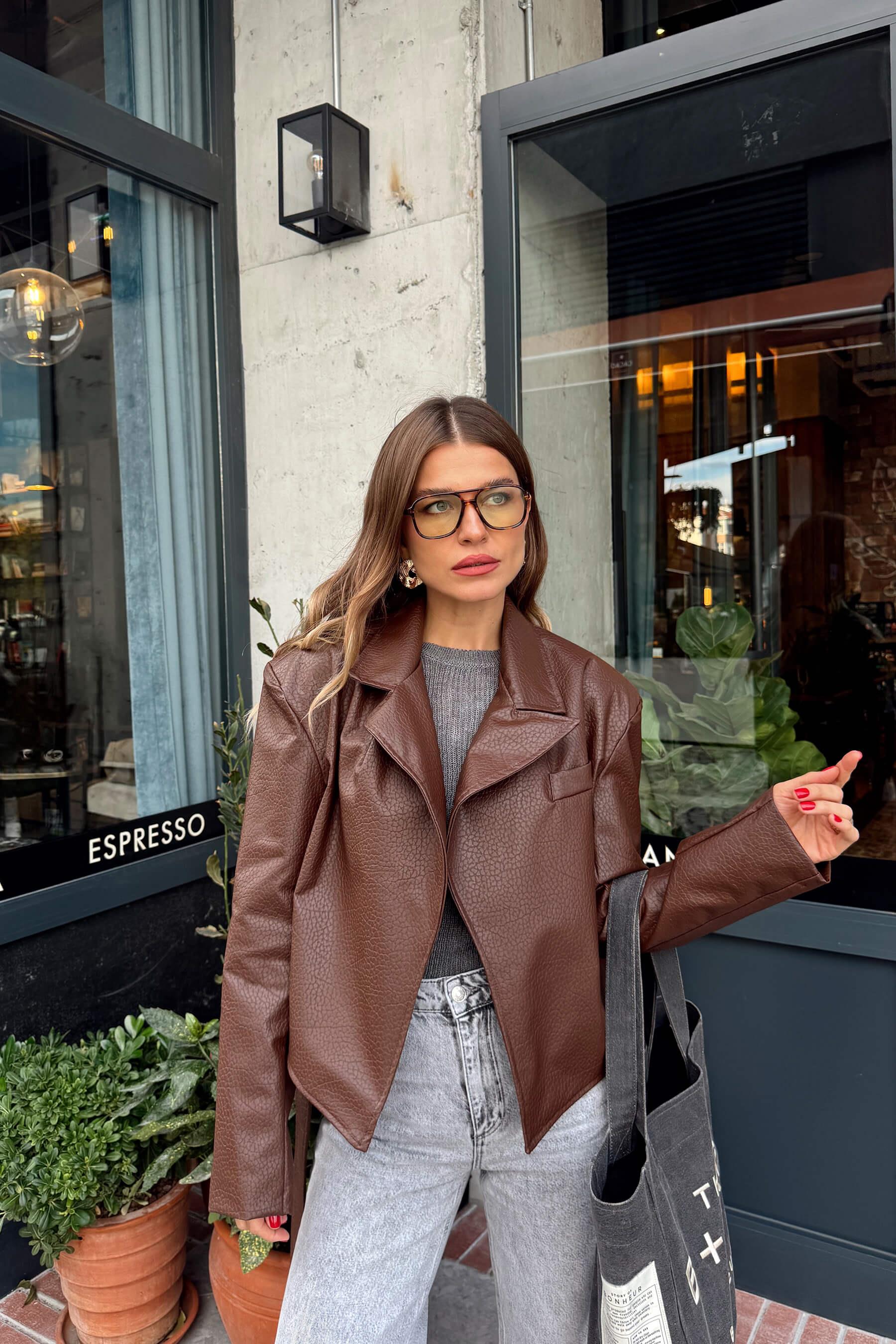 Kahverengi Vatkalı Astarlı Deri Ceket Model Ölçüleri: Boy: 166 cm, Kilo:54 kg Modelin Üzerindeki Beden: S/36 Ürünün Uzunluğu: 52 cm (1-2 cm arası değişiklik gösterebilir.) Kumaş Türü: Suni Deri Yıkama Talimatı : Ürünün iç kısmında bulunan etiketten yıkama talimatına ulaşabilirsiniz.