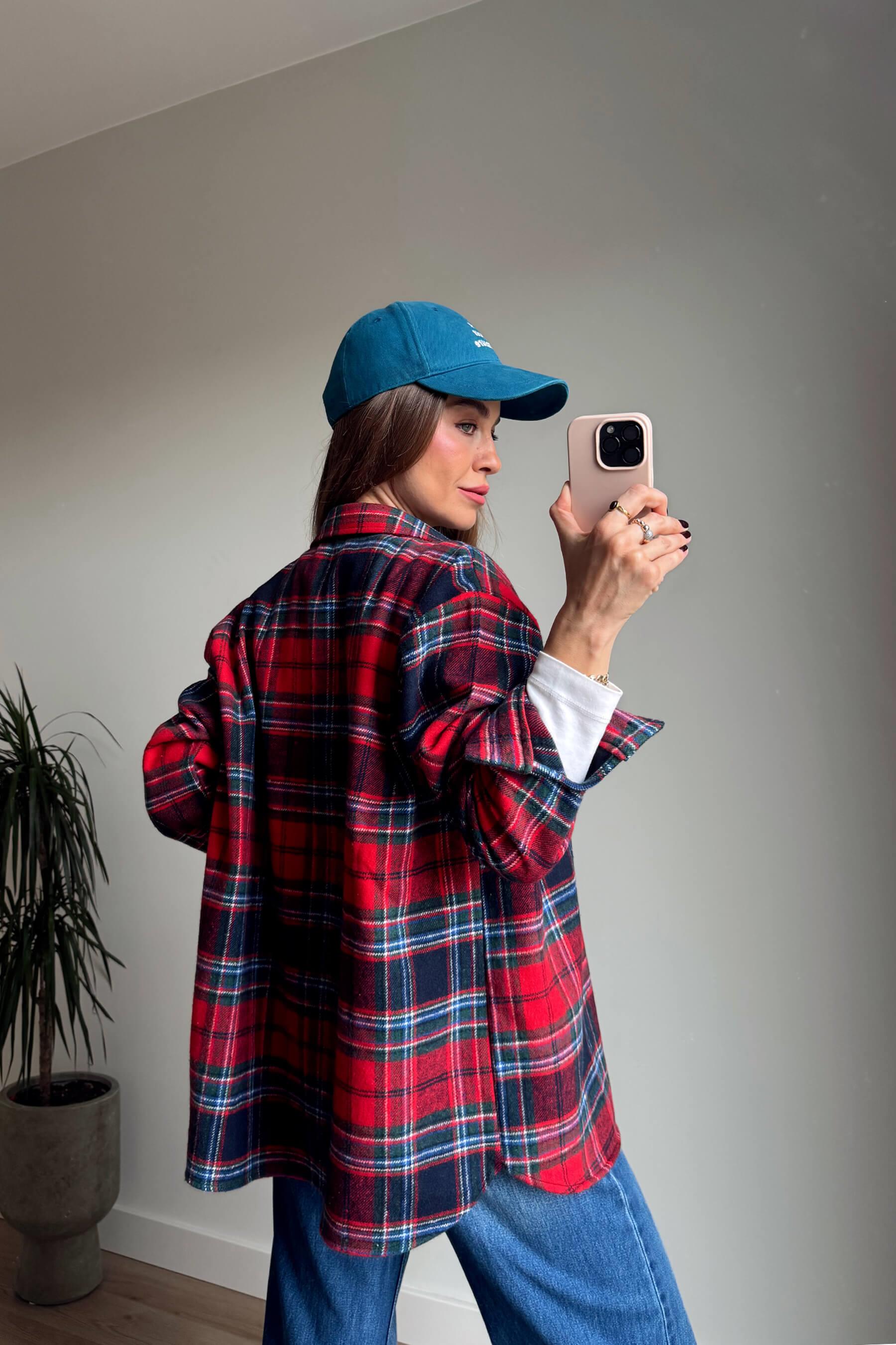 Kırmızı Lacivert Ekoseli Oversize Oduncu Gömlek Model Ölçüleri: Boy: 166 cm, Kilo:54 kg Modelin Üzerindeki Beden: Standart Ürünün Uzunluğu: 75 cm (1-2 cm arası değişiklik gösterebilir.) Kumaş Türü: %50Pamuk, %50 Polyester Yıkama Talimatı : Ürünün iç kısmında bulunan etiketten yıkama talimatına ulaşabilirsiniz.