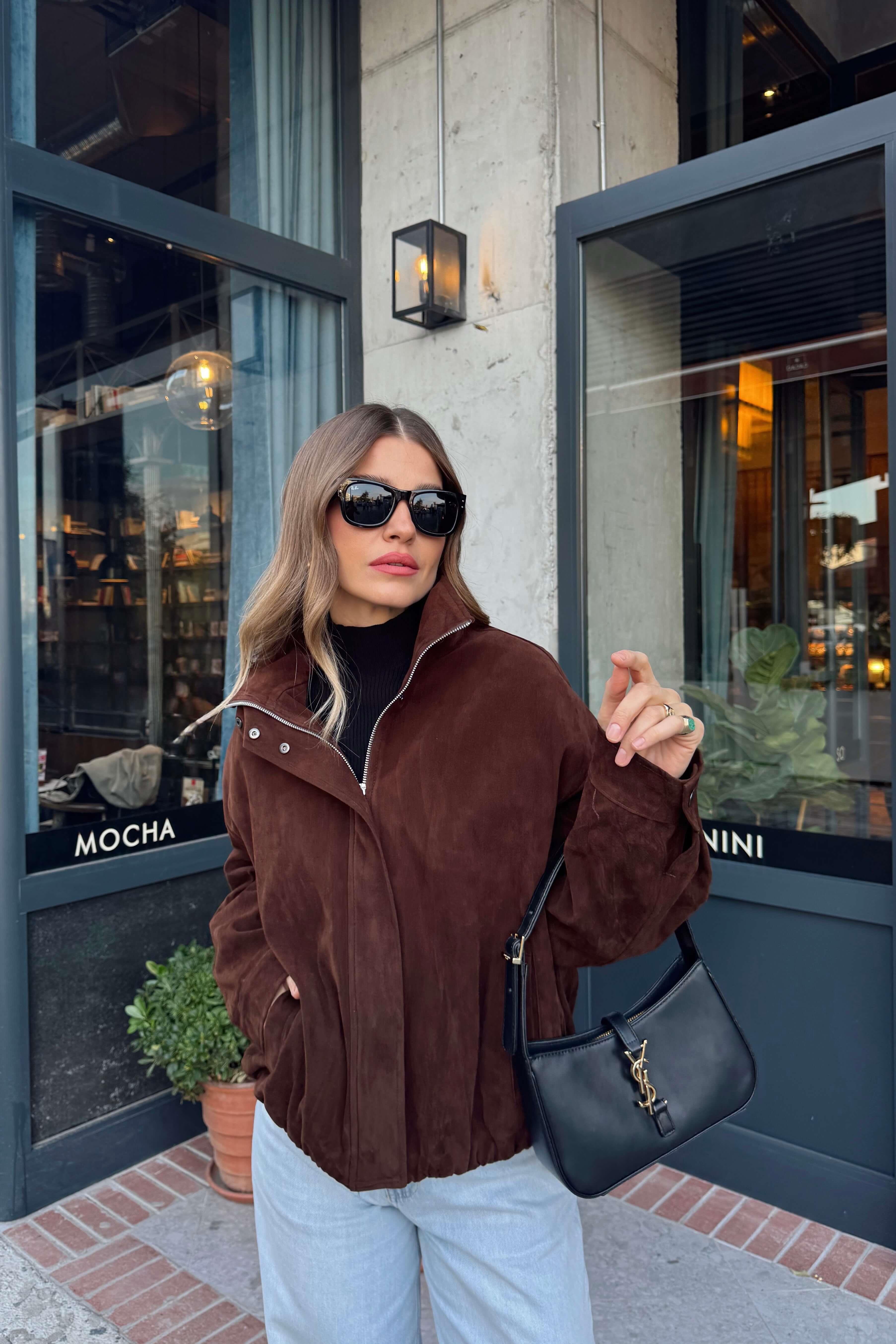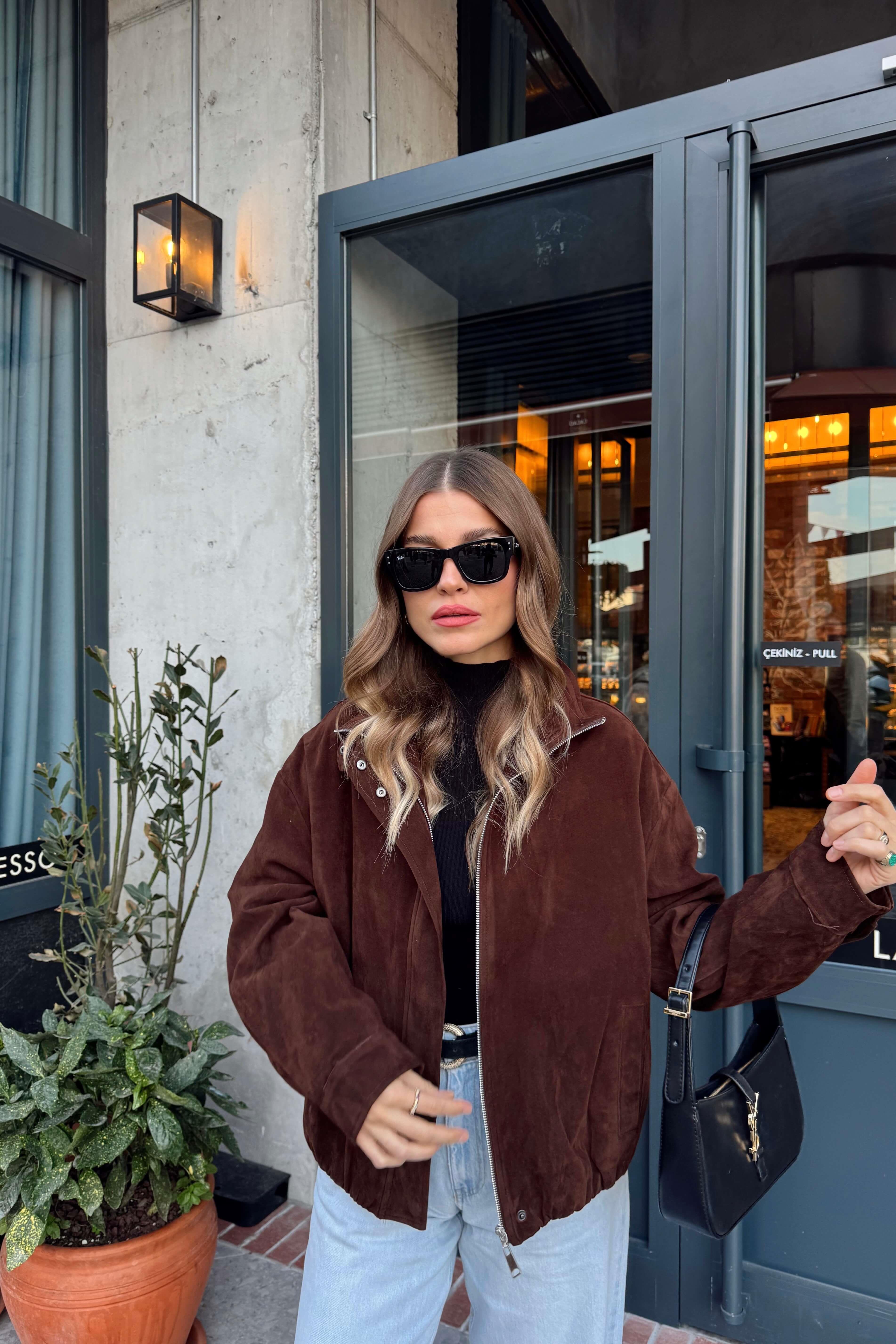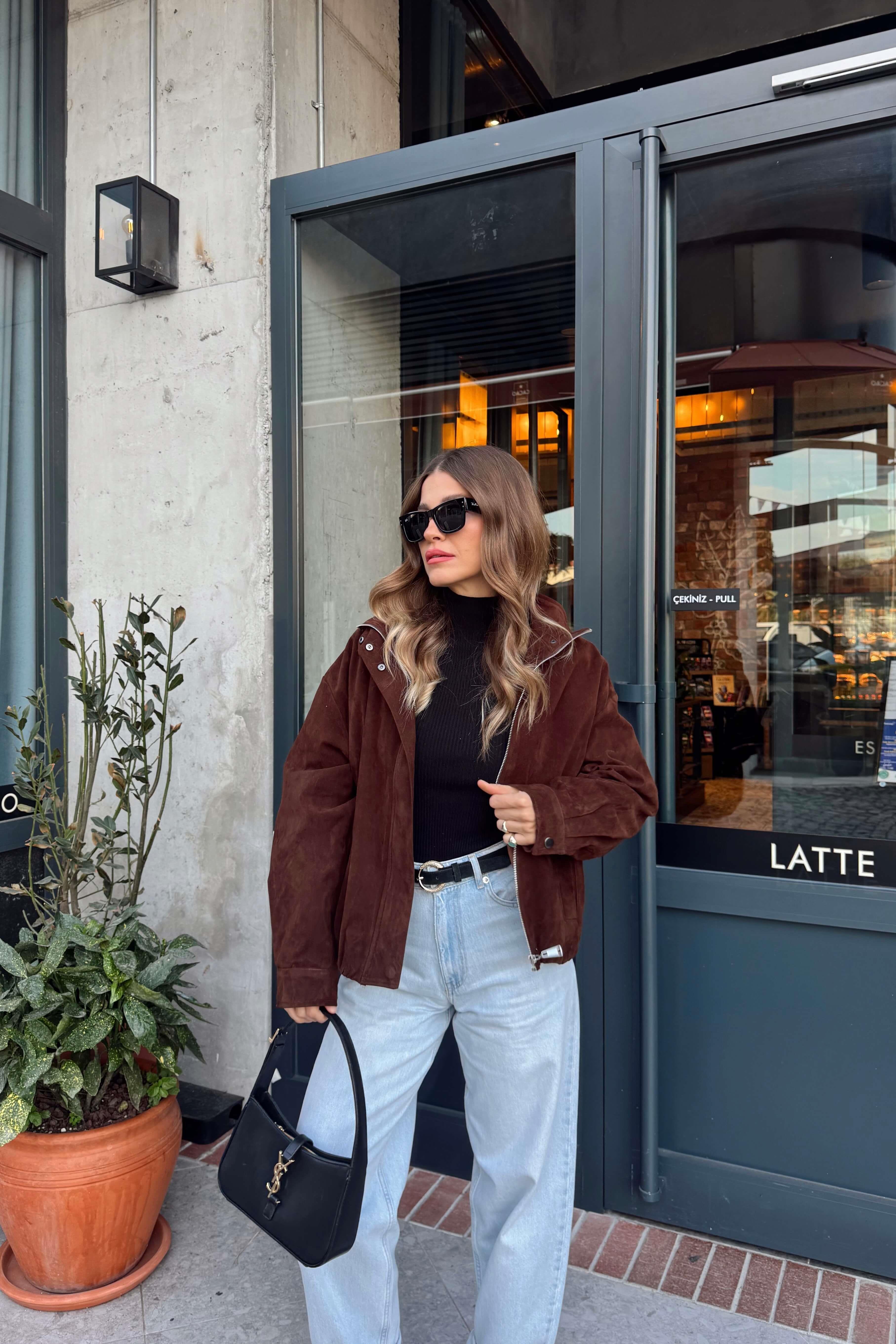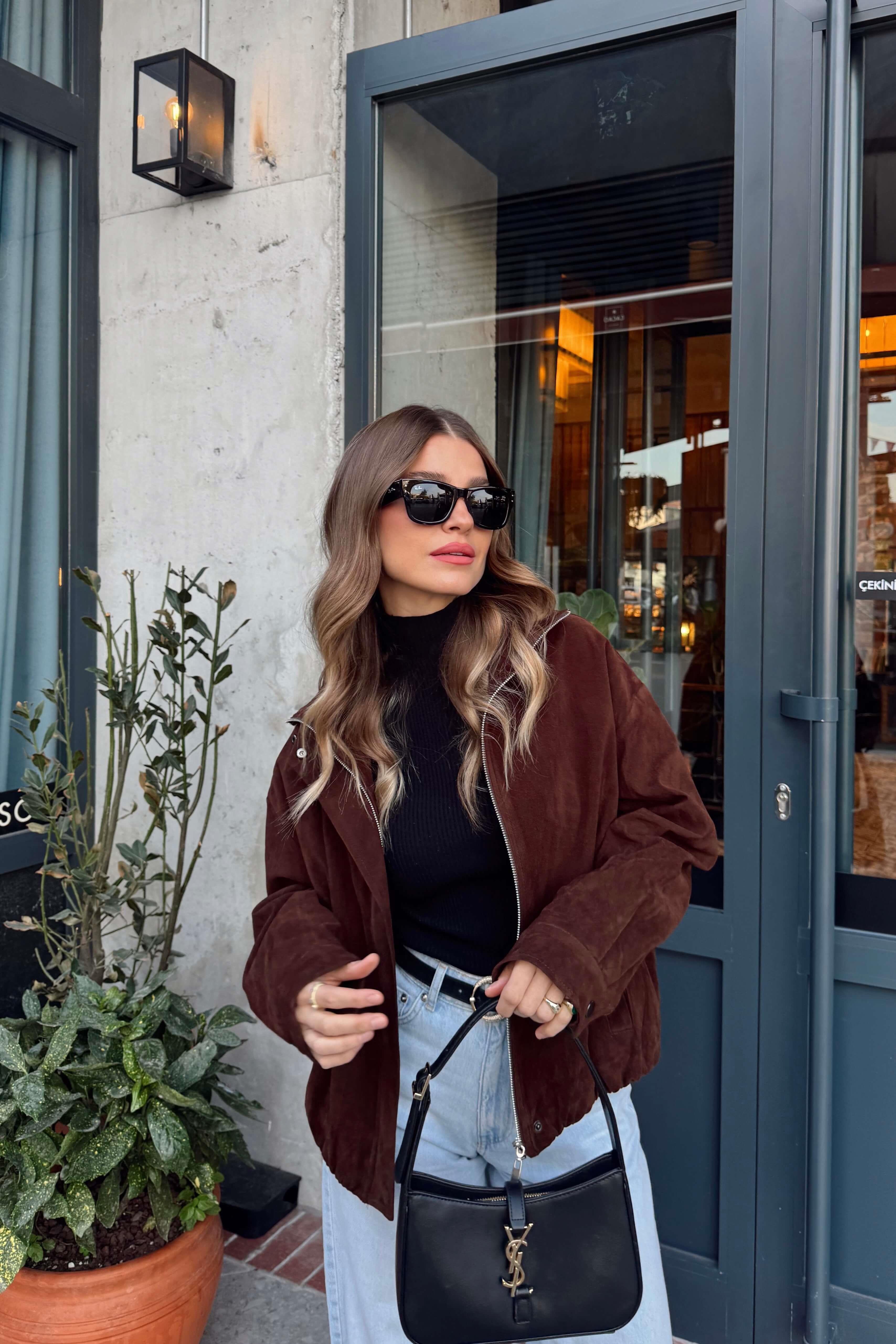 Koyu Kahverengi Beli Lastikli Astarlı Dik Yaka Süet Ceket Model Ölçüleri: Boy: 166 cm, Kilo:54 kg Modelin Üzerindeki Beden: S/36 Ürünün Uzunluğu: 60 cm (1-2 cm arası değişiklik gösterebilir.) Kumaş Türü: Polyester Yıkama Talimatı : Ürünün iç kısmında bulunan etiketten yıkama talimatına ulaşabilirsiniz.