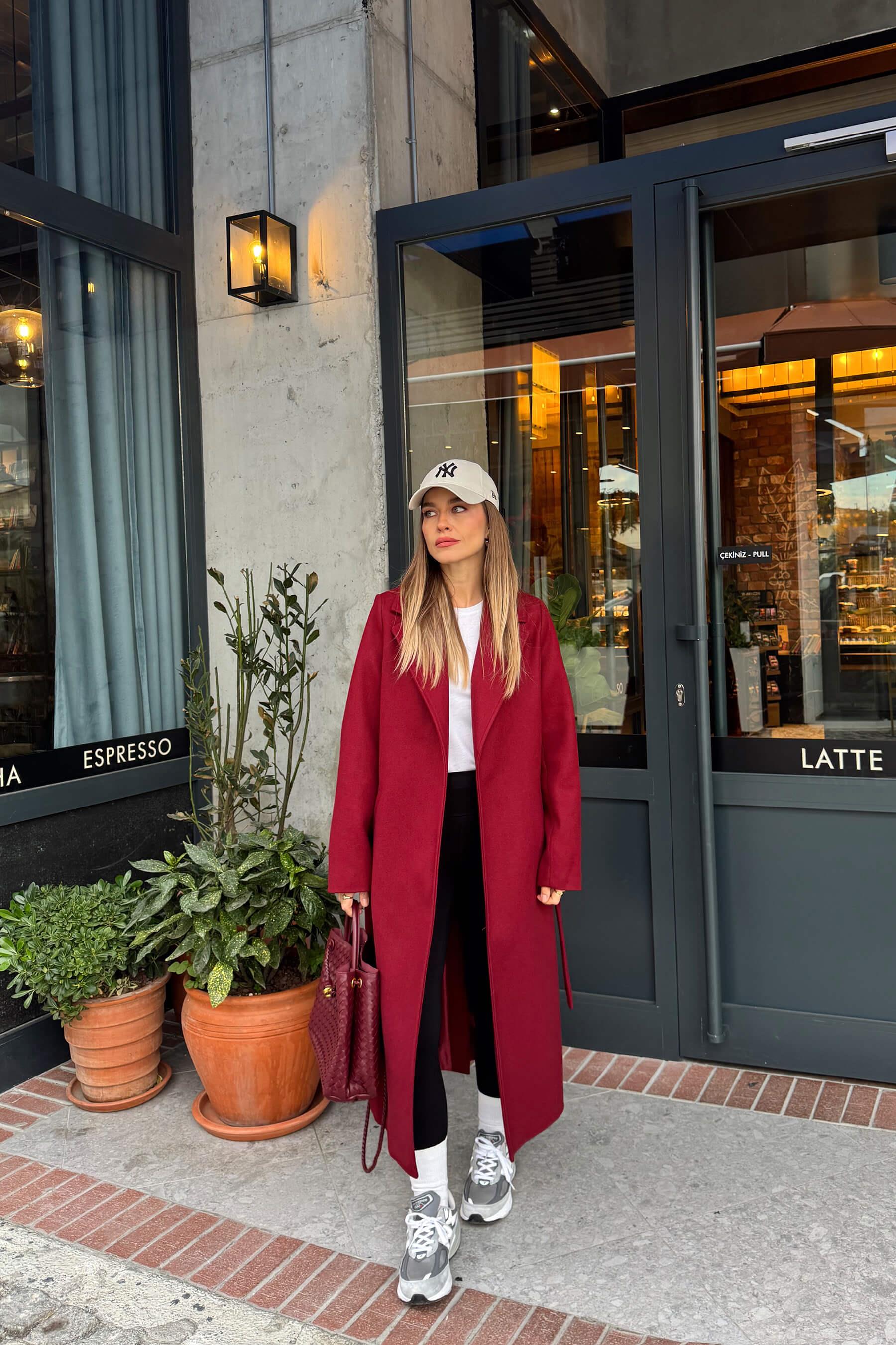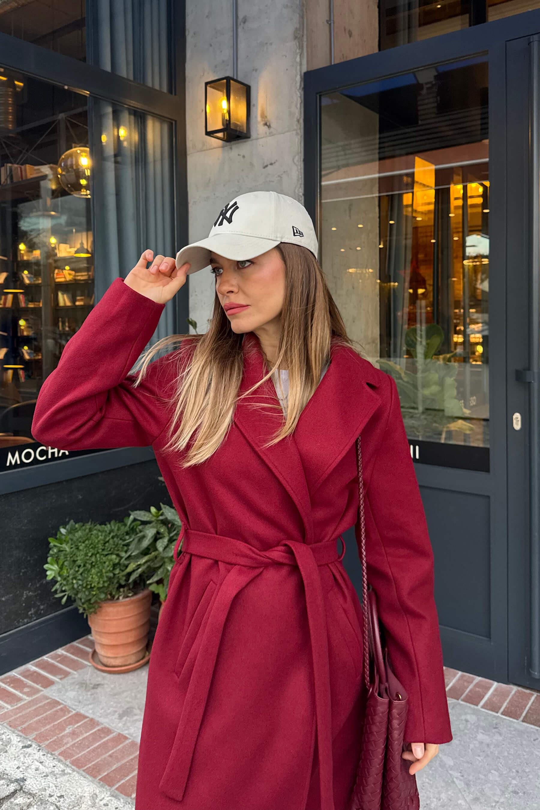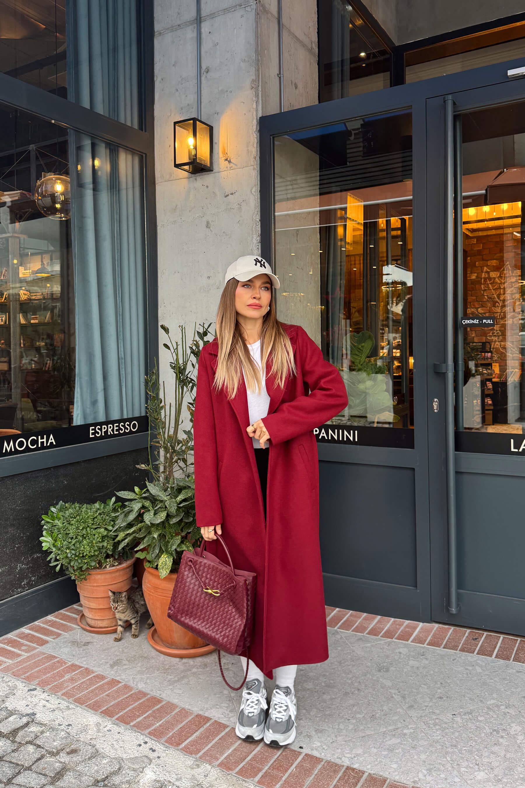 Koyu Kırmızı Astarlı Kaşe Kaban Model Ölçüleri: Boy: 166 cm, Kilo:54 kg Modelin Üzerindeki Beden: S/36 Ürünün Uzunluğu: 120 cm (1-2 cm arası değişiklik gösterebilir.) Kumaş Türü: %95 Polyester, %5 Likra Yıkama Talimatı : Ürünün iç kısmında bulunan etiketten yıkama talimatına ulaşabilirsiniz.