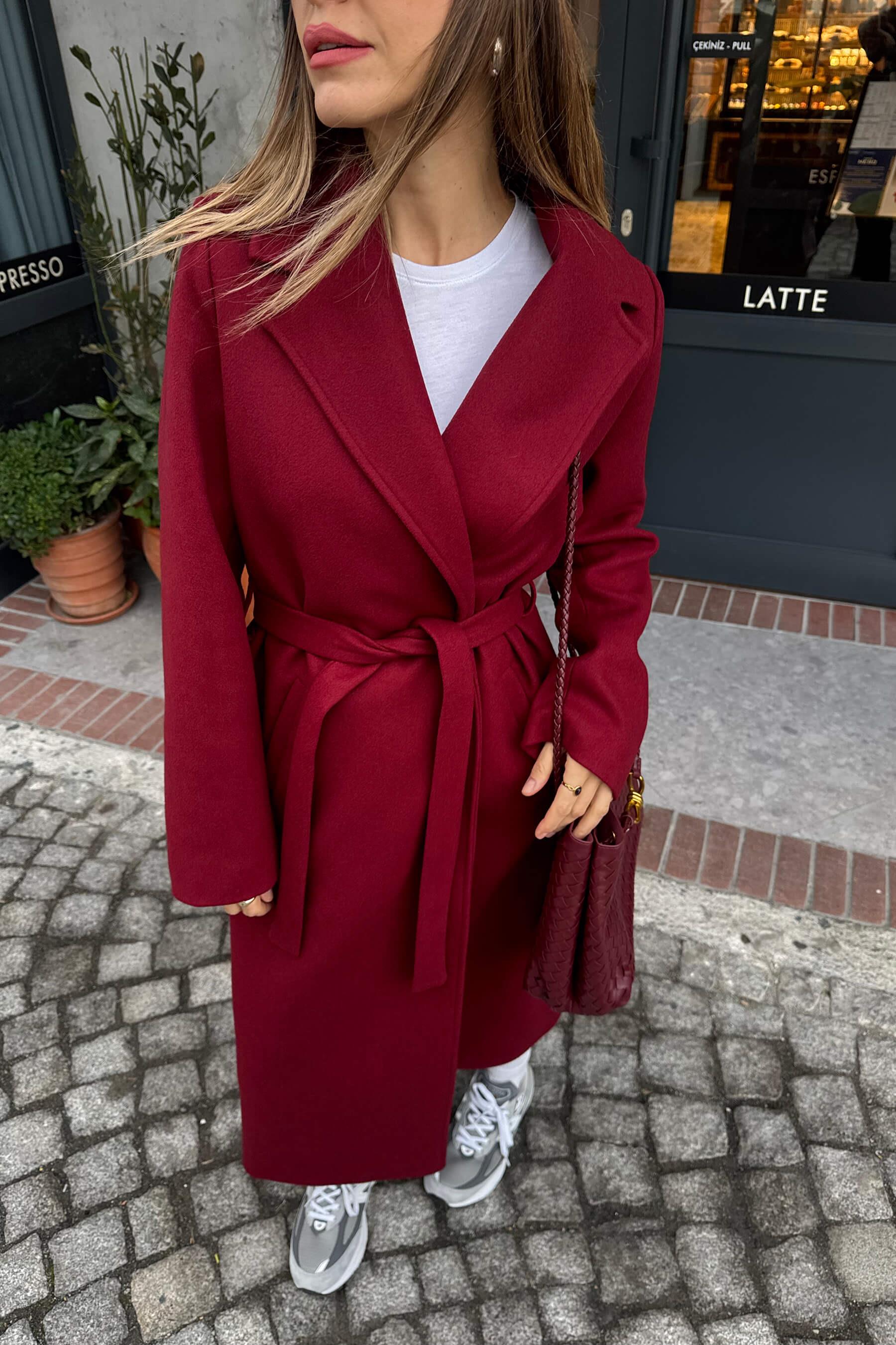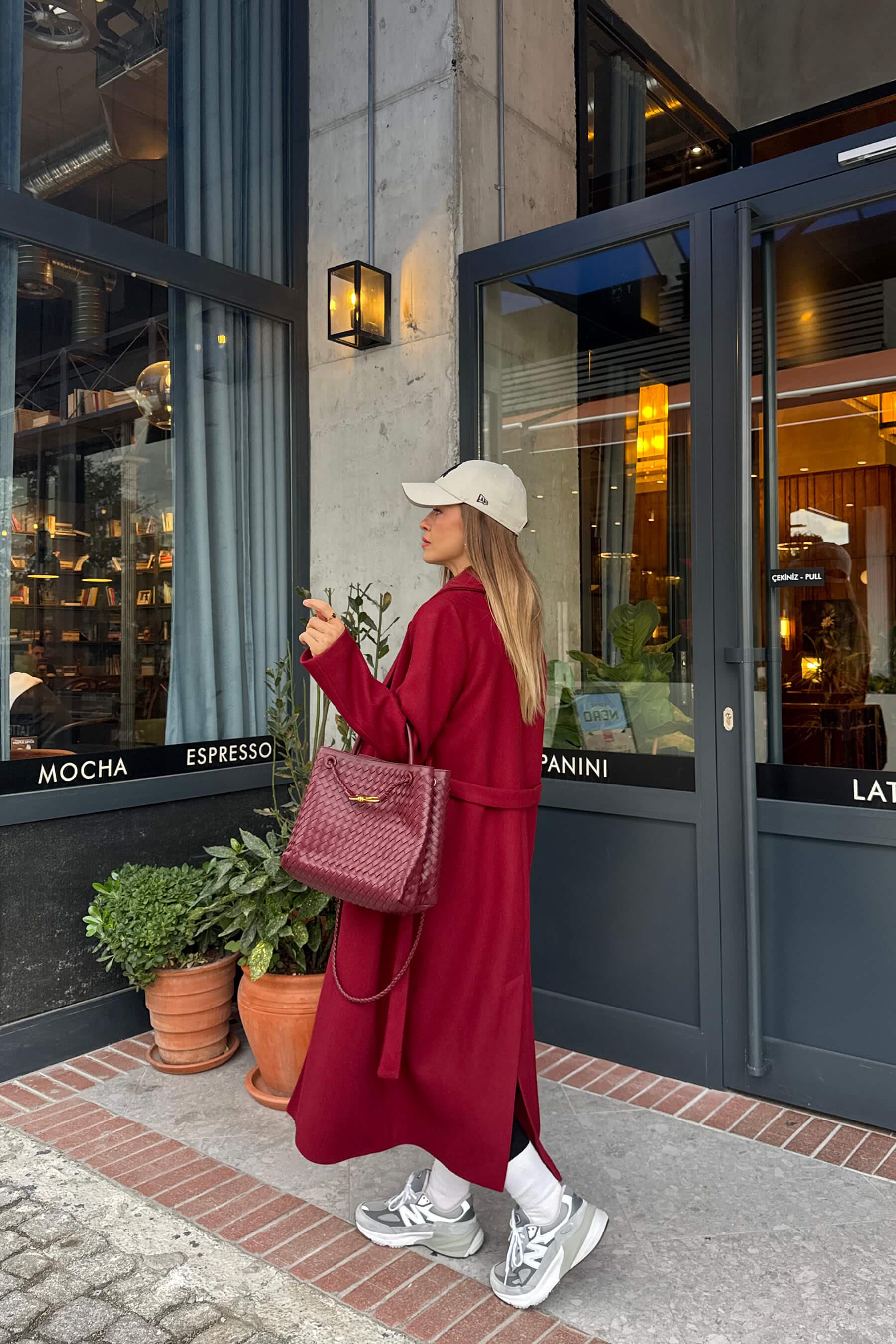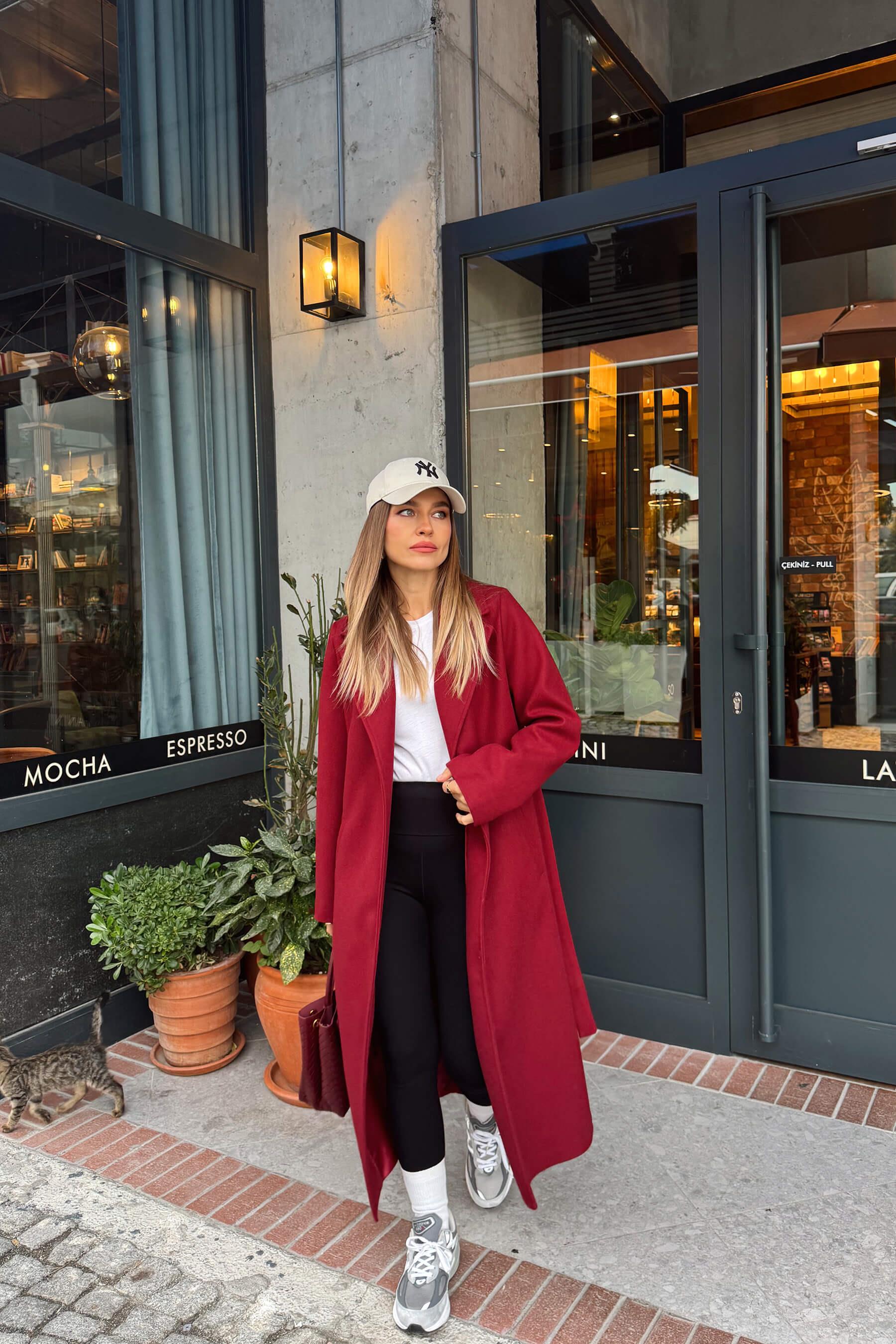 Koyu Kırmızı Astarlı Kaşe Kaban Model Ölçüleri: Boy: 166 cm, Kilo:54 kg Modelin Üzerindeki Beden: S/36 Ürünün Uzunluğu: 120 cm (1-2 cm arası değişiklik gösterebilir.) Kumaş Türü: %95 Polyester, %5 Likra Yıkama Talimatı : Ürünün iç kısmında bulunan etiketten yıkama talimatına ulaşabilirsiniz.