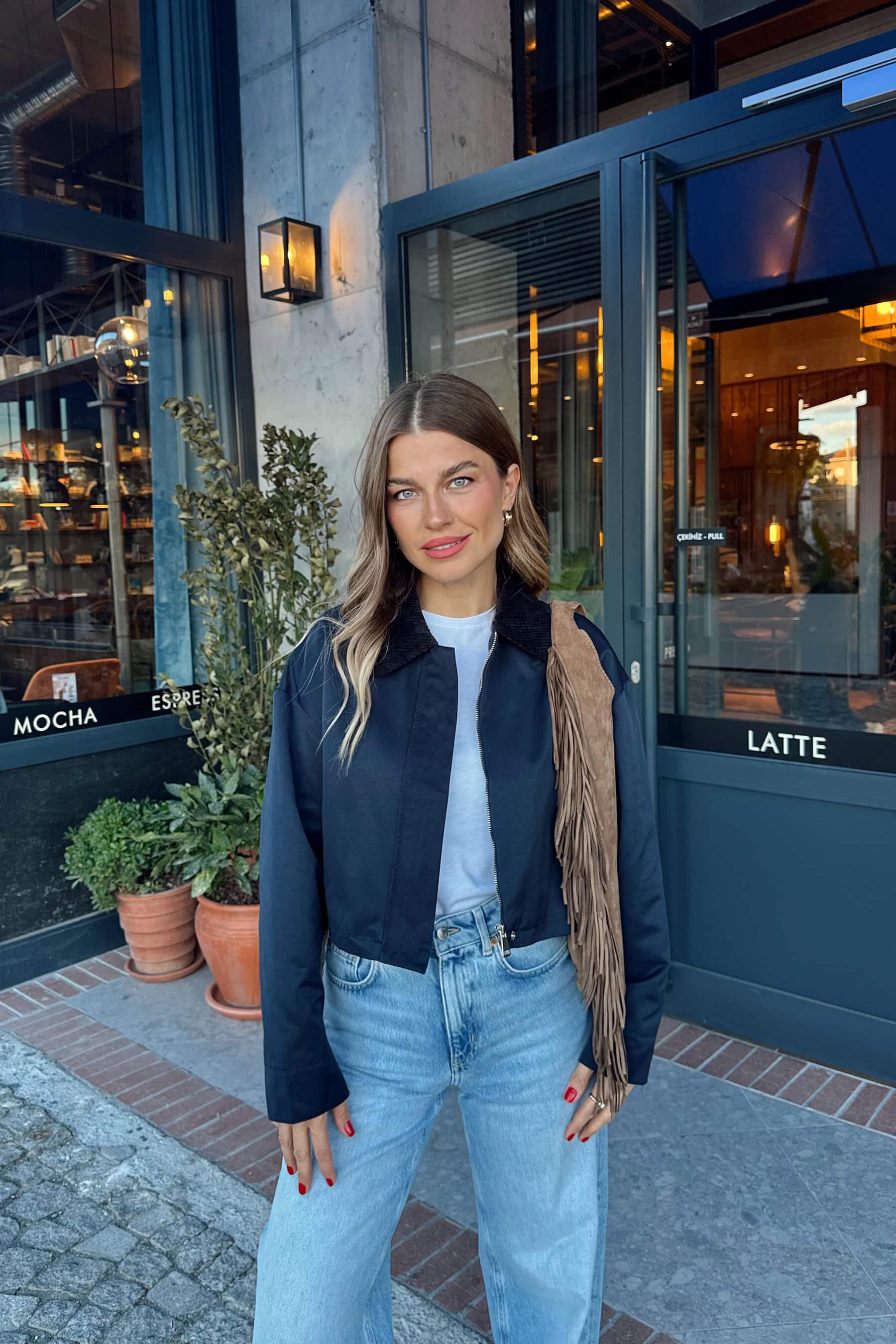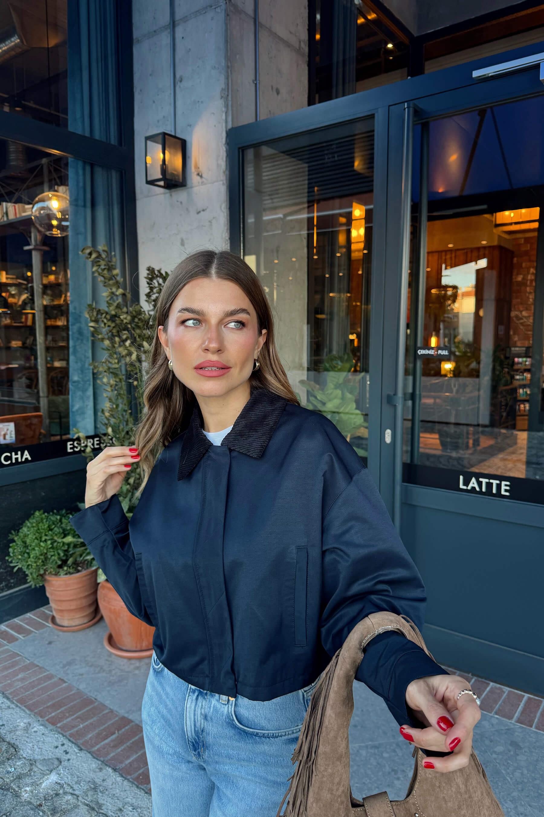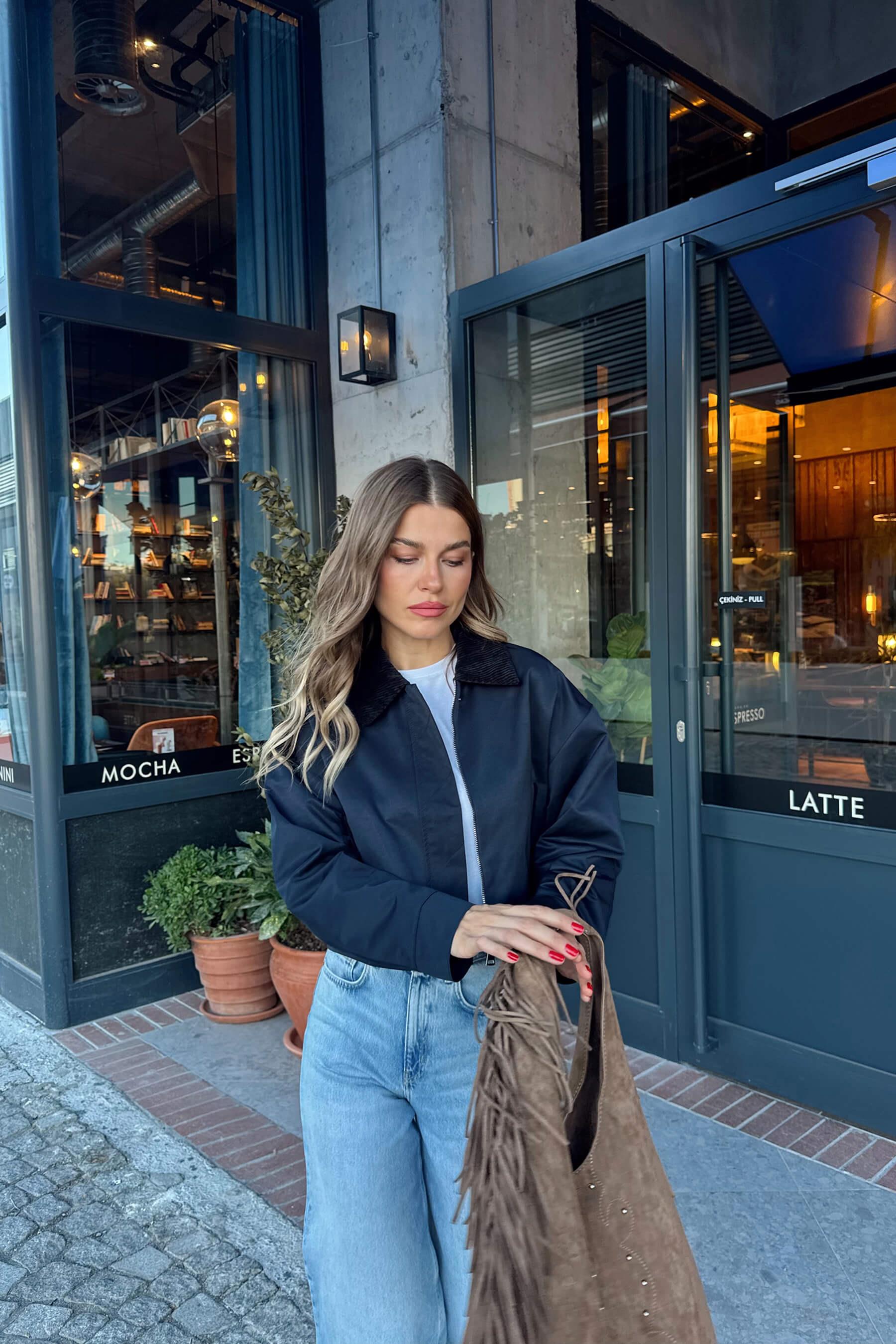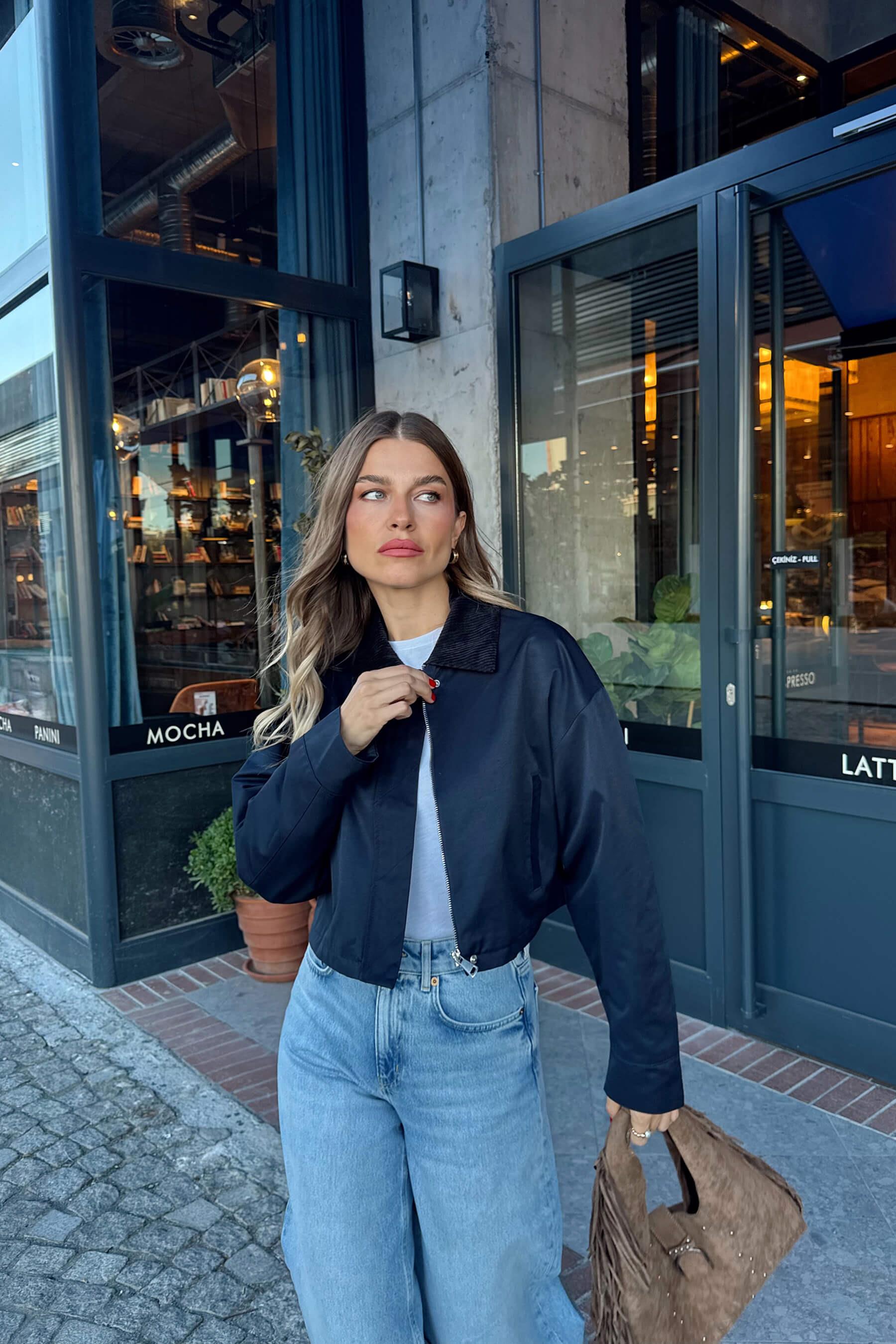 Lacivert Kadife Yakalı Fermuarlı Astarlı Ceket Model Ölçüleri: Boy: 166 cm, Kilo:54 kg Modelin Üzerindeki Beden: S/36 Ürünün Uzunluğu: 45 cm (1-2 cm arası değişiklik gösterebilir.) Kumaş Türü: %100 Pamuk Yıkama Talimatı : Ürünün iç kısmında bulunan etiketten yıkama talimatına ulaşabilirsiniz.