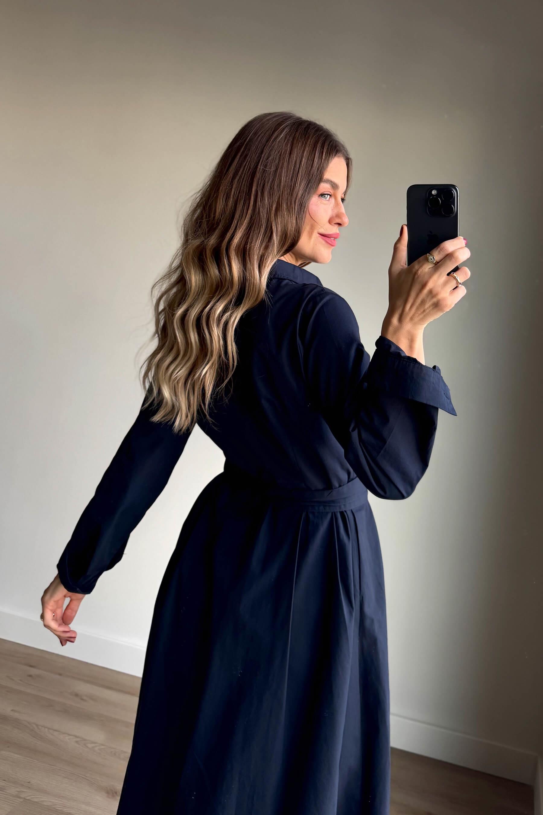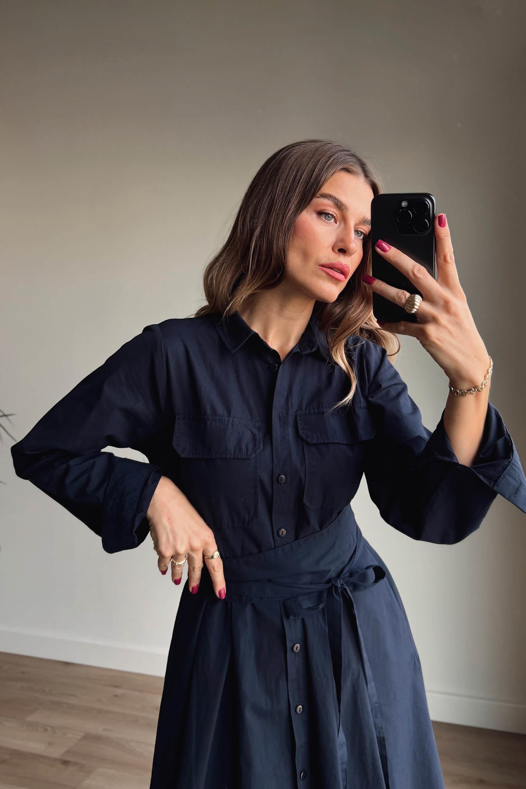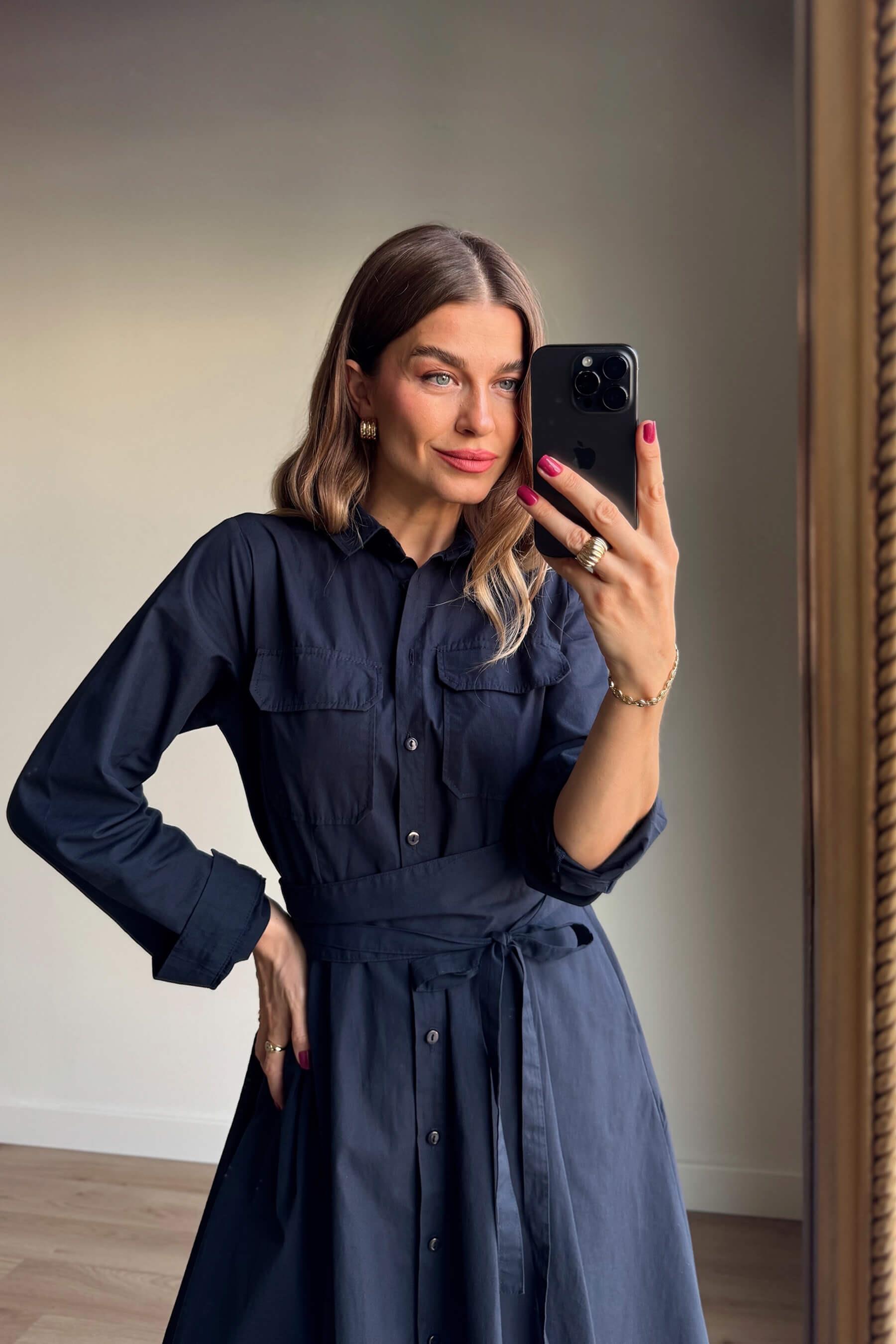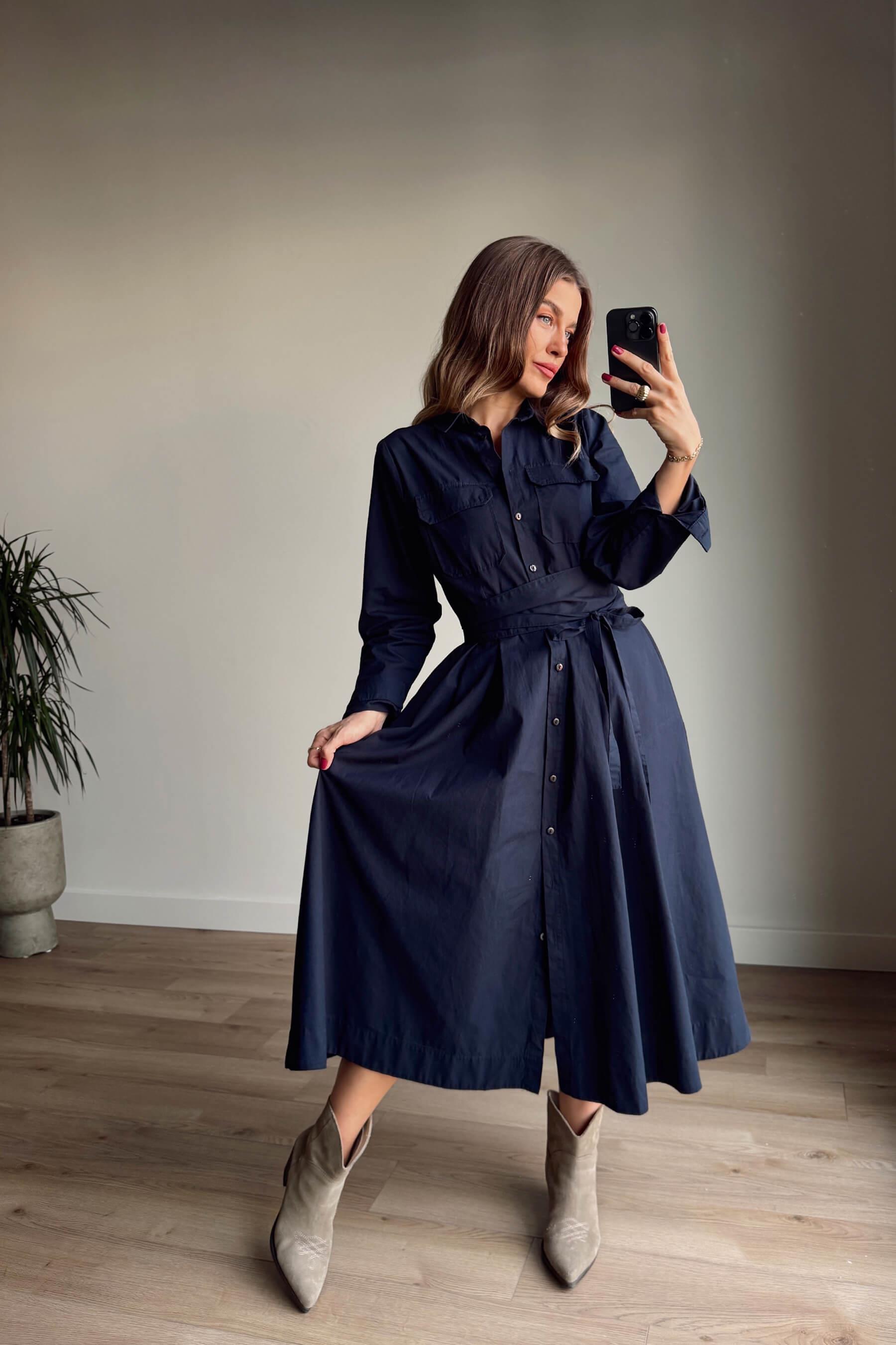 Lacivert Korseli Cep Detaylı Maxi Gömlek Elbise Model Ölçüleri: Boy: 166 cm, Kilo:54 kg Modelin Üzerindeki Beden: S/36 Ürünün Uzunluğu: 120 cm (1-2 cm arası değişiklik gösterebilir.) Kumaş Türü: Pamuk Yıkama Talimatı : Ürünün iç kısmında bulunan etiketten yıkama talimatına ulaşabilirsiniz.