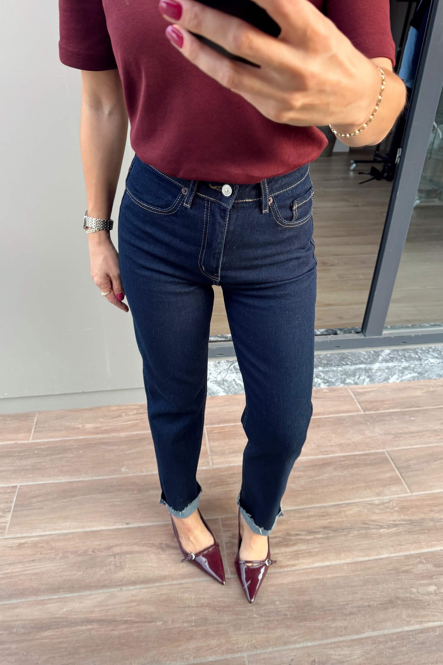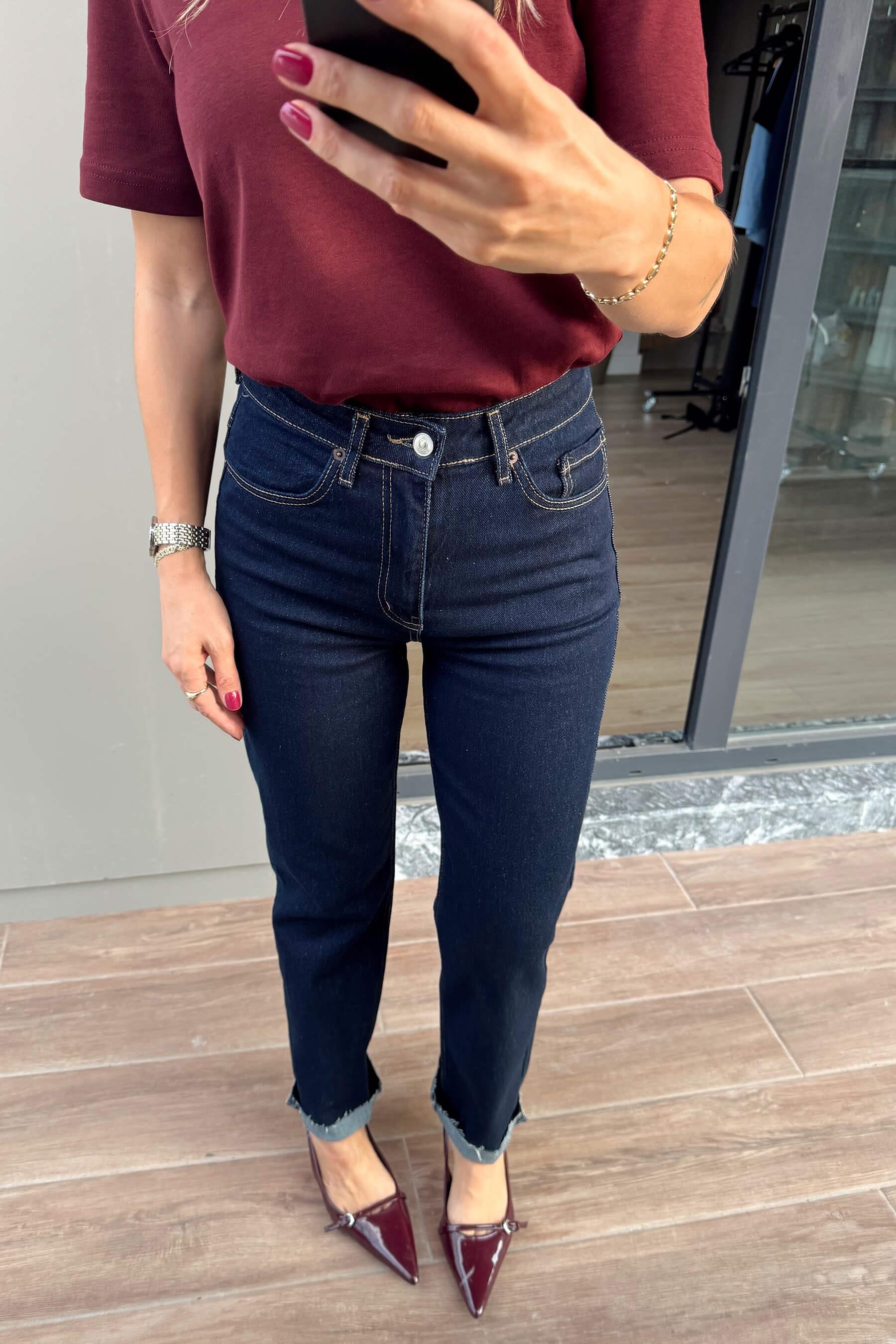 Lacivert Yüksek Bel Boyfit Kesik Paça Jean Model Ölçüleri: Boy: 166 cm, Kilo:54 kg Modelin Üzerindeki Beden: S/36 Ürünün Uzunluğu: 102 cm (1-2 cm arası değişiklik gösterebilir.) Kumaş Türü: %100 Pamuk Yıkama Talimatı : Ürünün iç kısmında bulunan aetiketten yıkama talimatına ulaşabilirsiniz.