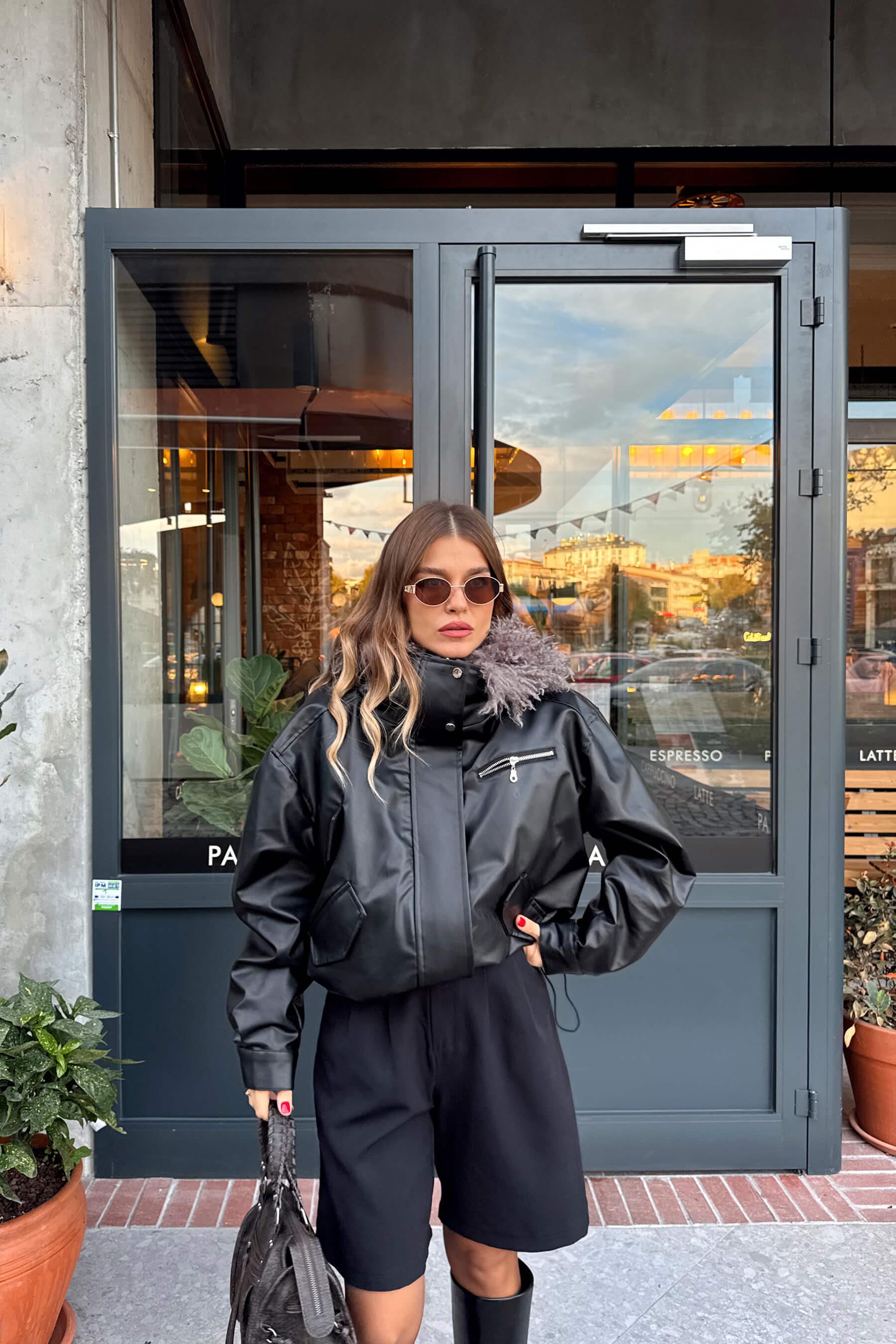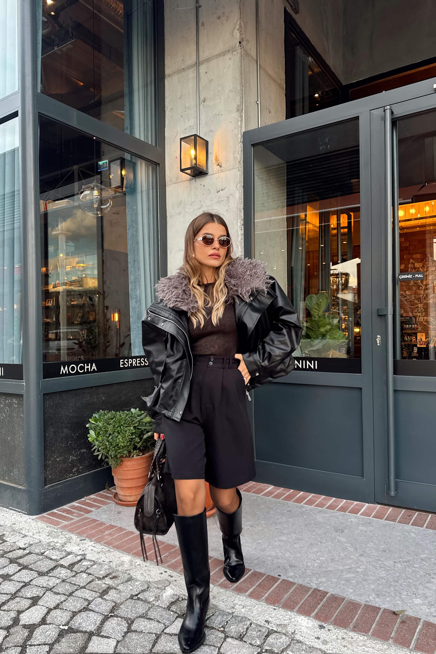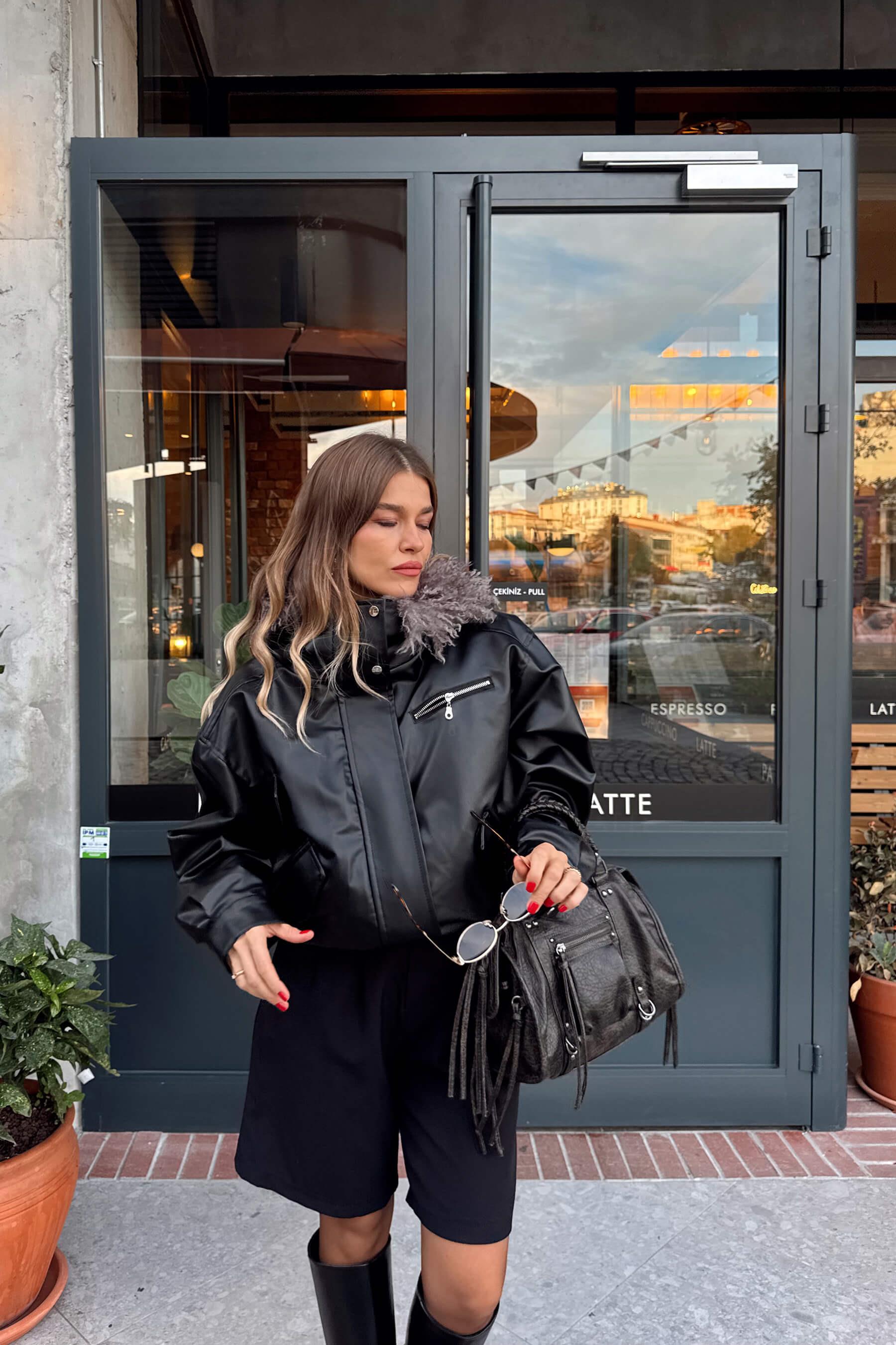 Siyah Çıkarılabilir Kürk Astarlı Bağcık Detaylı Deri Mont Model Ölçüleri: Boy: 166 cm, Kilo:54 kg Modelin Üzerindeki Beden: S/36 Ürünün Uzunluğu: 55 cm (1-2 cm arası değişiklik gösterebilir.) Kumaş Türü: Poliüretan Yıkama Talimatı : Ürünün iç kısmında bulunan etiketten yıkama talimatına ulaşabilirsiniz.