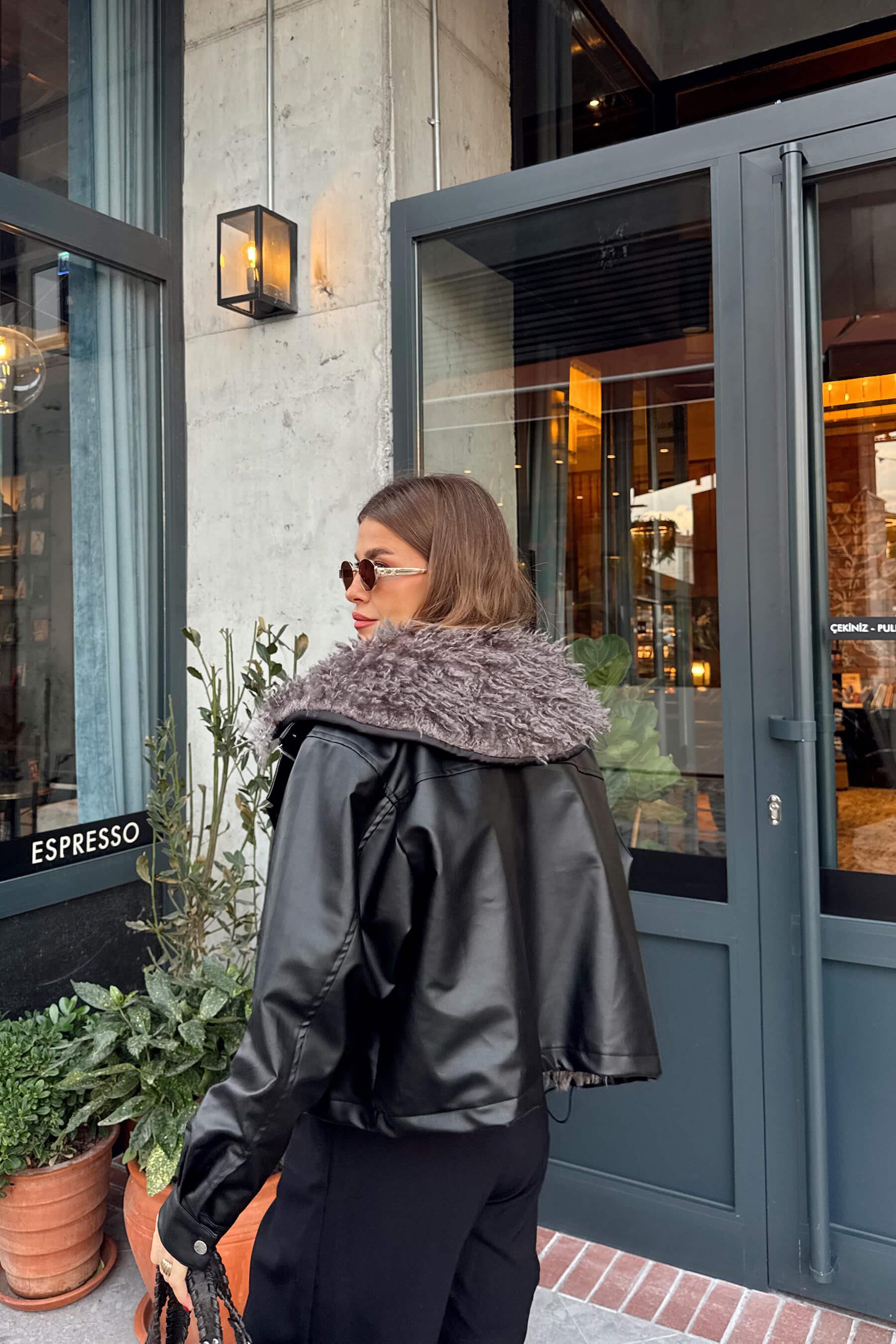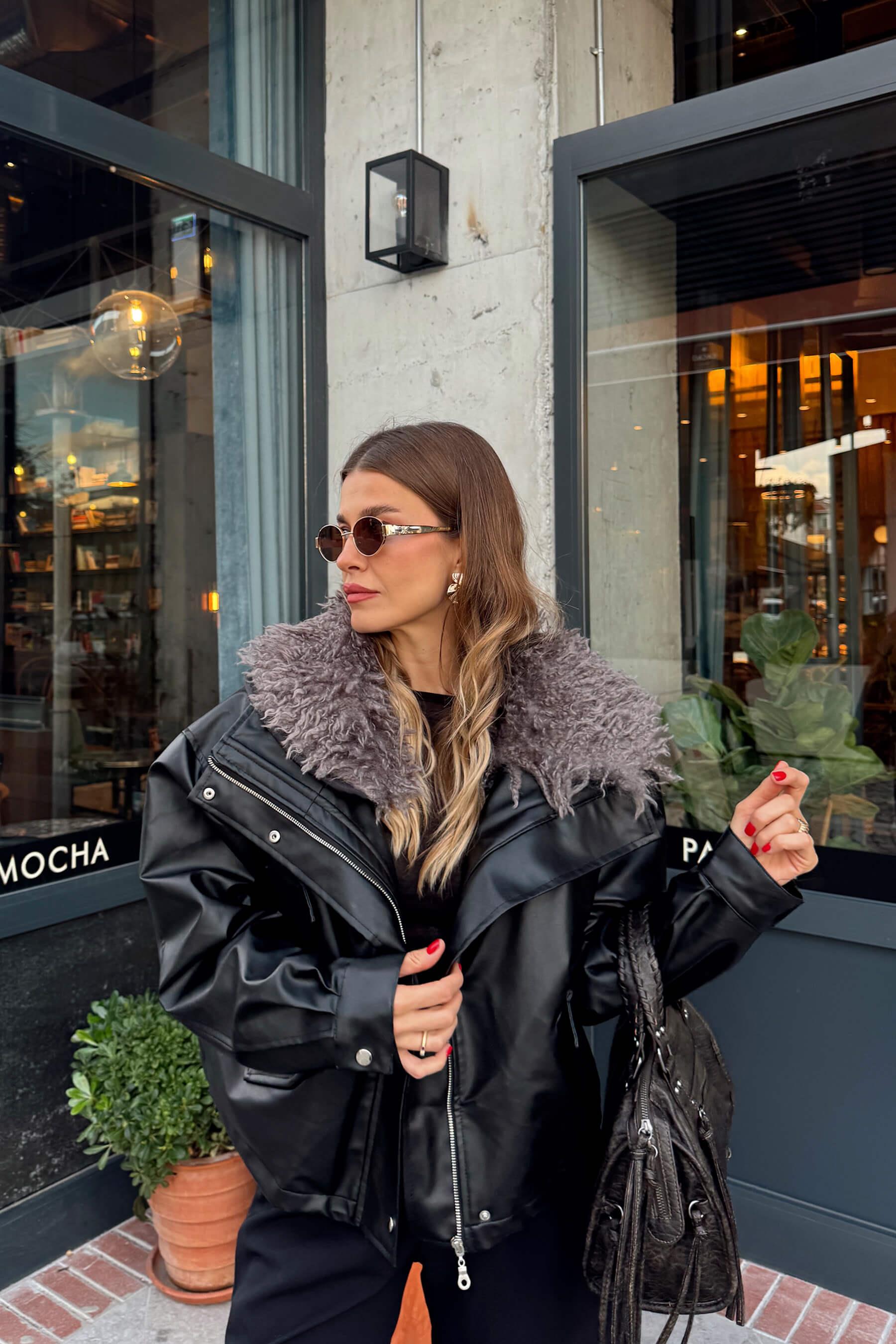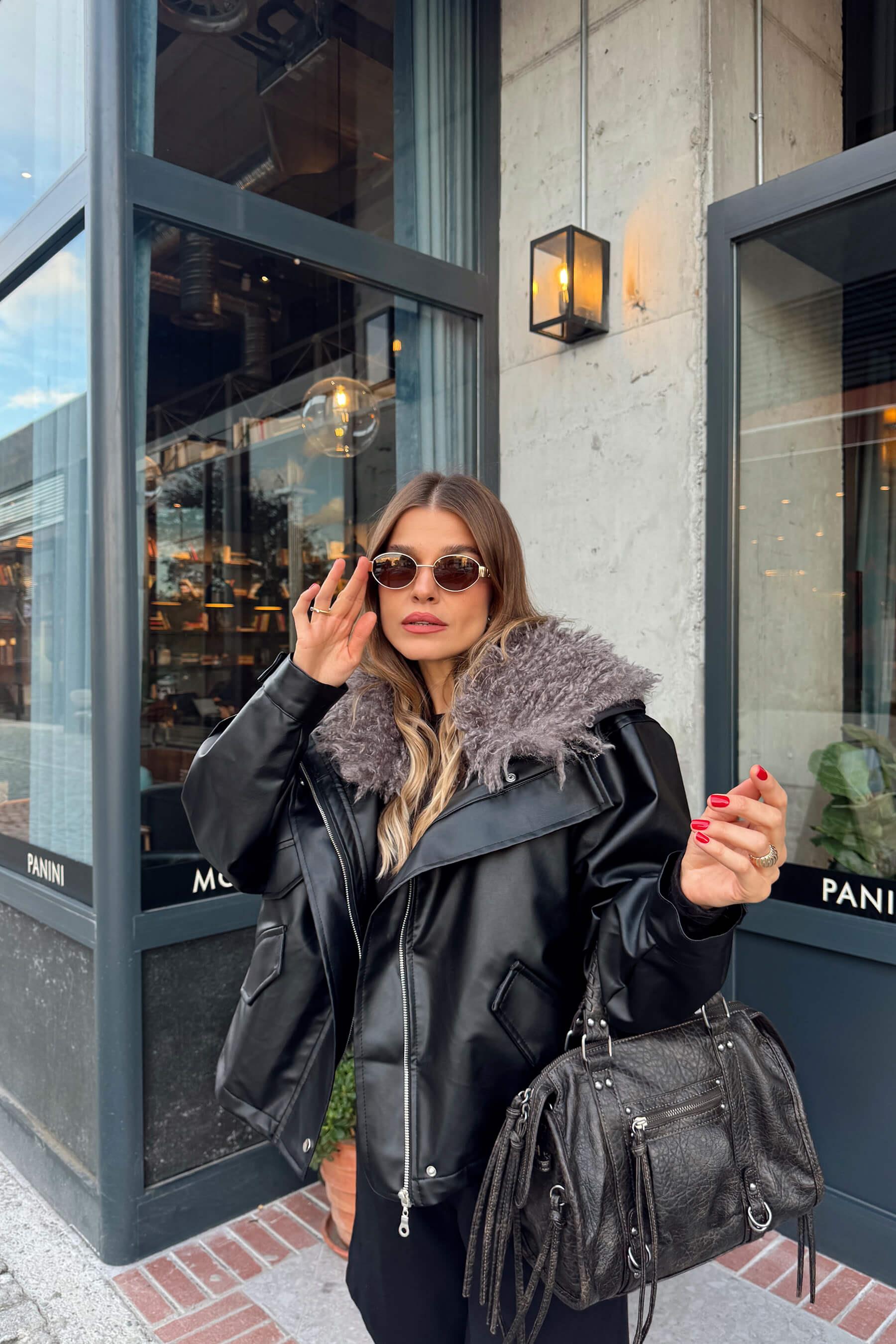Siyah Çıkarılabilir Kürk Astarlı Bağcık Detaylı Deri Mont Model Ölçüleri: Boy: 166 cm, Kilo:54 kg Modelin Üzerindeki Beden: S/36 Ürünün Uzunluğu: 55 cm (1-2 cm arası değişiklik gösterebilir.) Kumaş Türü: Poliüretan Yıkama Talimatı : Ürünün iç kısmında bulunan etiketten yıkama talimatına ulaşabilirsiniz.