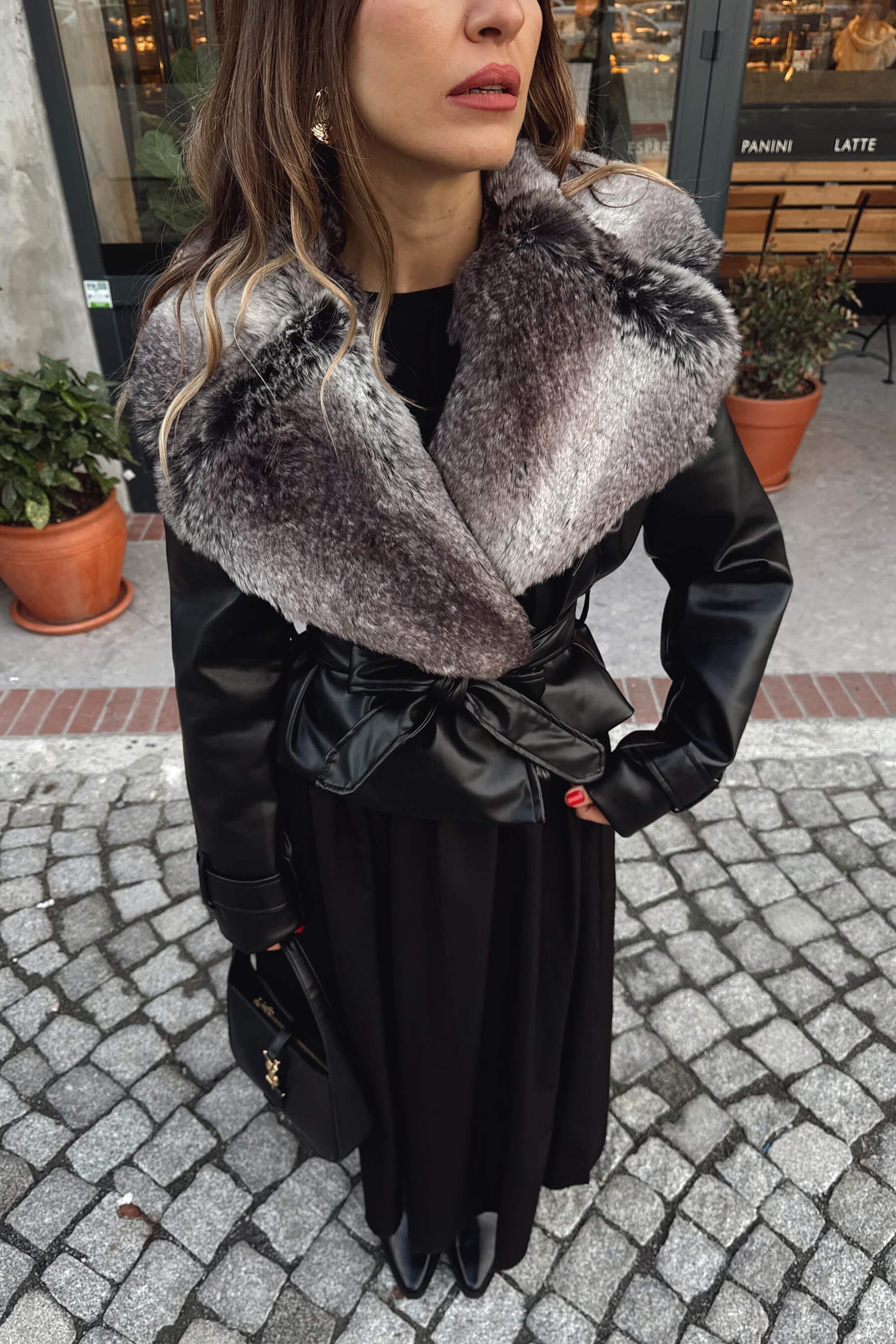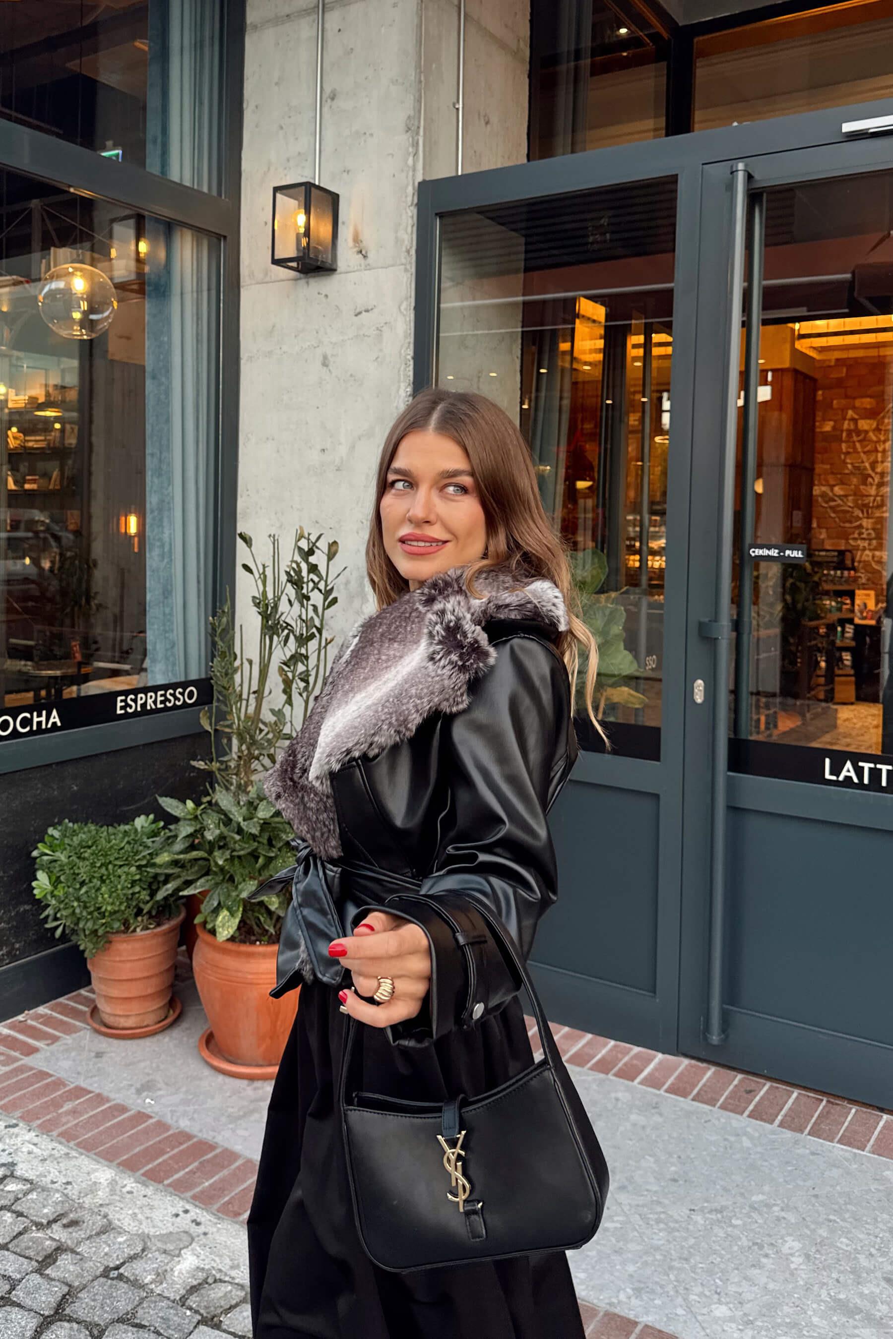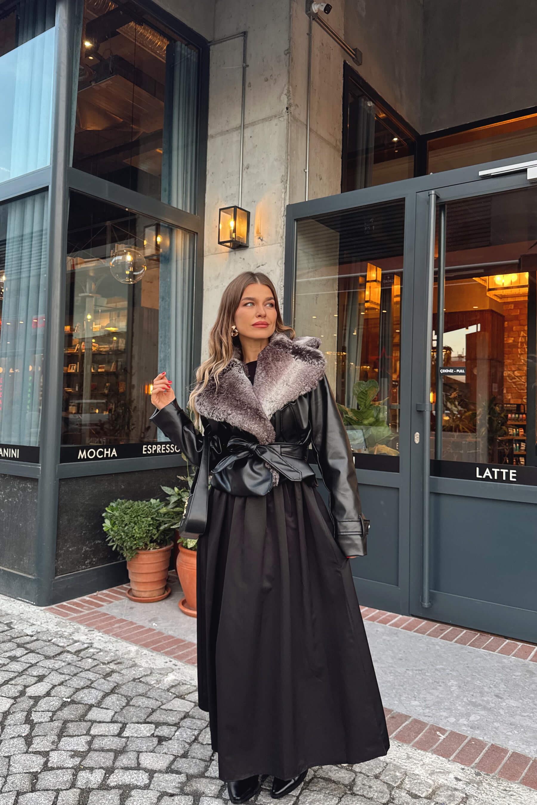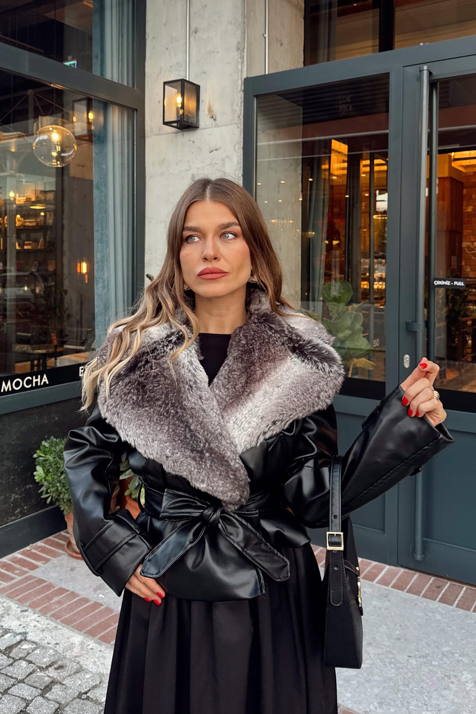 Siyah Degrade Kürk Yakalı Kemerli Deri Ceket Model Ölçüleri: Boy: 166 cm, Kilo:54 kg Modelin Üzerindeki Beden: S/36 Ürünün Uzunluğu: 58 cm (1-2 cm arası değişiklik gösterebilir.) Kumaş Türü: Poliüretan Yıkama Talimatı : Ürünün iç kısmında bulunan etiketten yıkama talimatına ulaşabilirsiniz.