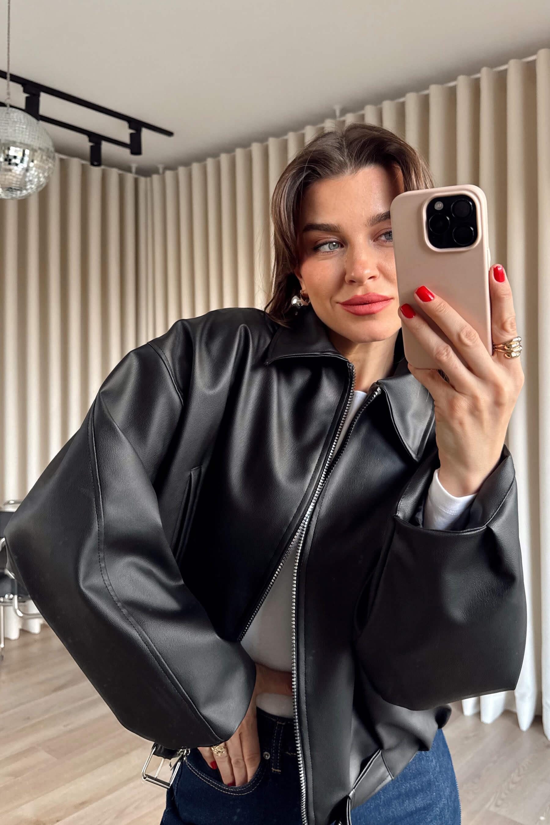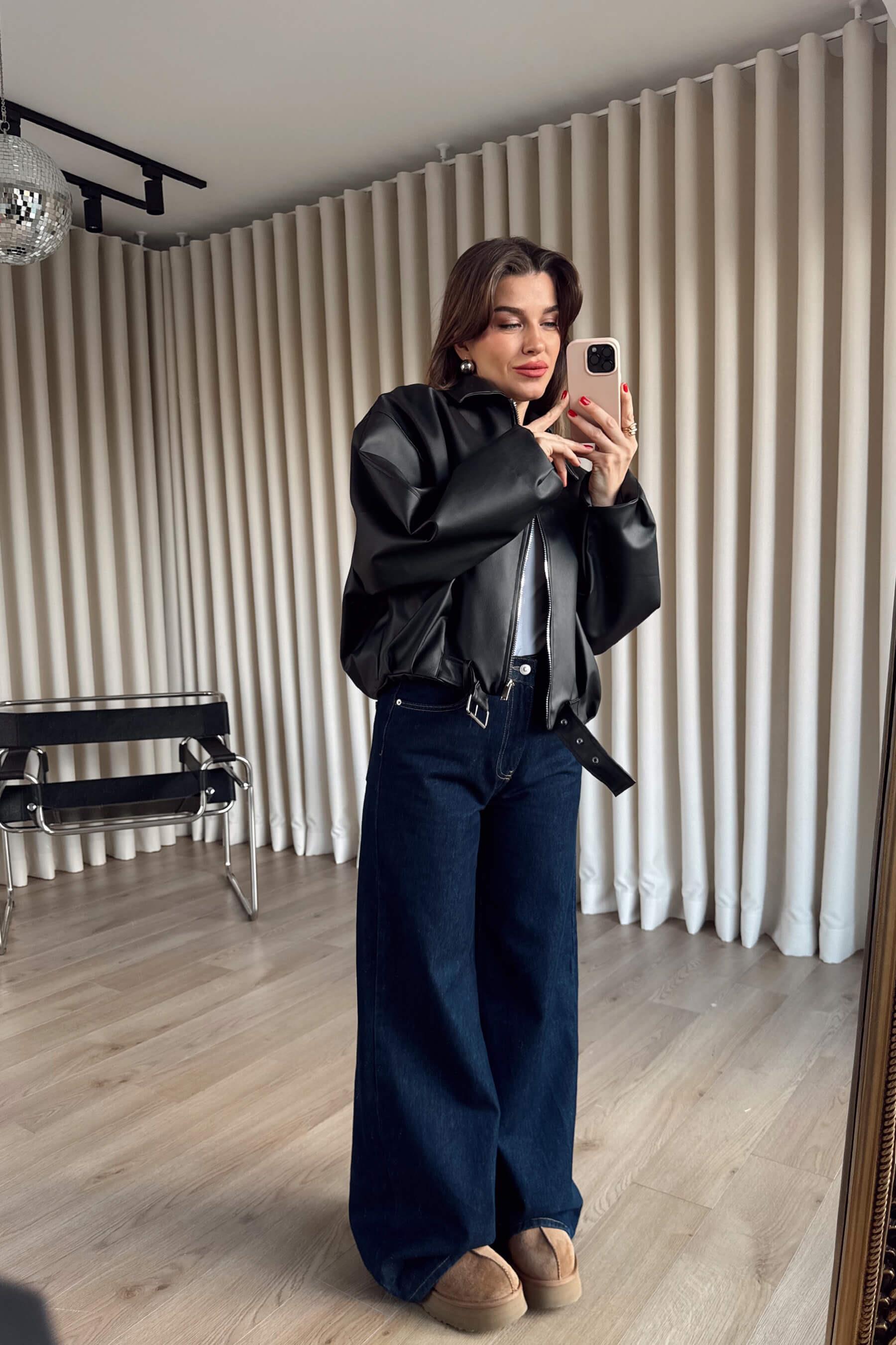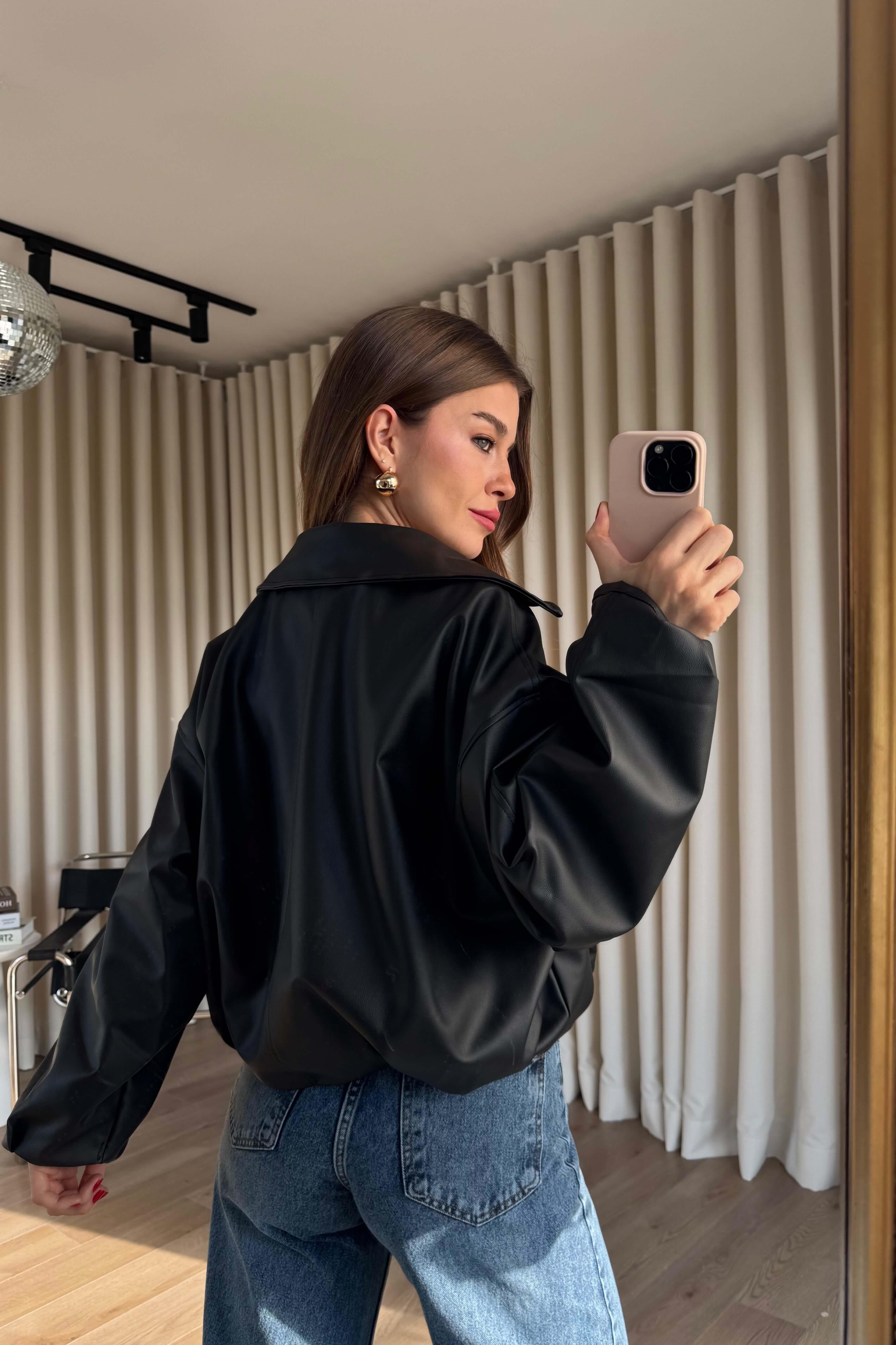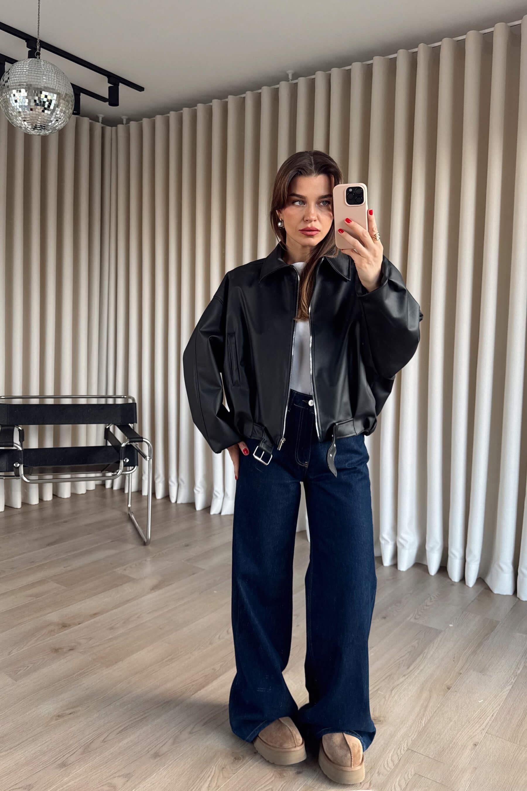 Siyah Kemer Detaylı Astarlı Oversize Bomber Deri Ceket Model Ölçüleri: Boy: 166 cm, Kilo:54 kg Modelin Üzerindeki Beden: S/36 Ürünün Uzunluğu: 55 cm (1-2 cm arası değişiklik gösterebilir.) Kumaş Türü: Suni Deri Yıkama Talimatı : Ürünün iç kısmında bulunan etiketten yıkama talimatına ulaşabilirsiniz.