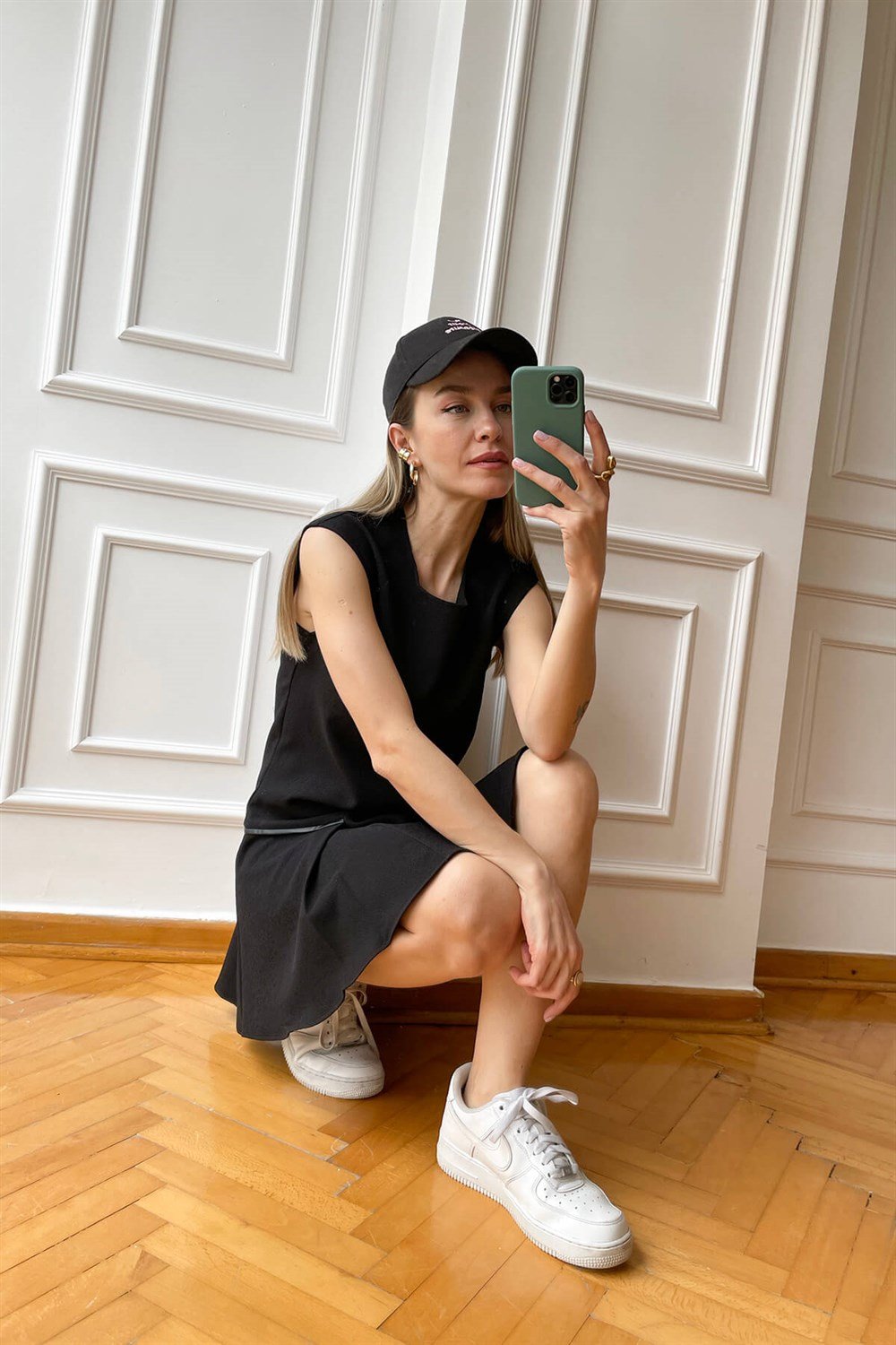 Siyah Kolsuz Pileli Elbise Model Ölçüleri: Boy: 166 cm, Kilo:54 kg Modelin Üzerindeki Beden: S/36 Ürünün Uzunluğu: 82 cm (1-2 cm arası değişiklik gösterebilir.) Kumaş Türü: Viskon Yıkama Talimatı : Ürünün iç kısmında bulunan etiketten yıkama talimatına ulaşabilirsiniz.