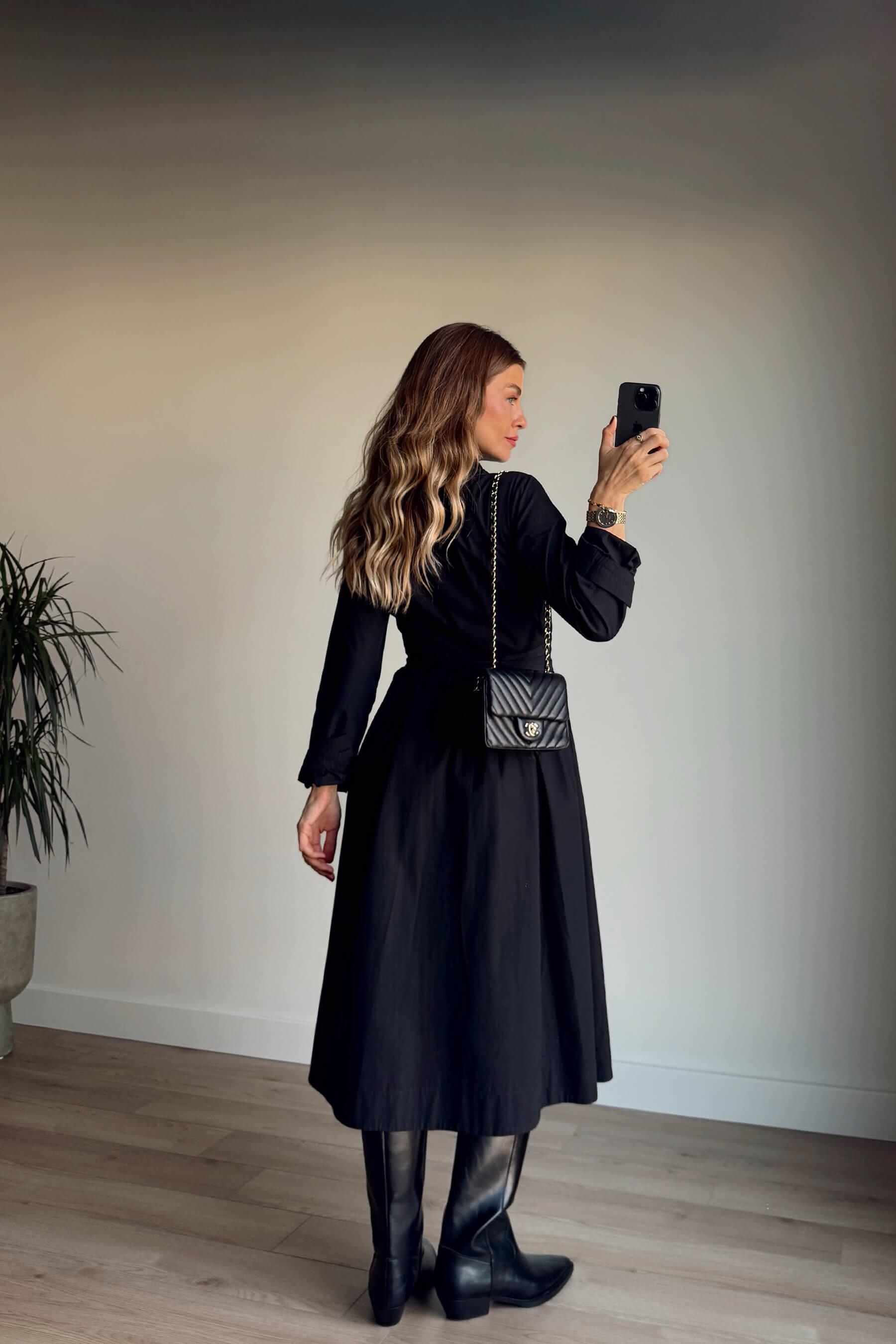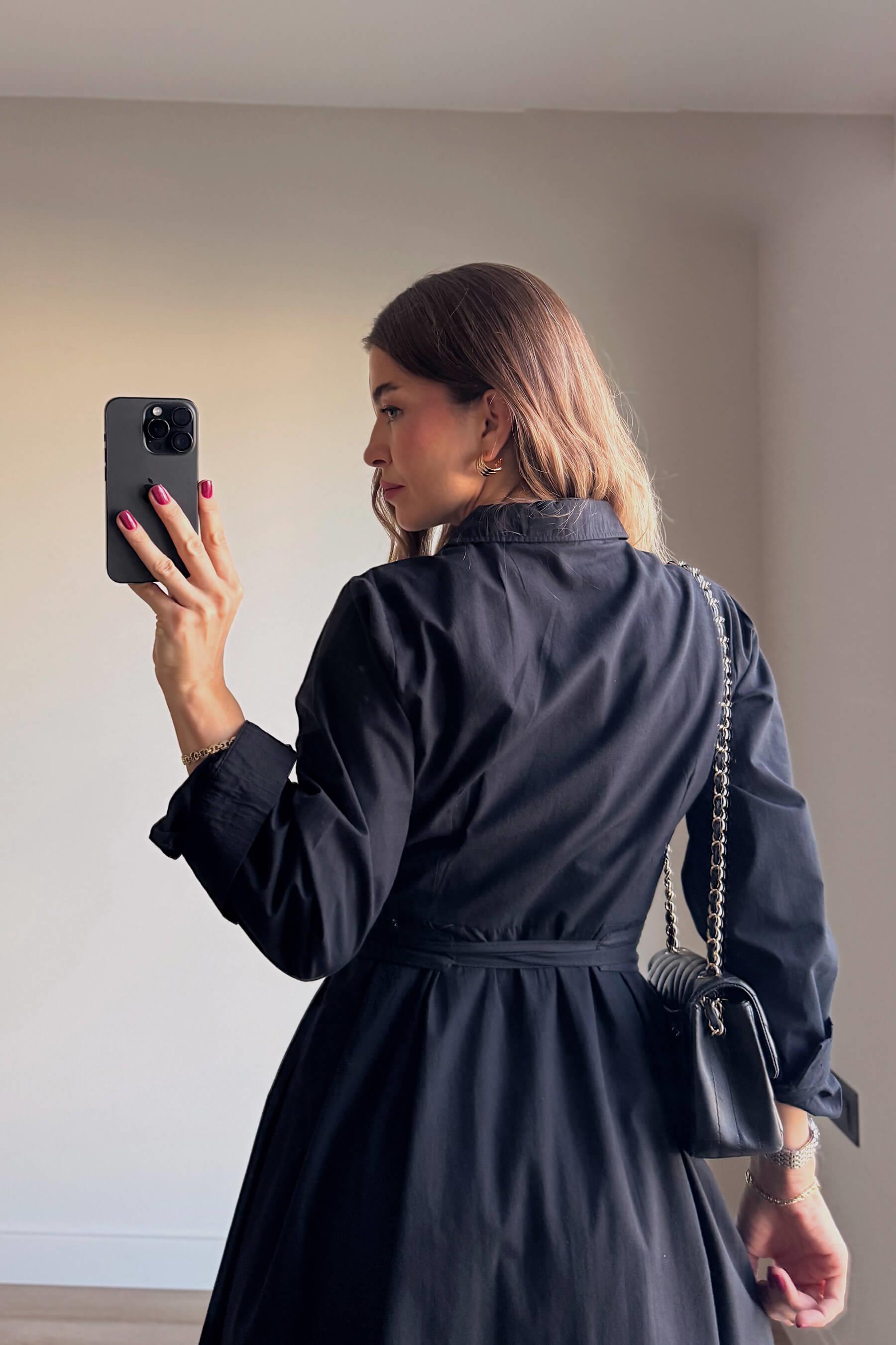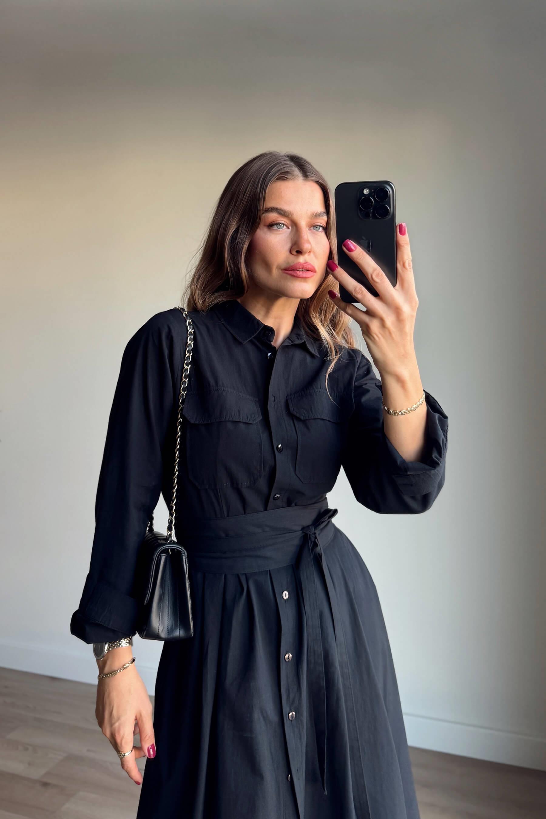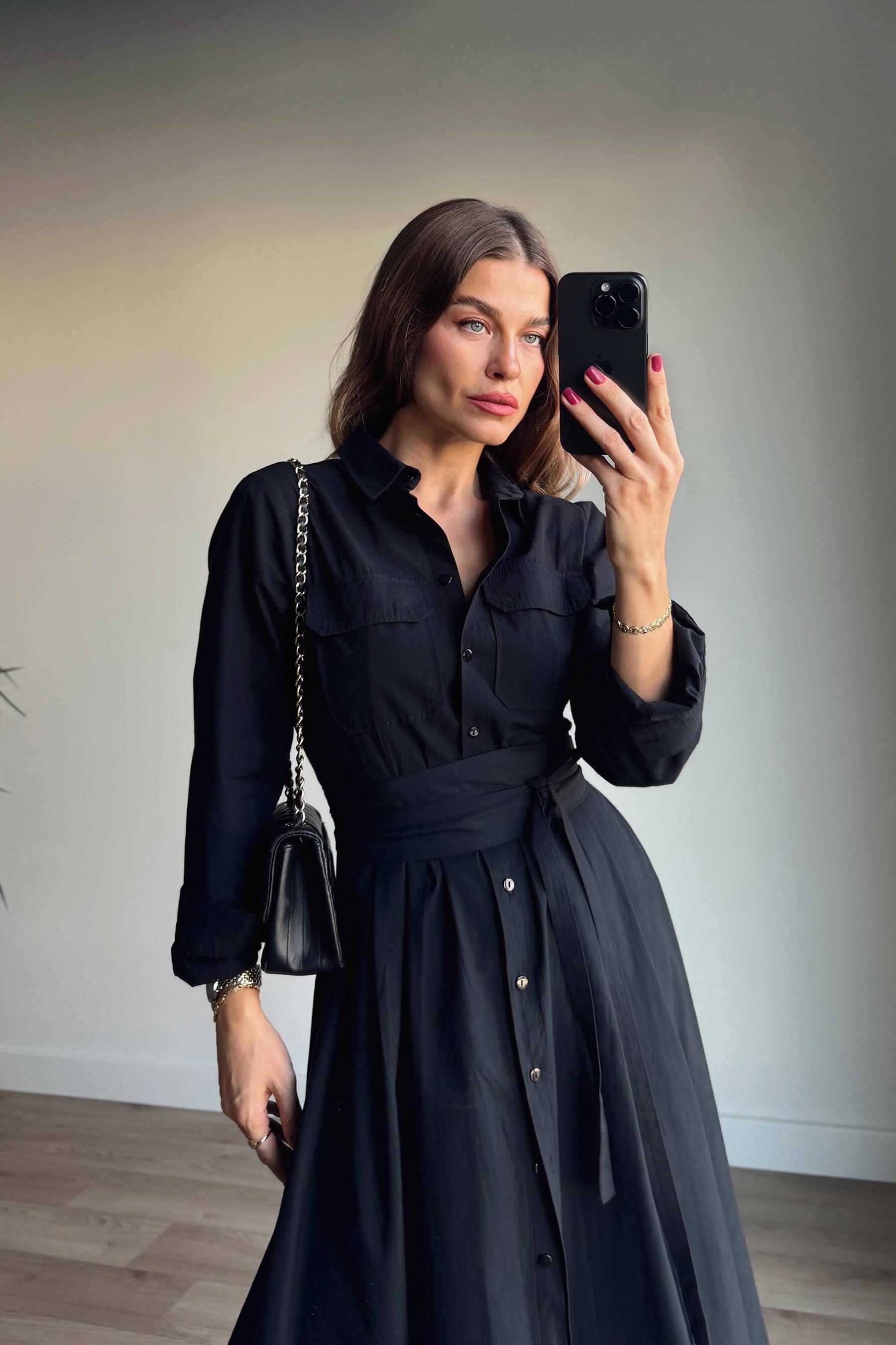Siyah Korseli Cep Detaylı Maxi Gömlek Elbise Model Ölçüleri: Boy: 166 cm, Kilo:54 kg Modelin Üzerindeki Beden: S/36 Ürünün Uzunluğu: 120 cm (1-2 cm arası değişiklik gösterebilir.) Kumaş Türü: Pamuk Yıkama Talimatı : Ürünün iç kısmında bulunan etiketten yıkama talimatına ulaşabilirsiniz.
